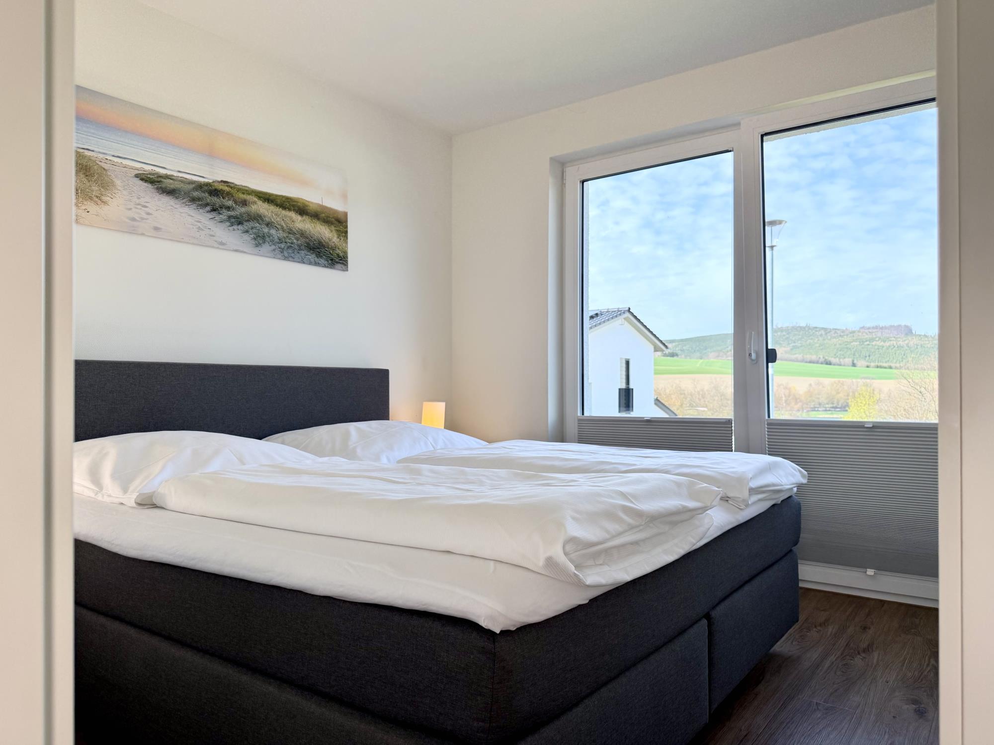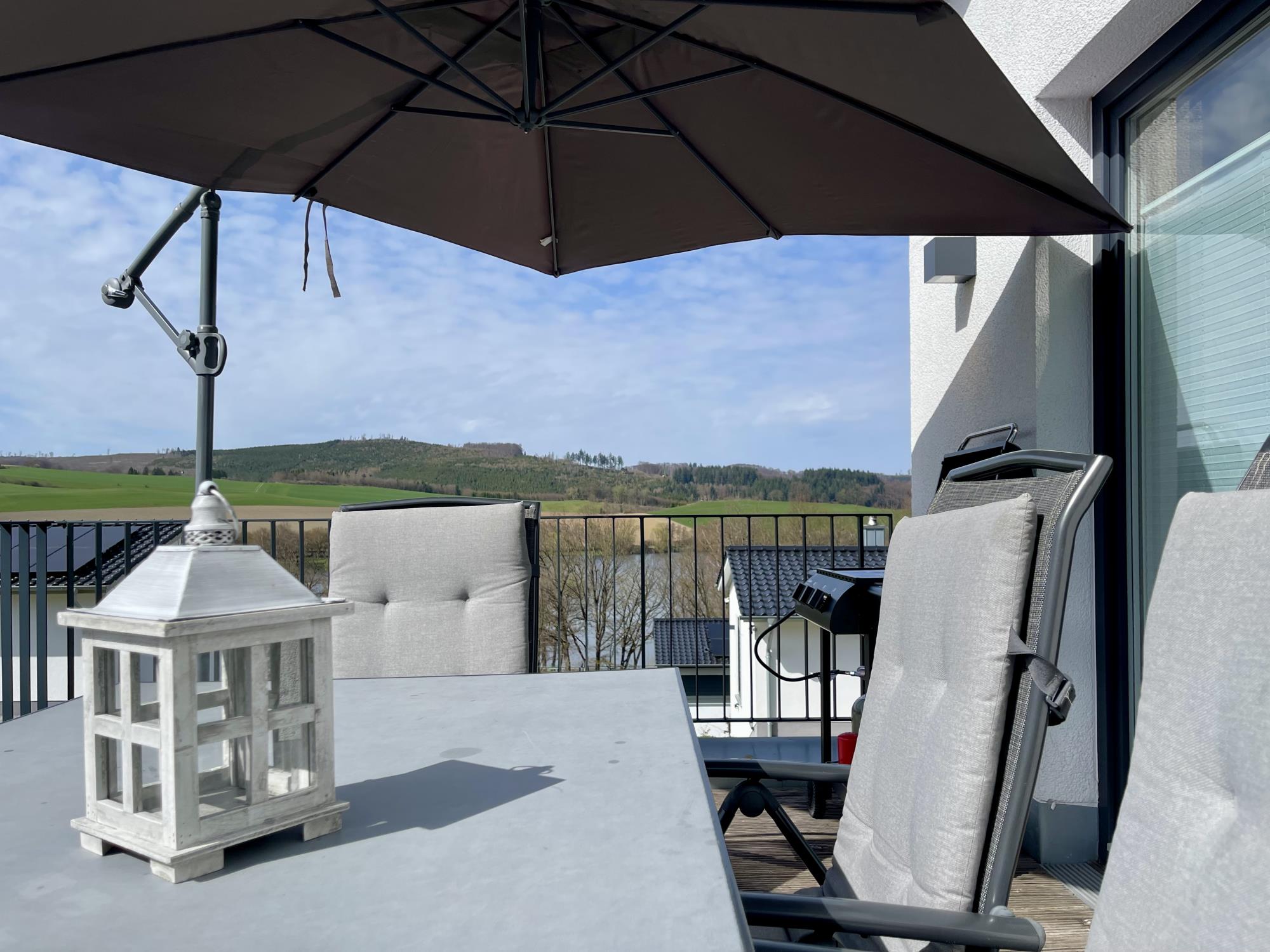 Terrasse, Dachterrasse und bodentiefe Fenster bieten beste Aussichten weit über den Diemelsee hinaus.