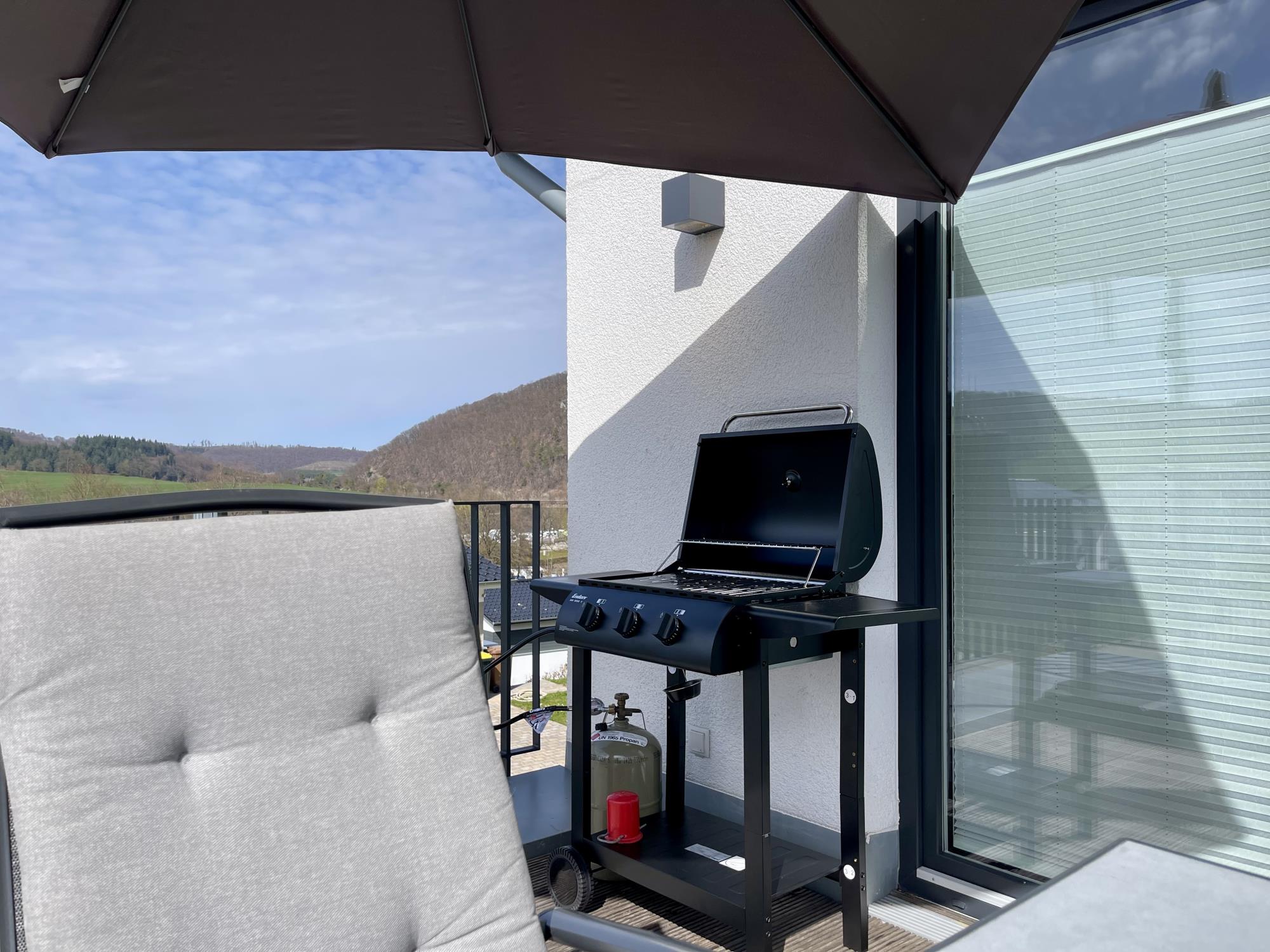 Auf der Dachterrasse steht ein Gasgrill zur Benutzung bereit.