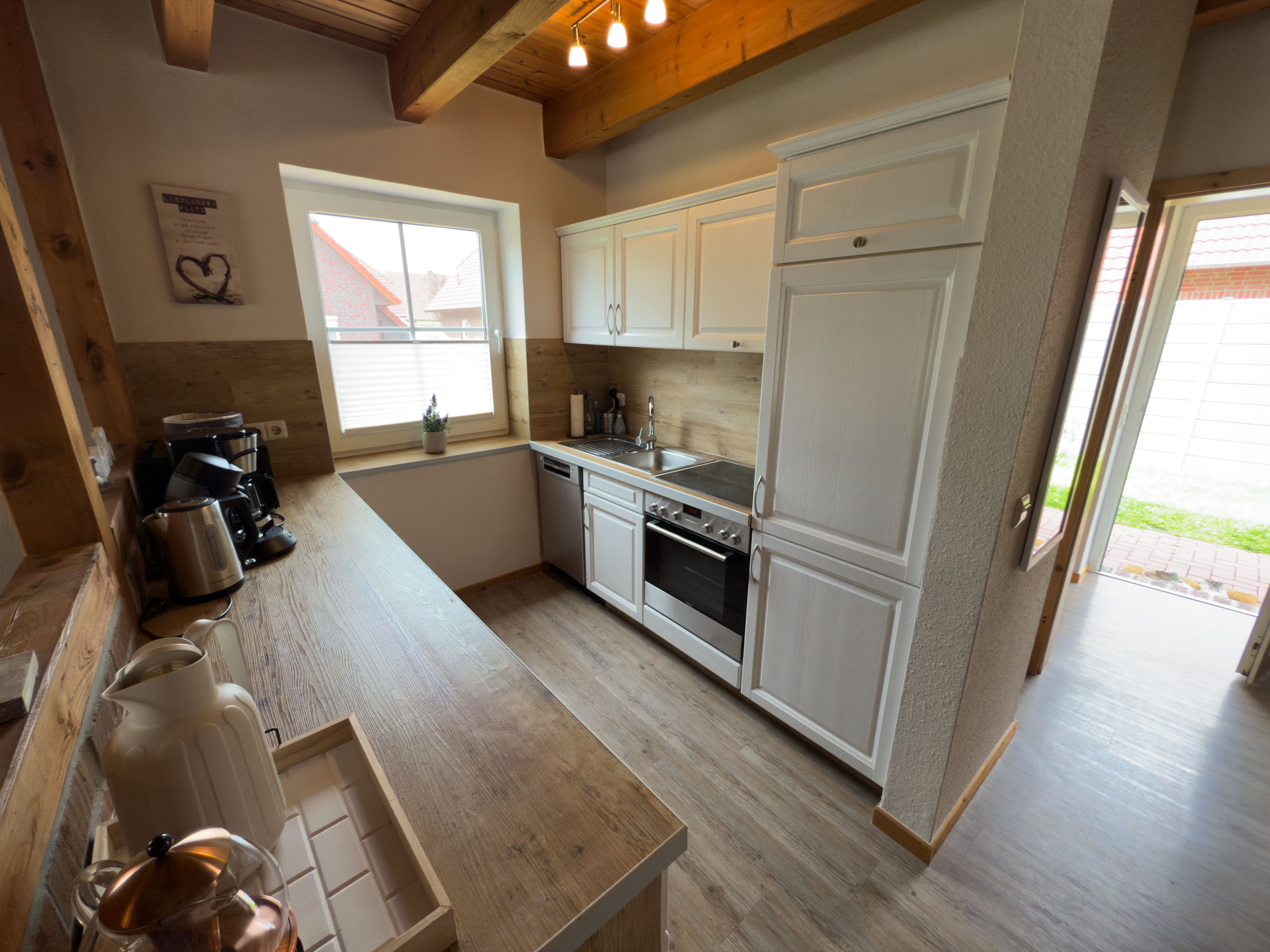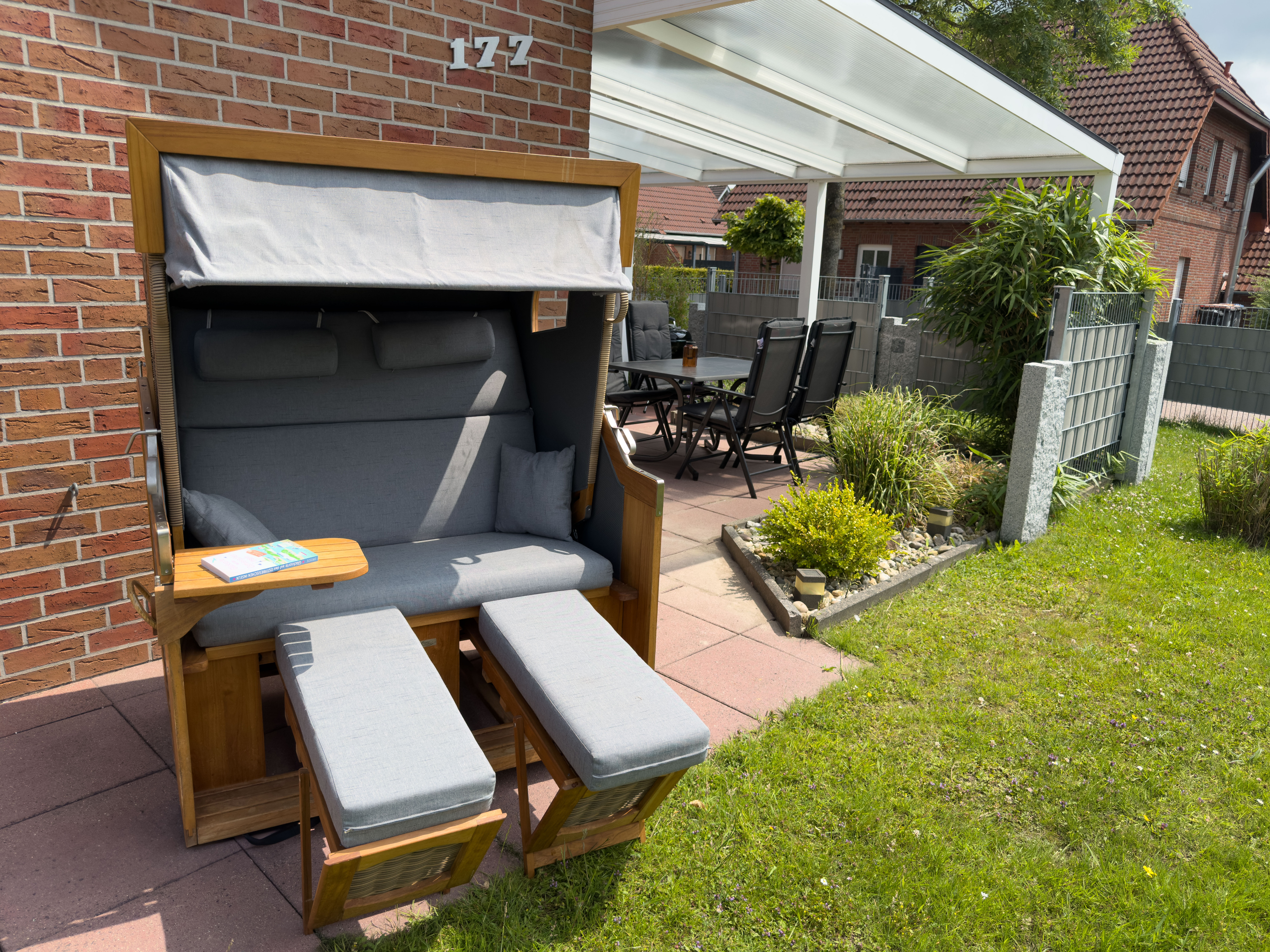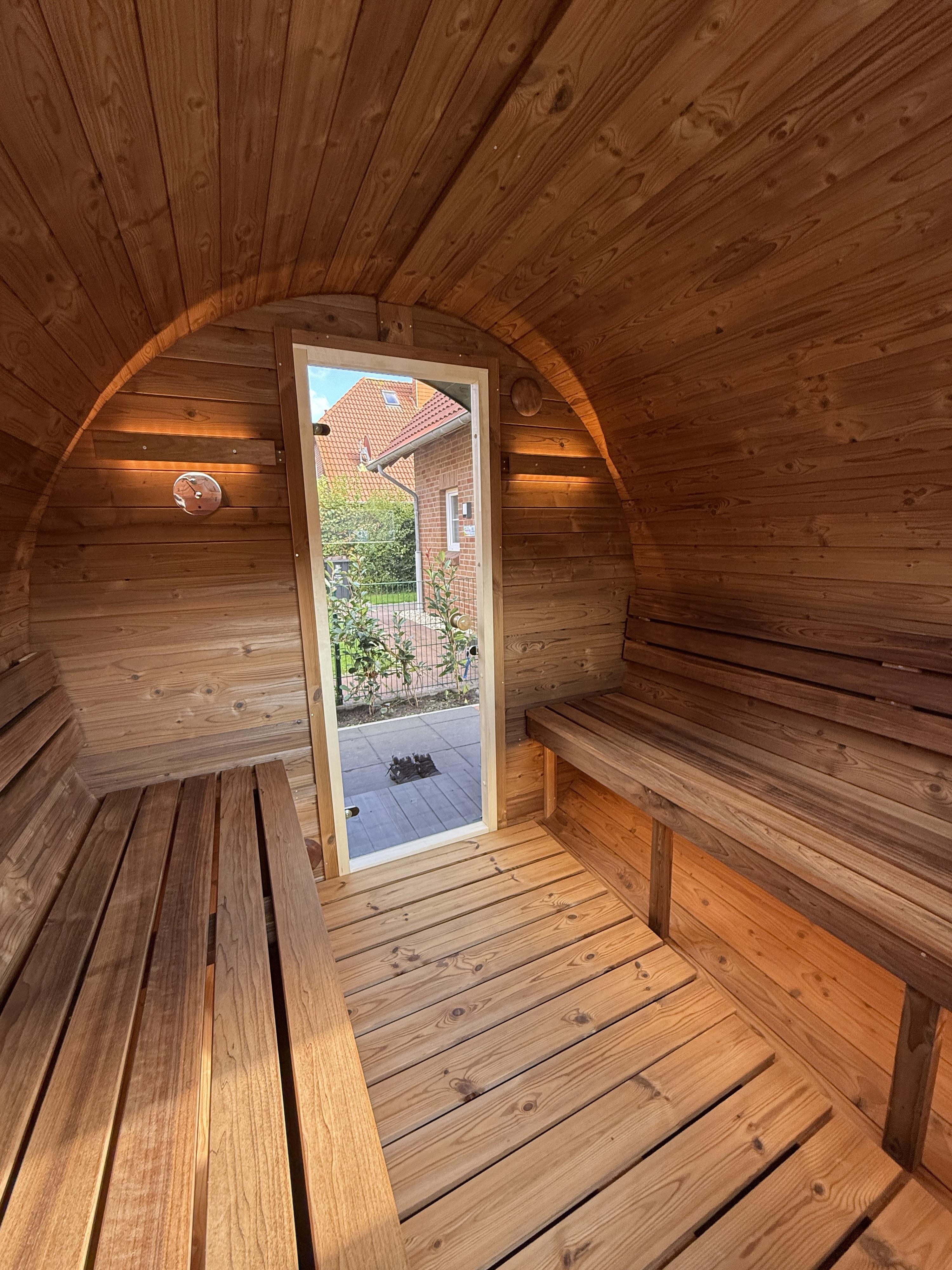 Draußen lädt die überdachte Terrasse mit bequemen Gartenmöbeln zum Verweilen ein. Highlight: Eine Fasssauna und ein Strandkorb im Garten sorgen für Erholung pur. Ihre Vierbeiner sind bei uns herzlich willkommen – wir freuen uns auf Sie!