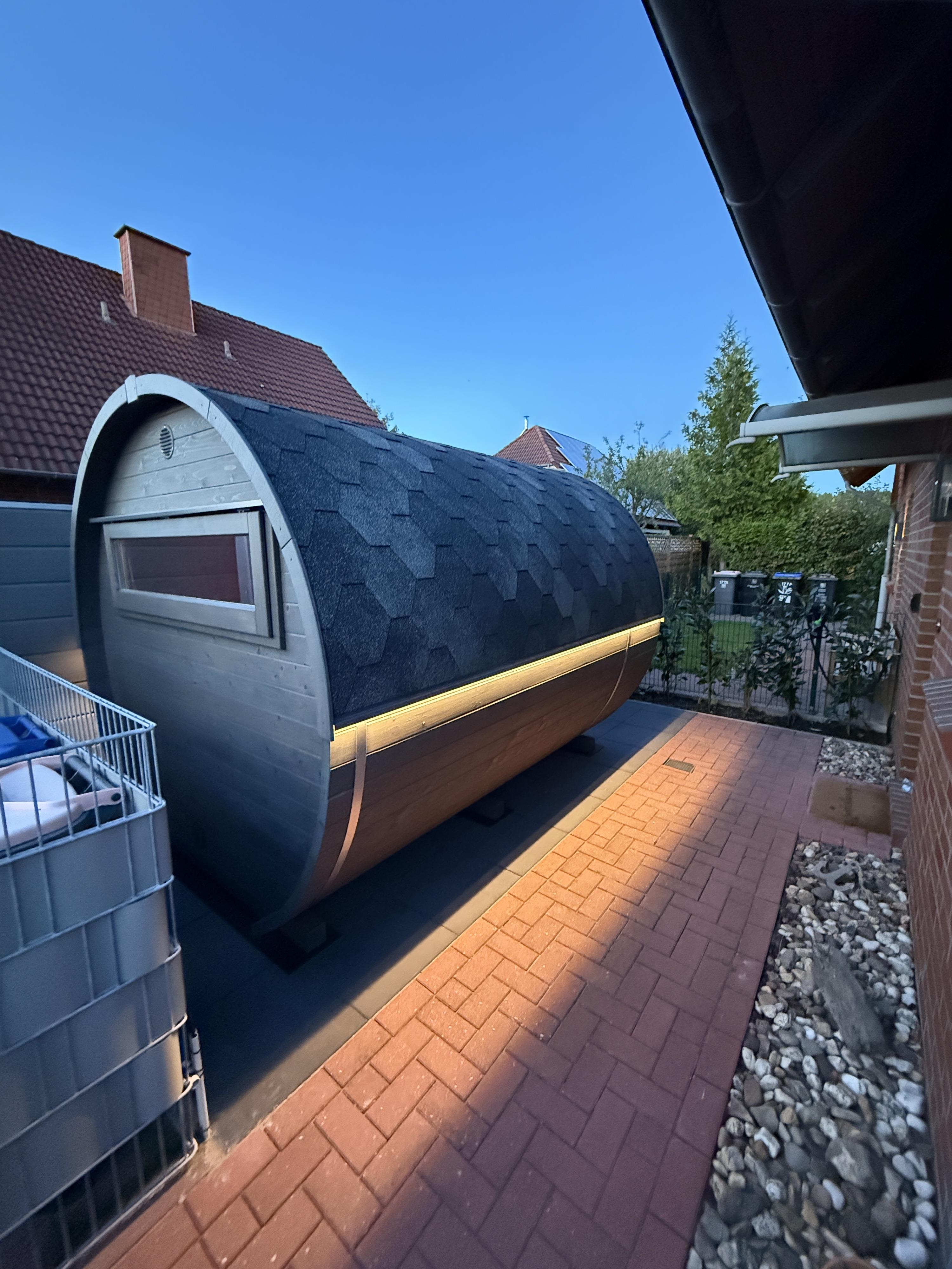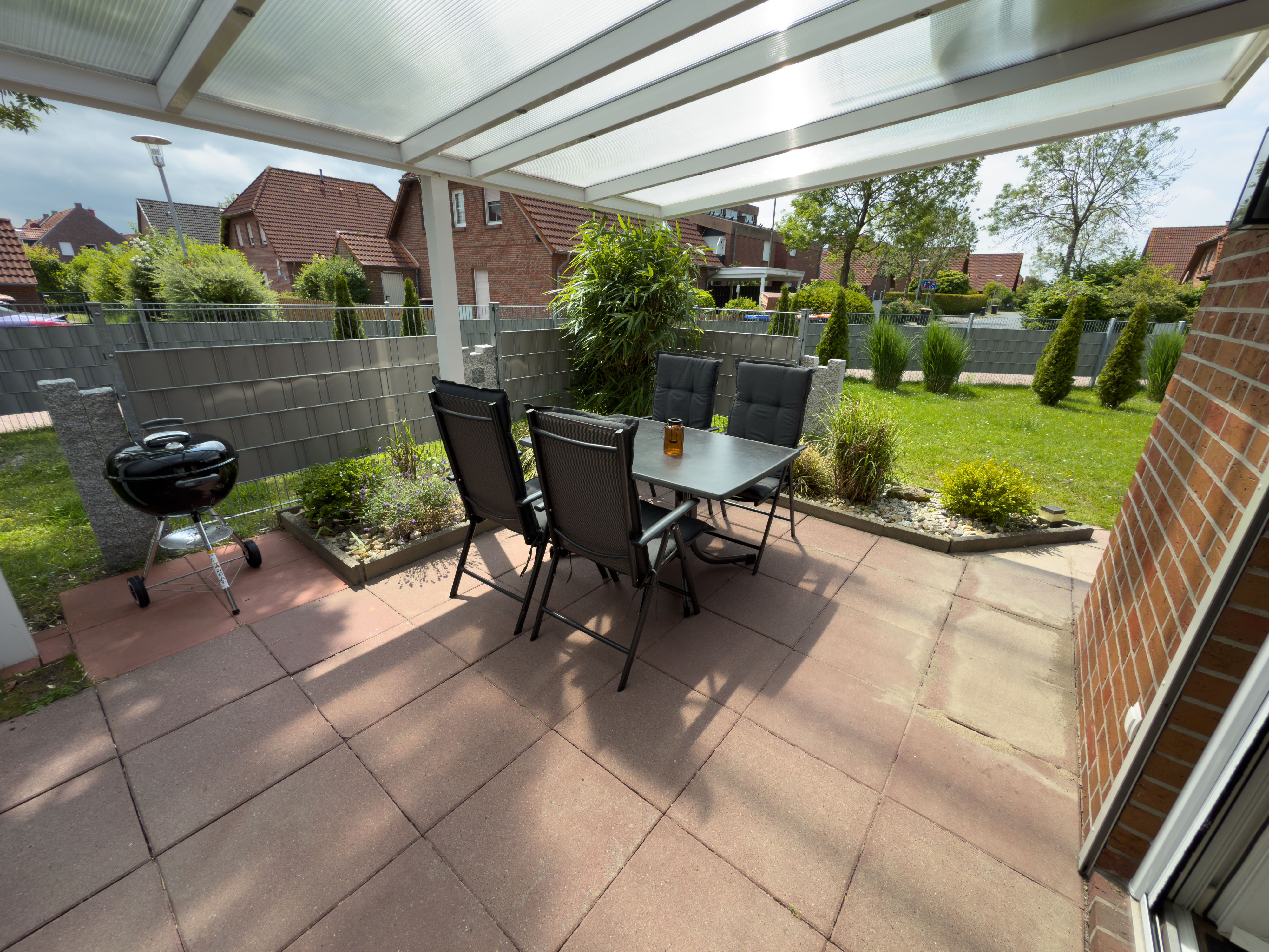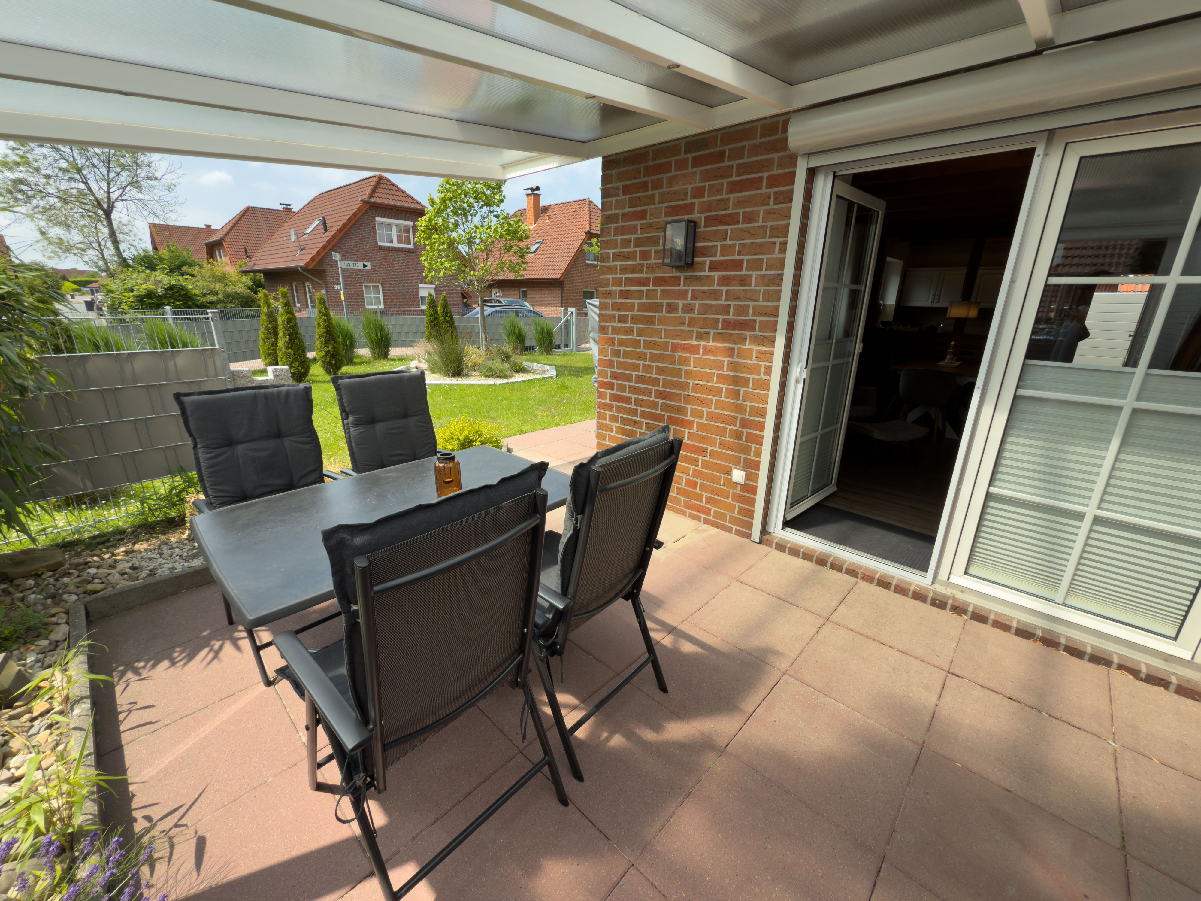 Draußen lädt die überdachte Terrasse mit bequemen Gartenmöbeln zum Verweilen ein. Highlight: Eine Fasssauna und ein Strandkorb im Garten sorgen für Erholung pur. Ihre Vierbeiner sind bei uns herzlich willkommen – wir freuen uns auf Sie!