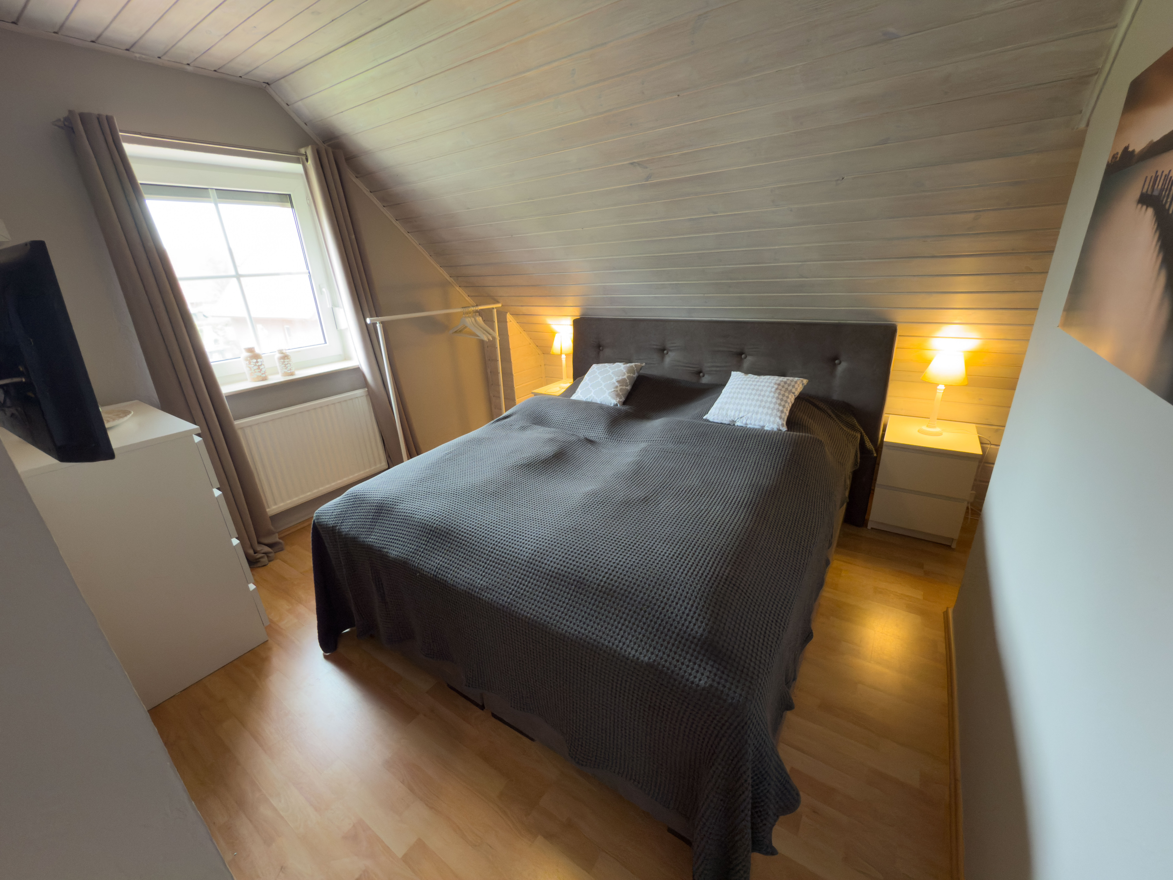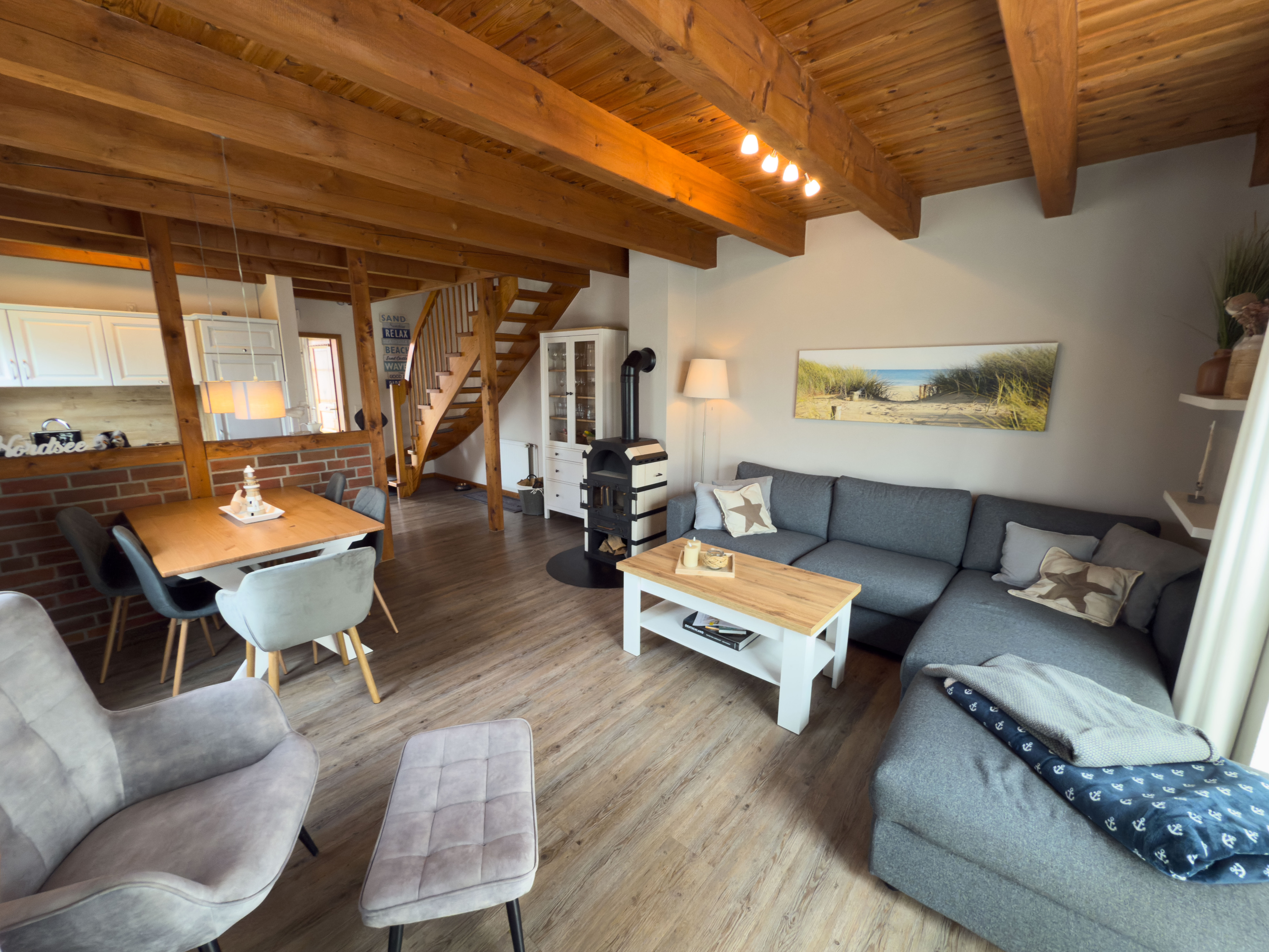 Die modern und gemütlich eingerichtete Doppelhaushälfte bietet im Erdgeschoss einen offenen Wohn- und Essbereich, eine voll ausgestattete Küche sowie ein Badezimmer mit Dusche. Im Obergeschoss befinden sich zwei Schlafzimmer mit komfortablen Doppelbetten sowie ein zusätzliches Gäste-WC. Zwei eigene PKW-Stellplätze, Außenrollläden und hundefreundliche Ausstattung runden das Angebot ab.