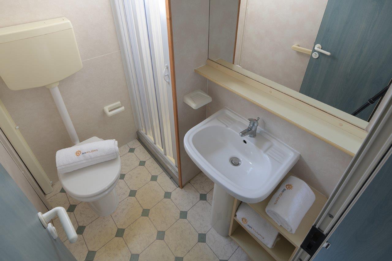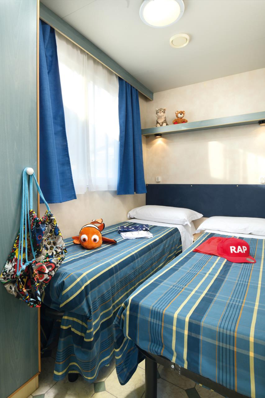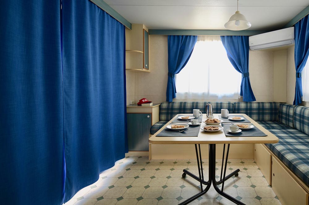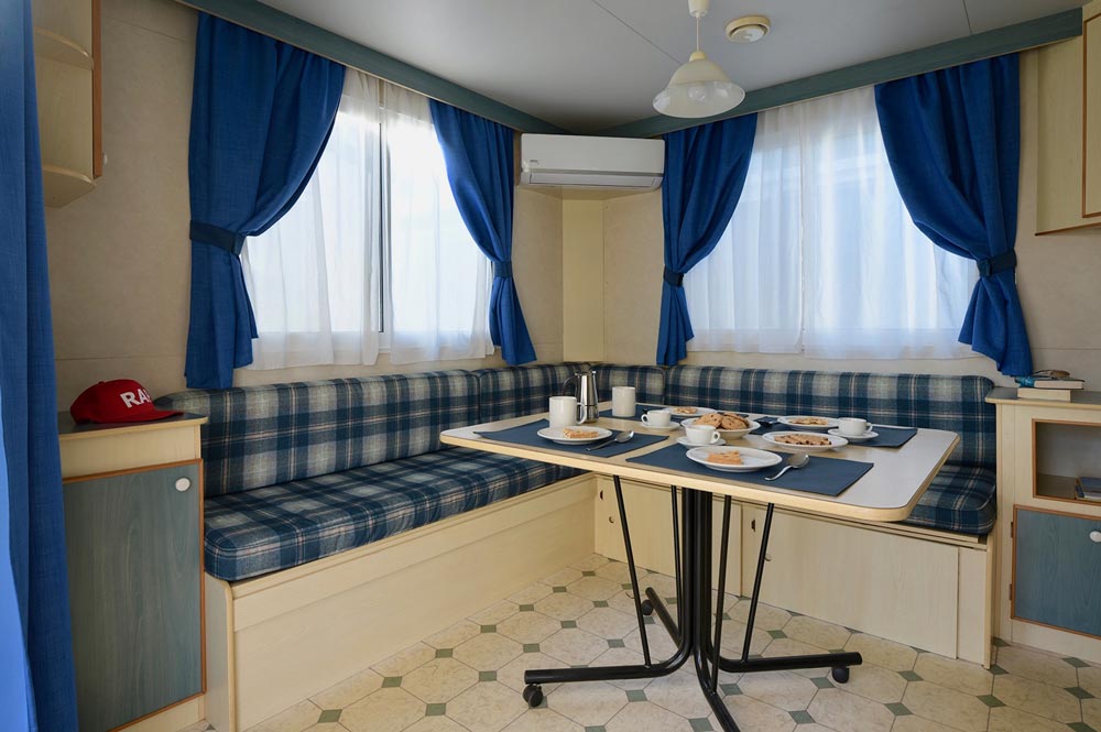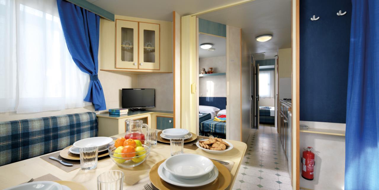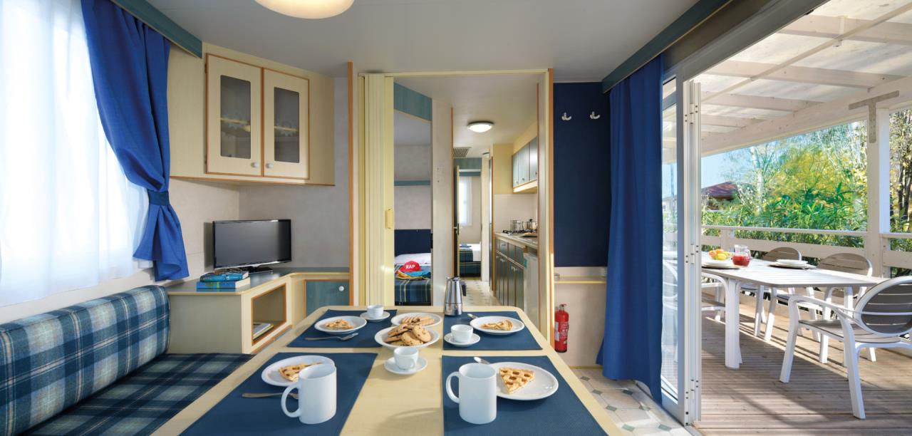 Das Mobilehome Bellagio Large ist modern eingerichtet und für bis zu 6 Personen geeignet. Es besteht aus einem Schlafzimmer mit Doppelbett und einem Zimmer mit zwei Einzelbetten. Der Wohnbereich bietet auf dem Doppelbettsofa Platz für zwei weitere Personen. Ebenfalls im Wohnbereich befindet sich die gut eingerichtete Küche, welche mit Induktionsherd, Töpfen, Geschirr, Besteck, Mikrowelle, Geschirrspüler und einem grossen Kühlschrank mit Eisfach alles besitzt was man für einen gelungenen Urlaub braucht. Das Mobilehome verfügt über ein Badezimmer mit einer Dusche, WC, Bidet und einem Waschbecken. Ein SAT-TV und eine Klimaanlage sind vorhanden. Die überdachte Terrasse lädt mit Tisch und Stühlen zum gemütlichen Verweilen ein, während sich die Kinder am Pool oder auf dem Spielplatz vergnügen. Das Grillen ist erlaubt. Die Fahrzeit ab italienischer Grenze dauert ca. 3h. Hinweis: Wenn Sie mehr als eine Unterkunft benötigen, ist dies bei uns in der Regel möglich, da wir über mehrere Objekte des gleichen Haustyps verfügen. ANREISETAG + AUFENTHALTSDAUER