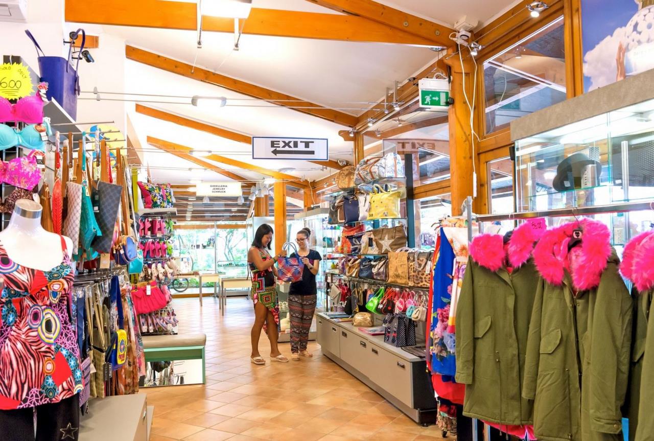 EINKAUFENDas Feriendorf hat eine Vielzahl von Geschäften: einen Supermarkt mit einer Bäckerei, einen Fischhändler vom berühmten Fischmarkt in Chioggia, einen Bazar mit Zeitungen, Büchern, Strandartikeln, Bekleidung und Spielzeug, die Boutique Annamaria Pontarin, das Schmuckgeschäft und den toskanischen Wein- und Feinkosthandel.