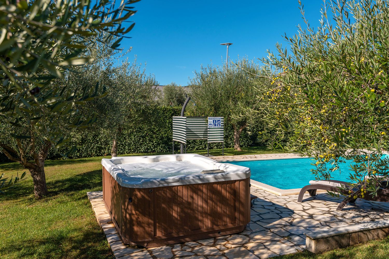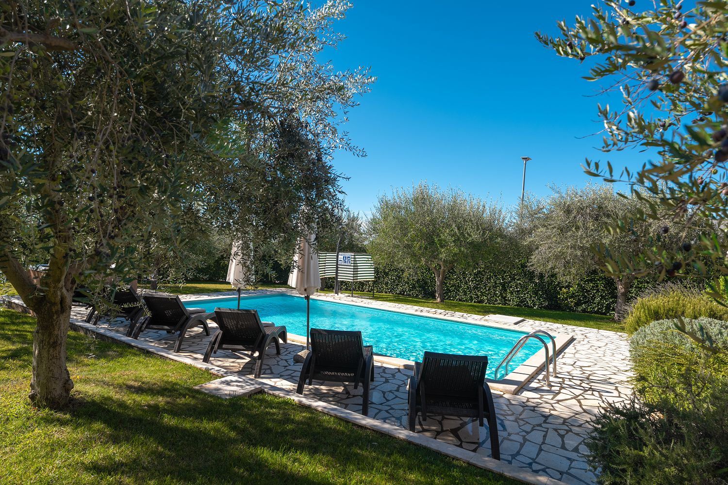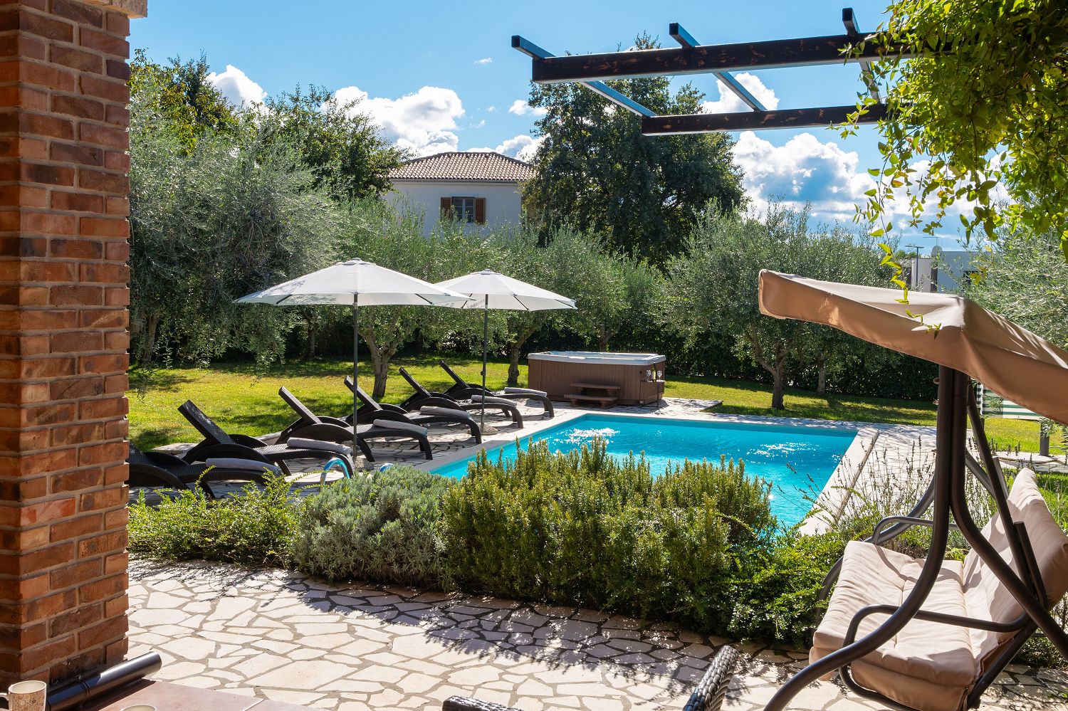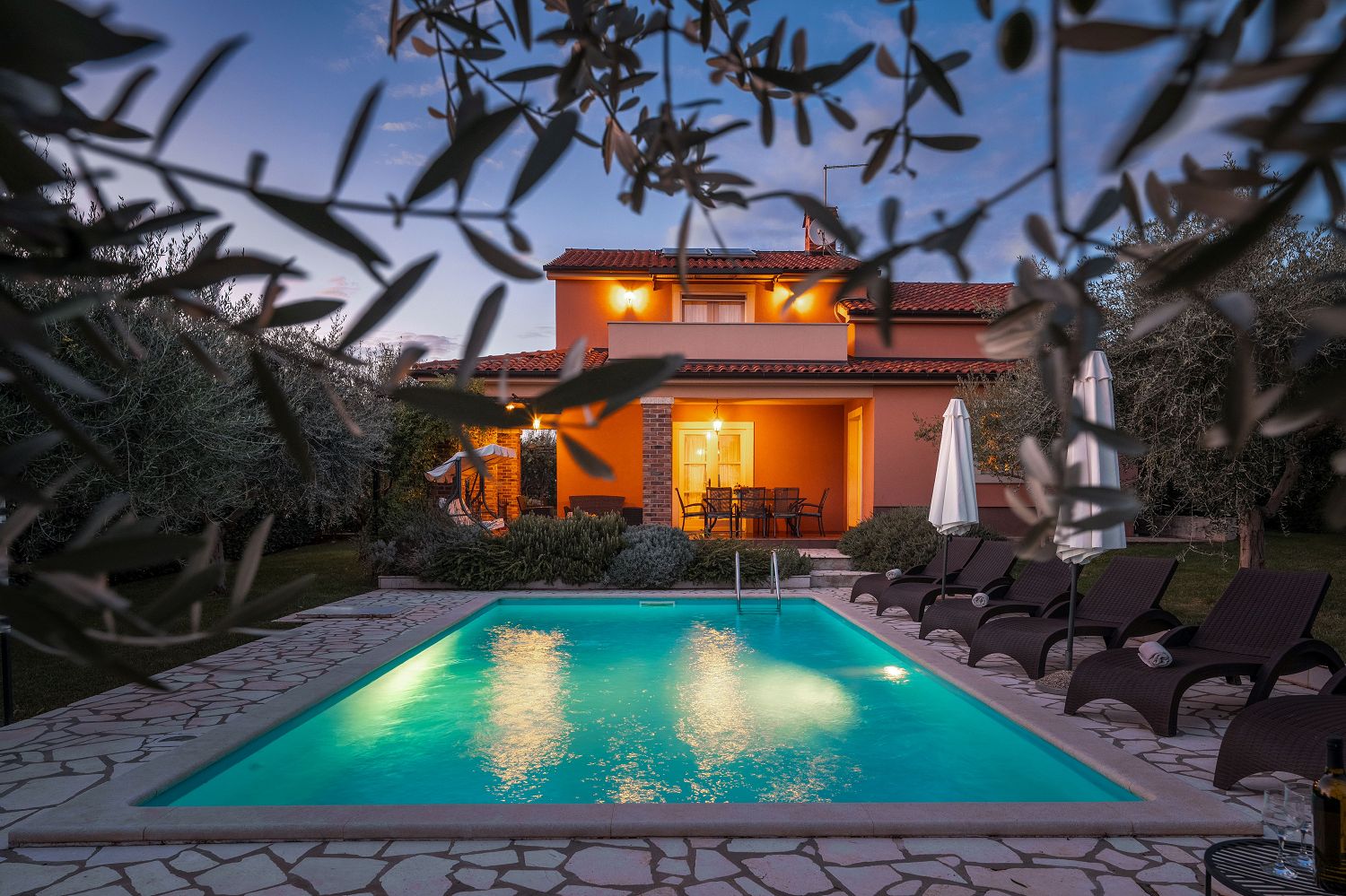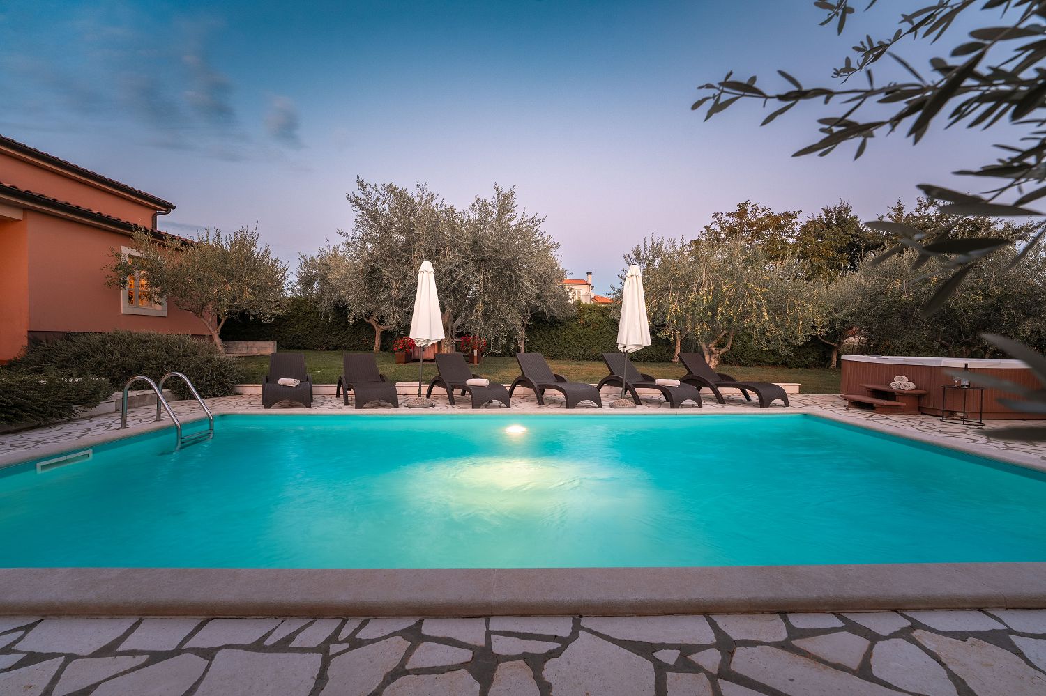 Diese Casa ist ein wunderschönes, im Jahr 2015 erbautes Ferienhaus im ländlichen Stil. Es befindet sich im Ort Kastelir, nur 8 km vom Meer und 350 m vom Stadtzentrum entfernt. In der Nähe gibt es ein Geschäft, ein Restaurant, eine Pizzeria, einen Geldautomaten und weitere Annehmlichkeiten. Das Haus verfügt über einen eigenen, teilweise eingezäunten, gepflegten Garten mit einer Fläche von ca. 1.000 m², einen Swimmingpool und einen Jacuzzi. Es ist von einem Olivenhain umgeben und bietet einen Grill sowie einen Parkplatz für zwei Fahrzeuge. Das für acht Personen ausgelegte Ferienhaus erstreckt sich über zwei Etagen und bietet auf 164 m² folgende Ausstattung: Im Erdgeschoss befinden sich eine voll ausgestattete Küche mit Esszimmer, ein Wohnzimmer mit Zugang zur schönen überdachten Terrasse mit Esstisch, ein Schlafzimmer mit zwei getrennten Betten und Dusche/WC sowie eine separate Toilette. Im ersten Stock befinden sich ein geräumiges Doppelzimmer mit Zugang zu einem Balkon mit herrlichem Panoramablick auf das Meer, ein Badezimmer mit Dusche und Massagewanne, ein kleineres Zimmer mit einem Bett für eine Person sowie ein Dreibettzimmer mit eigenem Bad mit Dusche und WC. Jugendgruppen sind nicht zugelassen.