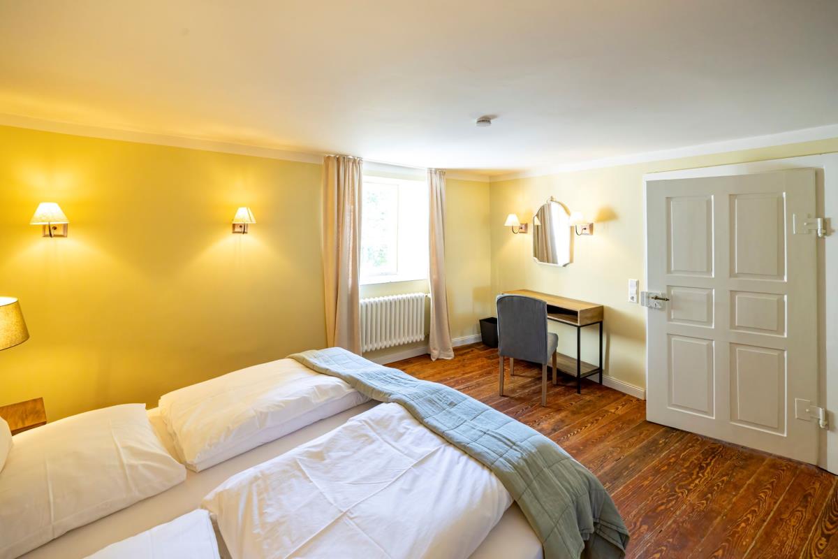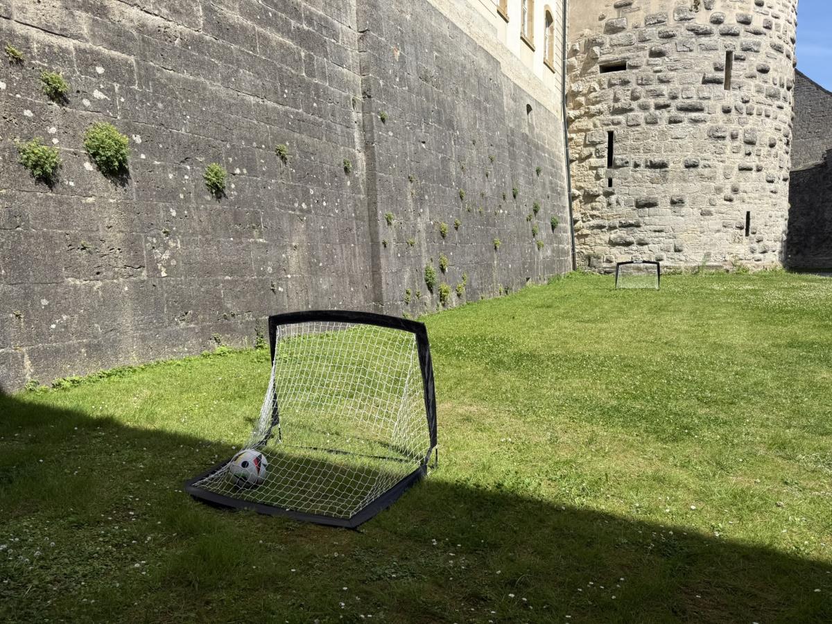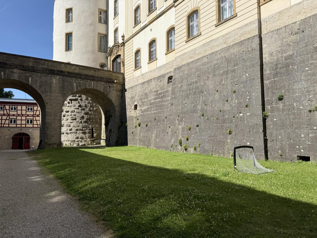 Hinter den hohen Schlossmauern fühlen Sie sich geborgen und ungestört. Das große Holztor hält die Welt draußen – und schenkt Ihnen das Gefühl von Exklusivität. Auch Hunde sind willkommen: Hier finden sie sichere Freiflächen zum Toben und sind Teil Ihrer besonderen Auszeit.