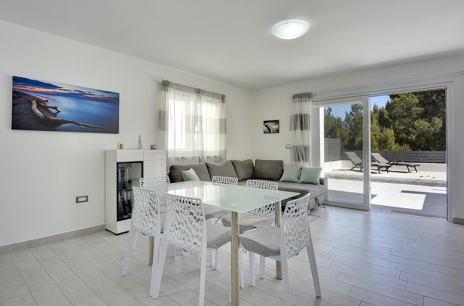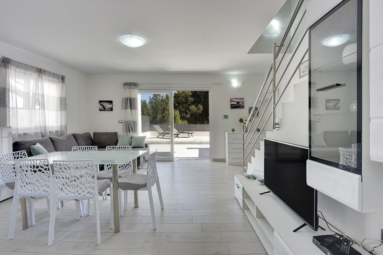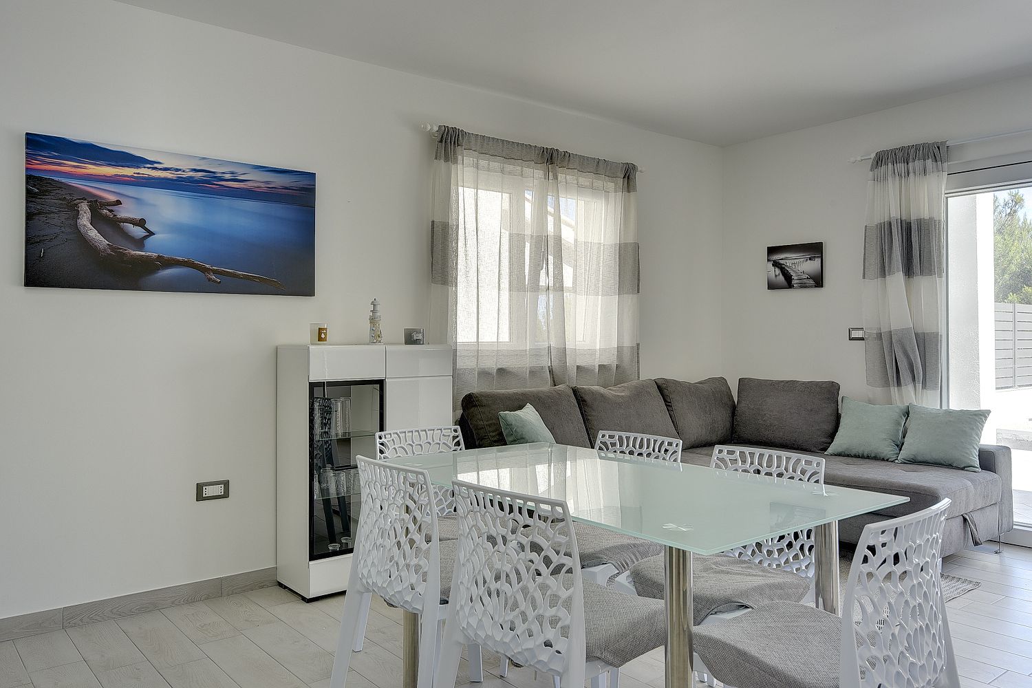 Ganz im Süden von Istrien, in Ližnjan, nicht weit vom Strand entfernt, befindet sich diese schöne, neu gebaute Villa. Das Haus erstreckt sich über zwei Etagen und bietet Platz für bis zu 6 Personen. Im Erdgeschoss befindet sich ein schön eingerichtetes Wohnzimmer mit Küche und Essbereich und ein Badezimmer. Im Obergeschoss befinden sich zwei Schlafzimmer und ein Badezimmer sowie ein Balkon mit Blick auf das Meer. Den Gästen stehen auch eine überdachte Terrasse und ein privater Swimmingpool zur Verfügung. Vom Objekt bis zum Strand sind es 500 Meter.