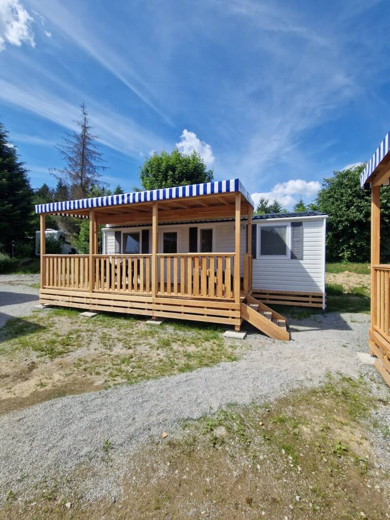 Das Mobilehome Mars bietet Platz für max. 5 Personen (davon ein Kind bis max. 6 Jahre). Die Unterkunft besteht aus einem Elternschlafzimmer mit Doppelbett sowie einem Kinderzimmer mit zwei Einzelbetten. Eine weitere Schlafgelegenheit für ein Kind bis 6 Jahre bietet das Bettsofa im Wohnzimmer. Die gut eingerichtete Küche befindet sich im Wohnbereich und verfügt über einen Gasherd, Spüle, Besteck, Geschirr, Töpfe, Fillterkaffeemaschine, Mikrowelle, Wasserkocher sowie einen Kühlschrank mit Eisfach. Das Badezimmer ist mit einer Dusche sowie Waschbecken und WC ausgestattet. Die überdachte Holzterrasse mit Tisch und Stühlen lädt zum gemütlichen Entspannen ein, während die Kinder sich auf dem Spielplatz oder am Pool austoben können. Grillen mit Gas ist erlaubt. Die Fahrzeit von der französischen Grenze beträgt ca. 1,3h. Hinweis: Wenn Sie mehr als eine Unterkunft benötigen, ist dies bei uns in der Regel möglich, da wir über mehrere Objekte des gleichen Haustyps verfügen.