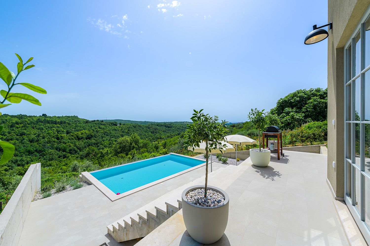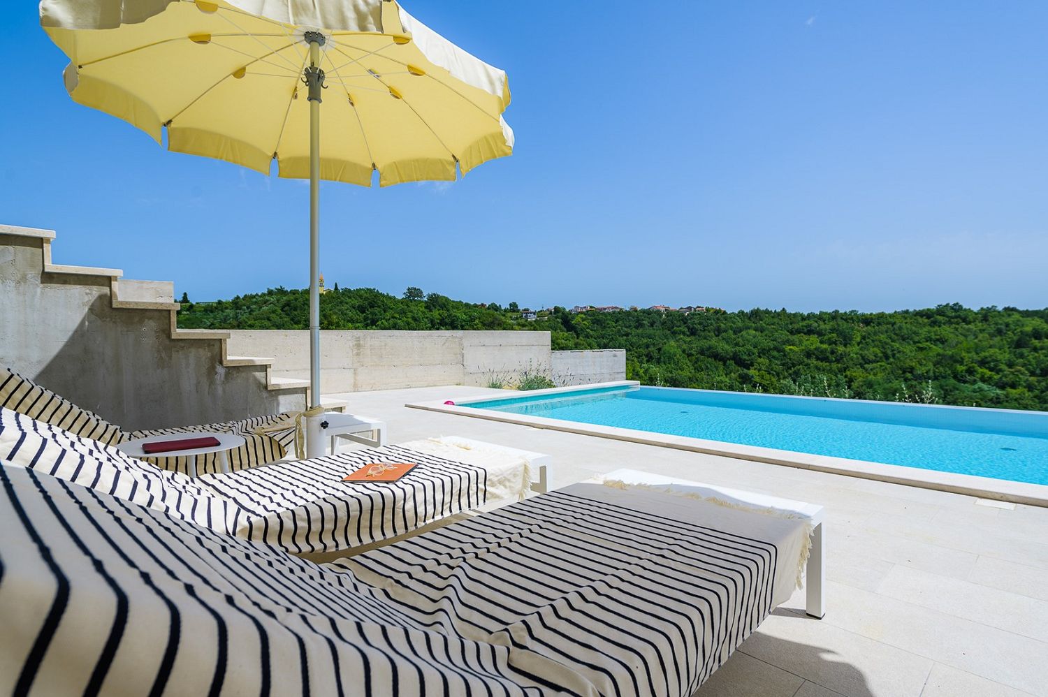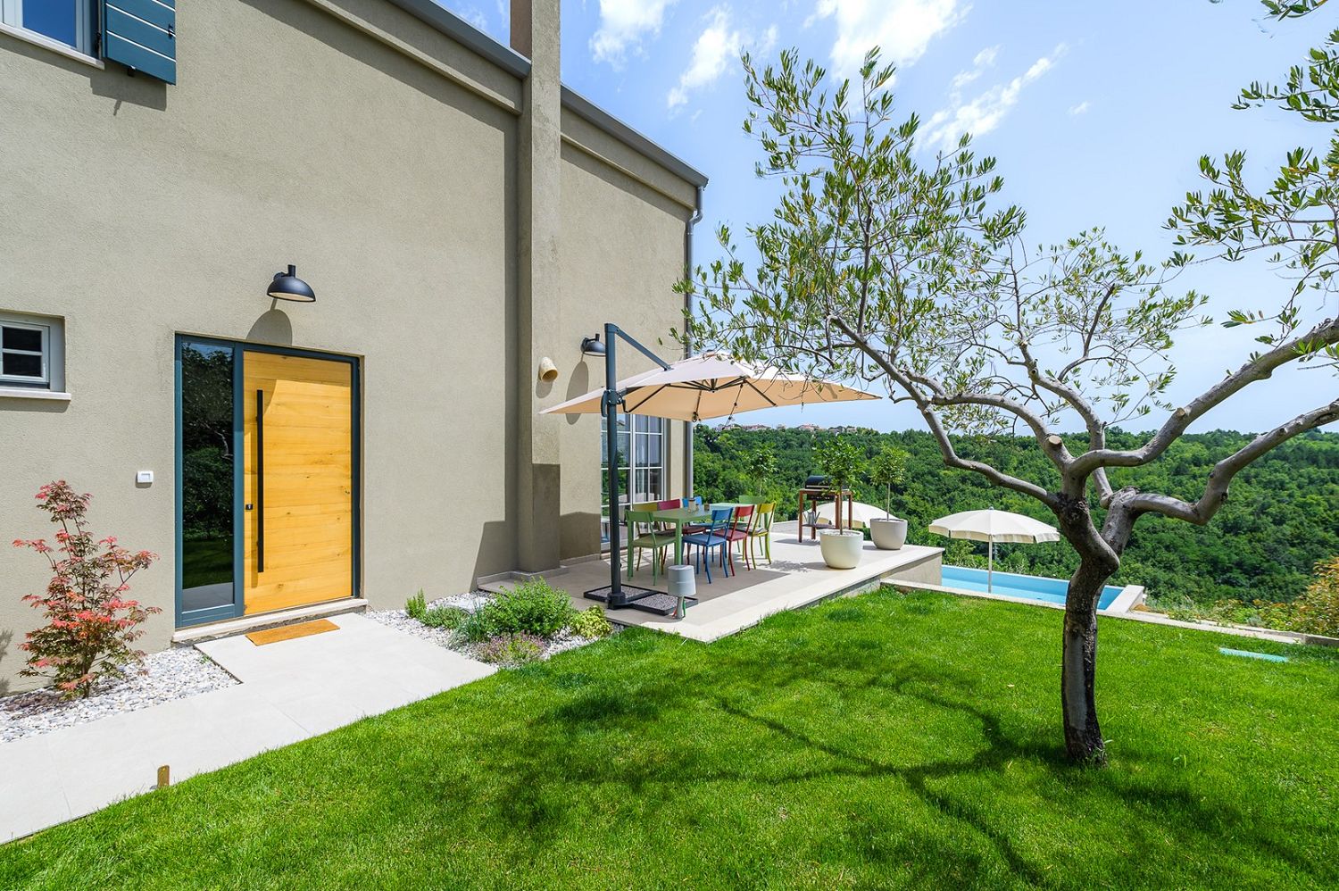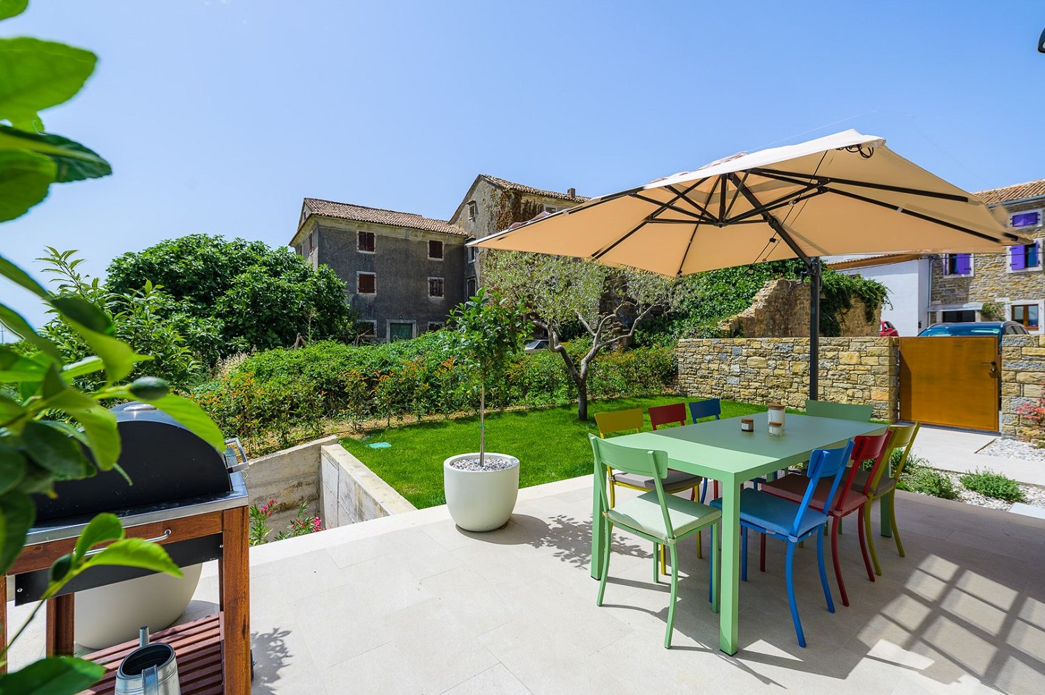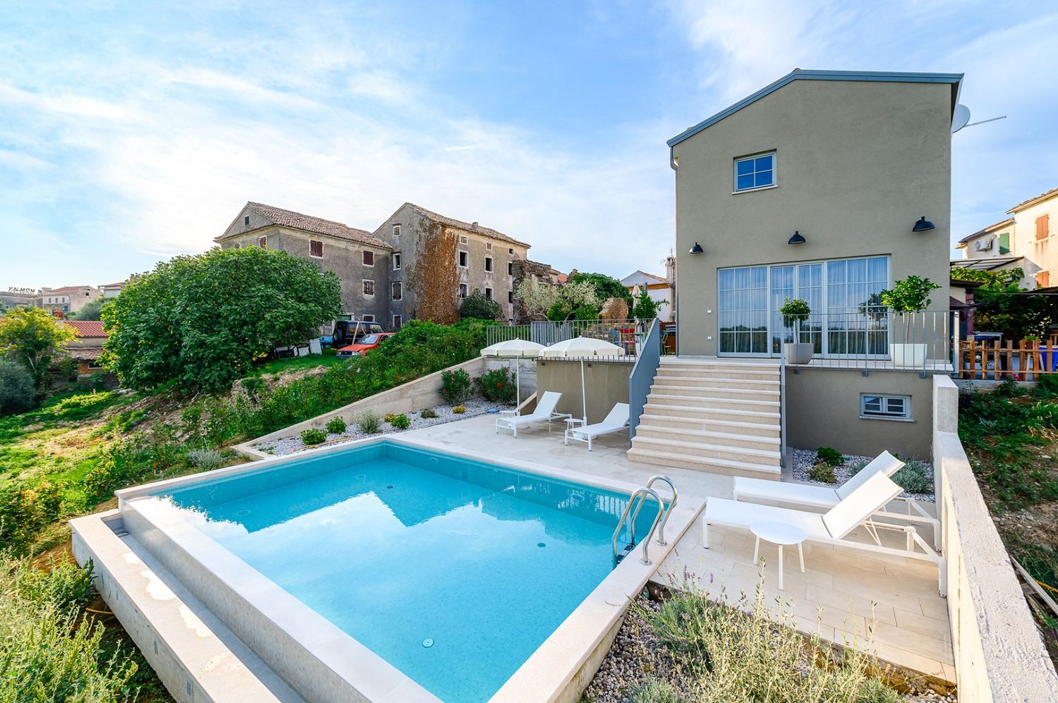 Die Villa verfügt im ersten Stock über zwei komfortable Schlafzimmer und ein Badezimmer. Eines der Schlafzimmer ist mit einem Kingsize-Bett, das andere mit zwei Einzelbetten ausgestattet. Letztere können bei Bedarf leicht zu einem Doppelbett zusammengestellt werden. Im Erdgeschoss befindet sich ein großzügiger, offener Raum mit Küche, Essbereich und Wohnzimmer. Große Glastüren führen direkt auf die Terrasse und in den Garten mit Pool, von wo aus sich ein atemberaubender Blick auf die grünen istrischen Hügel bietet. Zur Ausstattung der Villa gehören ein privater Parkplatz für ein Auto, ein beheizter Pool mit Sonnenterrasse, Liegestühlen und Sonnenschirmen sowie ein eingezäunter Garten. In der Villa sind Ihre vierbeinigen Freunde herzlich willkommen. Für Haustiere wird ein Aufpreis berechnet. Wenn Sie einen Ort suchen, von dem aus Sie unsere Halbinsel entdecken und einen wunderbaren Urlaub verbringen können, dann haben Sie ihn hier gefunden.