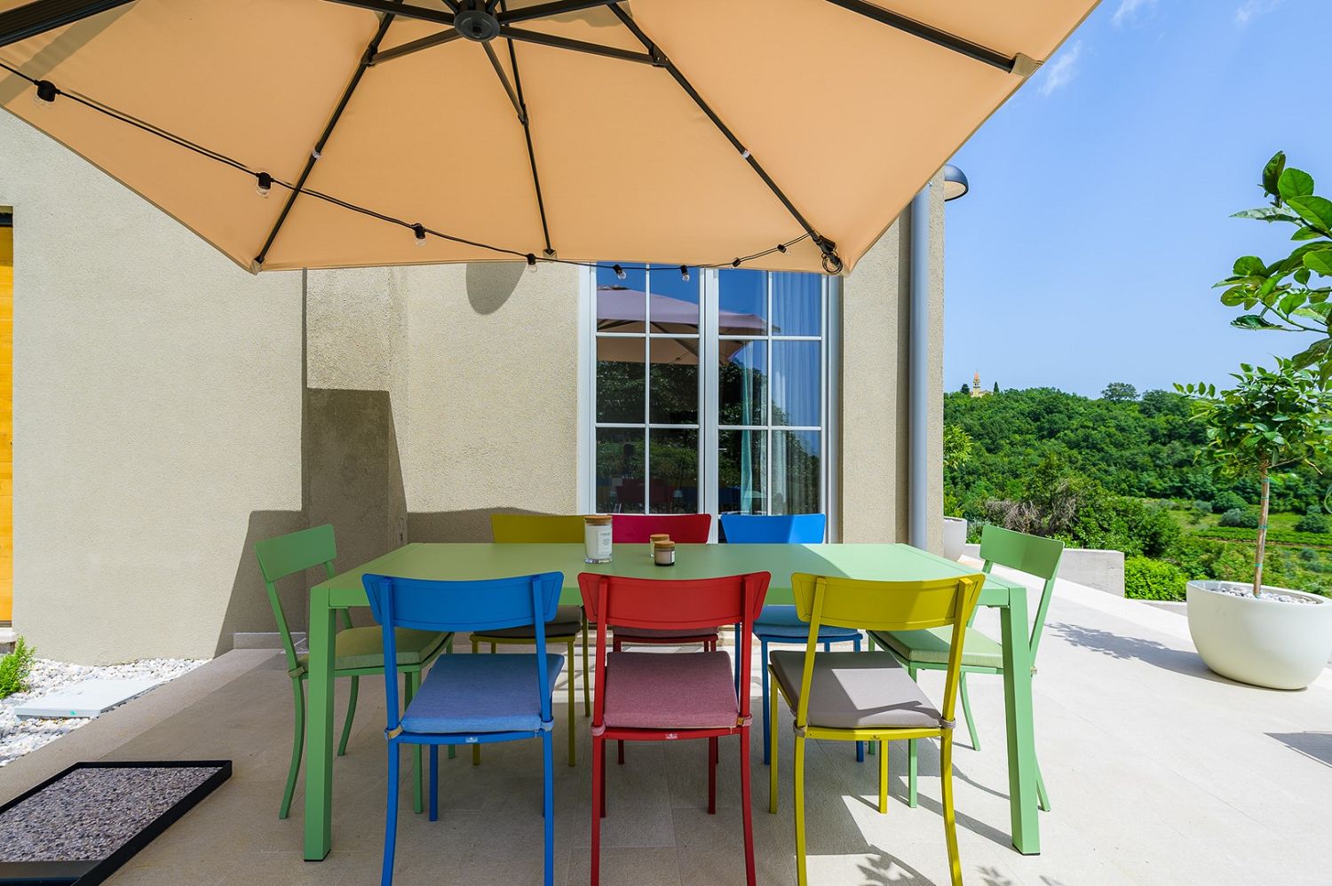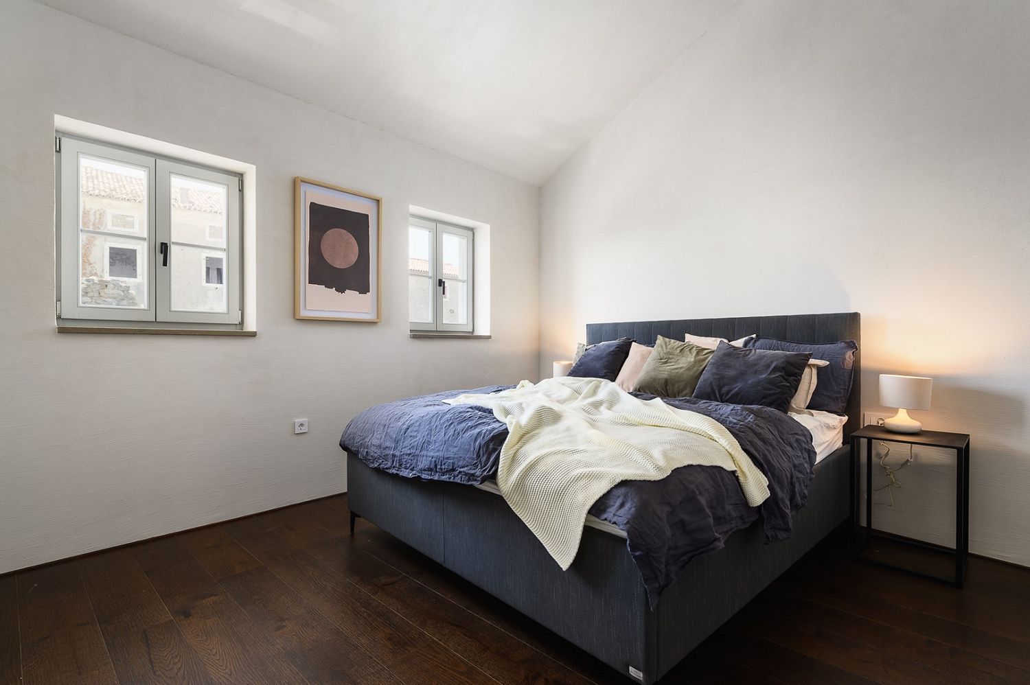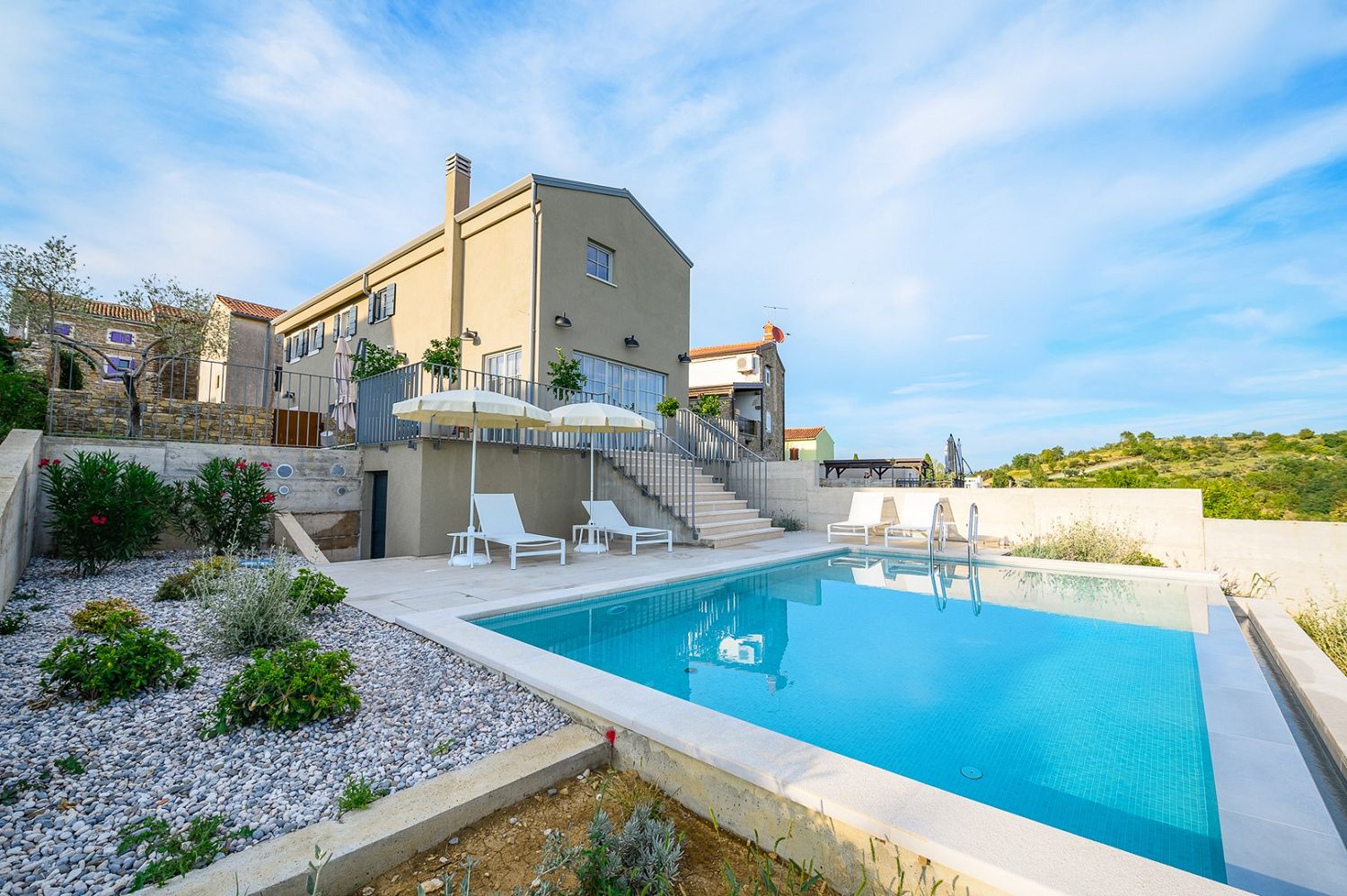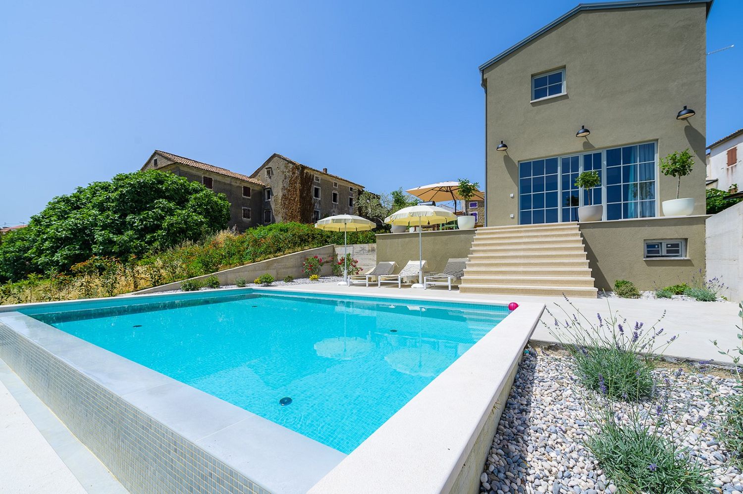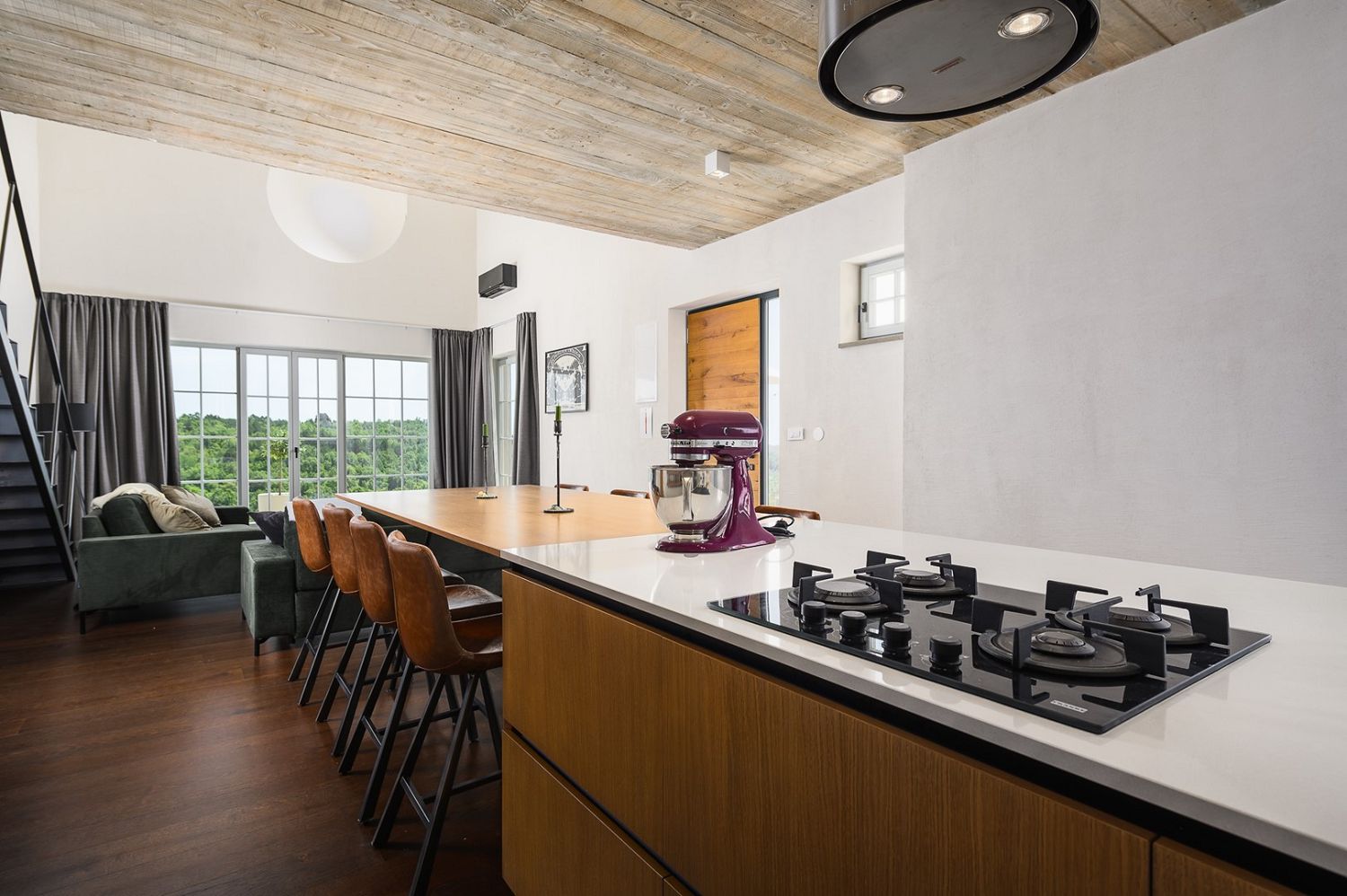Die Villa verfügt im ersten Stock über zwei komfortable Schlafzimmer und ein Badezimmer. Eines der Schlafzimmer ist mit einem Kingsize-Bett, das andere mit zwei Einzelbetten ausgestattet. Letztere können bei Bedarf leicht zu einem Doppelbett zusammengestellt werden. Im Erdgeschoss befindet sich ein großzügiger, offener Raum mit Küche, Essbereich und Wohnzimmer. Große Glastüren führen direkt auf die Terrasse und in den Garten mit Pool, von wo aus sich ein atemberaubender Blick auf die grünen istrischen Hügel bietet. Zur Ausstattung der Villa gehören ein privater Parkplatz für ein Auto, ein beheizter Pool mit Sonnenterrasse, Liegestühlen und Sonnenschirmen sowie ein eingezäunter Garten. In der Villa sind Ihre vierbeinigen Freunde herzlich willkommen. Für Haustiere wird ein Aufpreis berechnet. Wenn Sie einen Ort suchen, von dem aus Sie unsere Halbinsel entdecken und einen wunderbaren Urlaub verbringen können, dann haben Sie ihn hier gefunden.