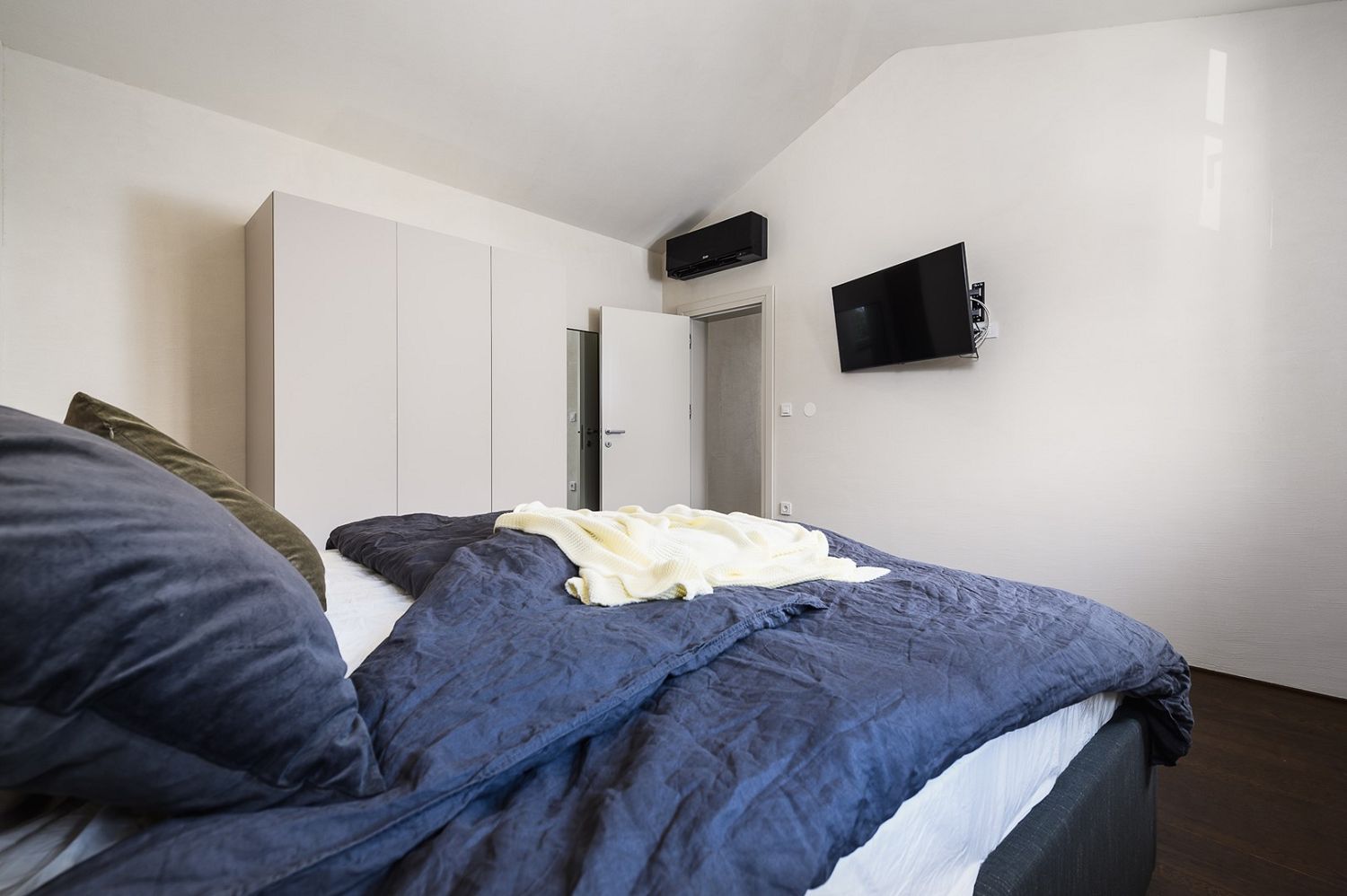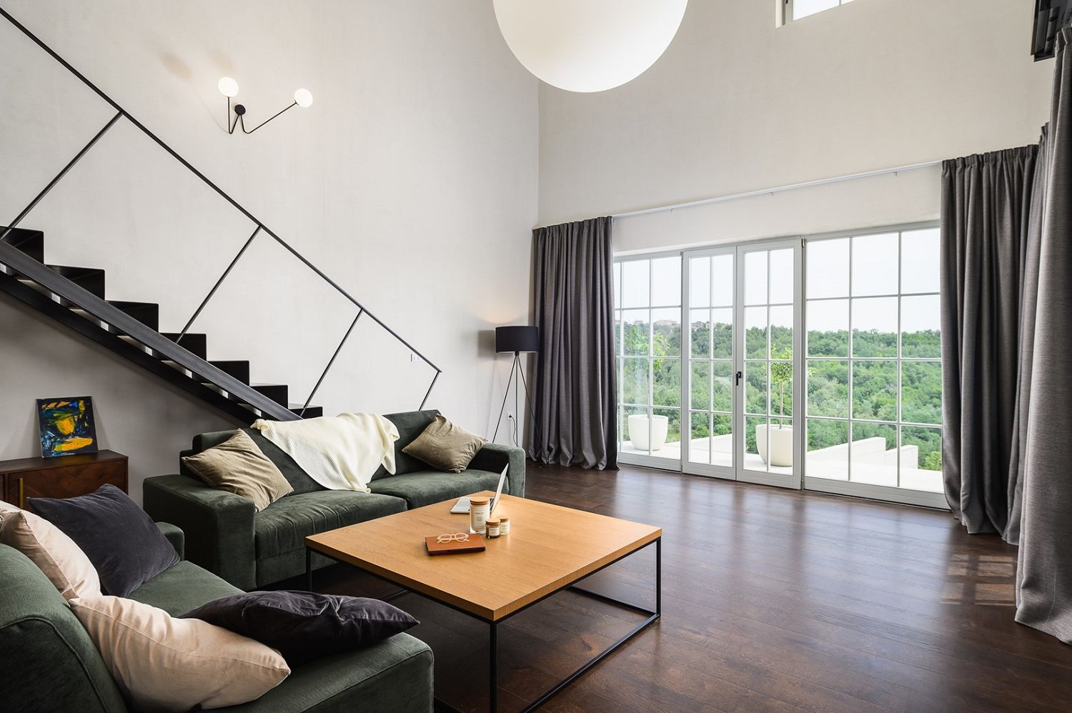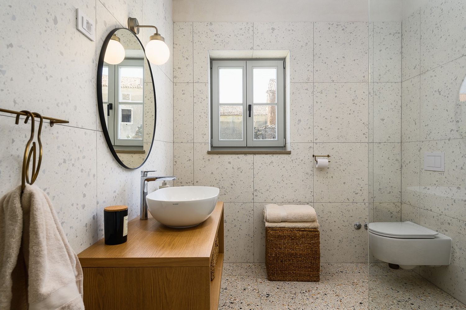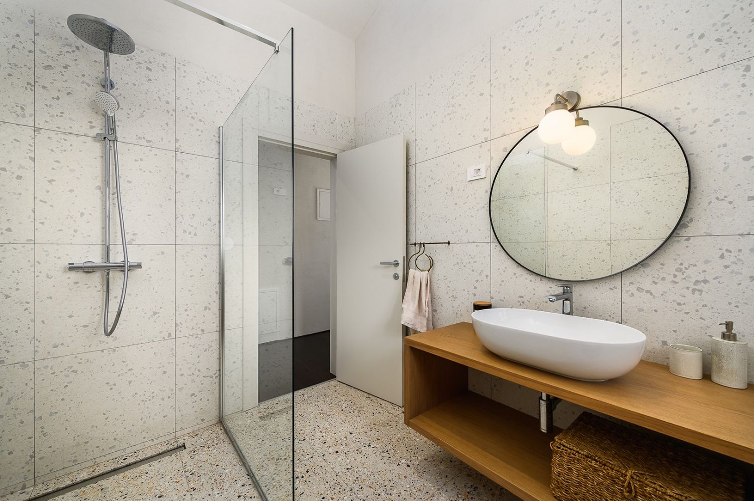 Die Villa verfügt im ersten Stock über zwei komfortable Schlafzimmer und ein Badezimmer. Eines der Schlafzimmer ist mit einem Kingsize-Bett, das andere mit zwei Einzelbetten ausgestattet. Letztere können bei Bedarf leicht zu einem Doppelbett zusammengestellt werden. Im Erdgeschoss befindet sich ein großzügiger, offener Raum mit Küche, Essbereich und Wohnzimmer. Große Glastüren führen direkt auf die Terrasse und in den Garten mit Pool, von wo aus sich ein atemberaubender Blick auf die grünen istrischen Hügel bietet. Zur Ausstattung der Villa gehören ein privater Parkplatz für ein Auto, ein beheizter Pool mit Sonnenterrasse, Liegestühlen und Sonnenschirmen sowie ein eingezäunter Garten. In der Villa sind Ihre vierbeinigen Freunde herzlich willkommen. Für Haustiere wird ein Aufpreis berechnet. Wenn Sie einen Ort suchen, von dem aus Sie unsere Halbinsel entdecken und einen wunderbaren Urlaub verbringen können, dann haben Sie ihn hier gefunden.