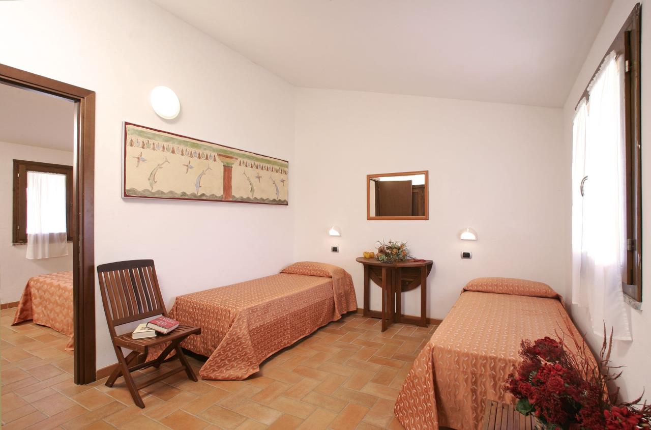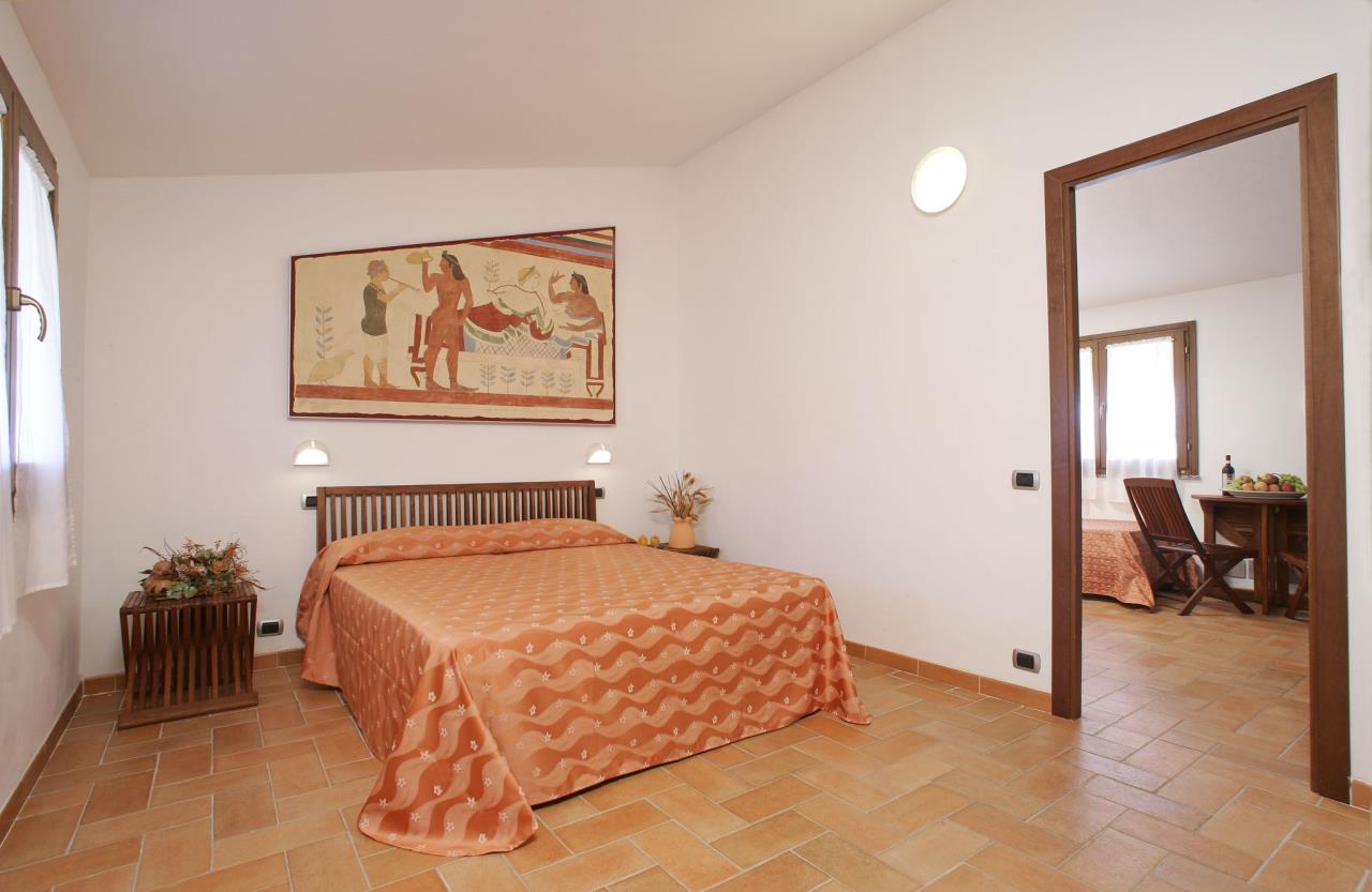 Das in Massivbauweise errichtete 2-Zimmer Häuschen Superior Vulci Cottage für 4 Personen (auf Anfrage ist eine Überbelegung auf 5 Personen mit einem Kind unter 3 Jahren (im Reisebett) möglich) befindet sich angrenzend an den Pinienwald. Die Unterkunft besteht aus einem Zimmer mit Ehebett und einem Wohnzimmer mit zwei vollwertigen Einzelbetten (können auch zusammengeschoben werden), welche tagsüber als Sofa dienen. Die Kochnische verfügt über einen Herd, Geschirr, Besteck, Töpfe sowie einen Kühlschrank mit Eisfach. Das Badezimmer ist mit einem WC, einem Waschbecken und einer Dusche ausgestattet. Jede Unterkunft verfügt über eine Terrasse mit Tisch und Stühlen auf welcher Sie sich entspannen können, während die Kinder sich auf dem Spielplatz oder am Pool austoben können. Grillen ist in den Grillzonen mit einem Holzkohlegrill erlaubt. Fahrzeit ab ital. Grenze ca. 5h. Hinweis: Wenn Sie mehr als eine Unterkunft benötigen, ist dies bei uns in der Regel möglich, da wir über mehrere Objekte des gleichen Haustyps verfügen.