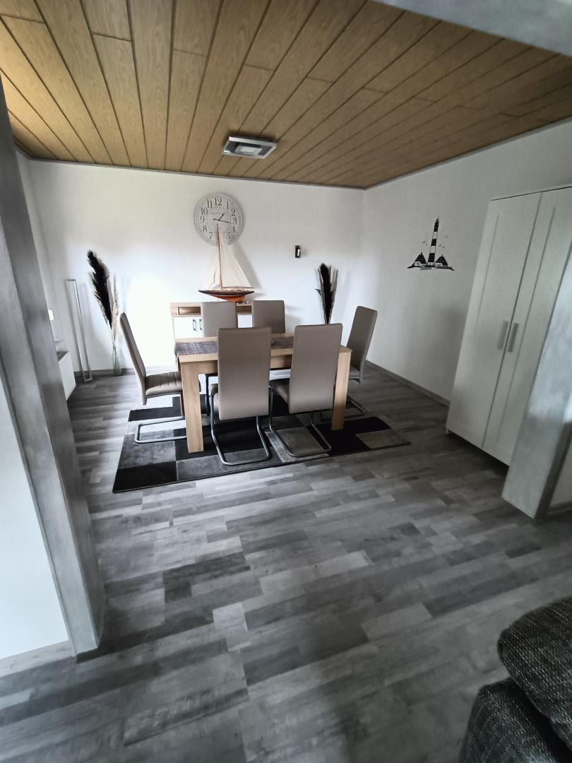 Wir begrüßen Sie in unserem großzügig geschnittenem Ferienhaus in Neufeld. Das Ferienhaus verfügt über ca. 114 qm und bietet Platz für bis zu 7 Personen. Im Erdgeschoss befinden sich ein Ess und Wohnzimmer, eine voll ausgestattet Küche, ein Badezimmer mit Dusche und Hauswirtschaftsraum mit Waschmaschine und Trockner, die gegen eine kleine Gebühr genutzt werden können. Im Wohnzimmer befindet sich ein Schlafsofa, auf dem eine 7. Person Ihren Schlafplatz findet. Der Schlafbereich befindet im OG. 3 Schlafzimmer mit jeweils 2 Einzelbetten, welche bei Bedarf auch gerne zusammen gestellt werden können. Jedes Schlafzimmer ist mit einem Flachbild-SAT-TV und zwei Kleiderschänken ausgestattet. Das zweite Badezimmer mit Dusche und Wanne befindet sich ebenfalls im OG. Einen Föhn finden Sie in beiden Badezimmern. Auf Nachfrage stellen wir gerne ein Babybett und einen Kinderhochstuhl zur Verfügung. Zum Ferienhaus gehört ein Garten inkl. Terrasse, Gartenmöbel, Grill und einen Aufenthaltsraum mit Tisch-Fußball und Dartscheibe. Drei Fahrräder stellen wir Ihnen kostenlos zur Verfügung und auch Ihre Räder können in einem separaten Raum eingeschlossen werden.