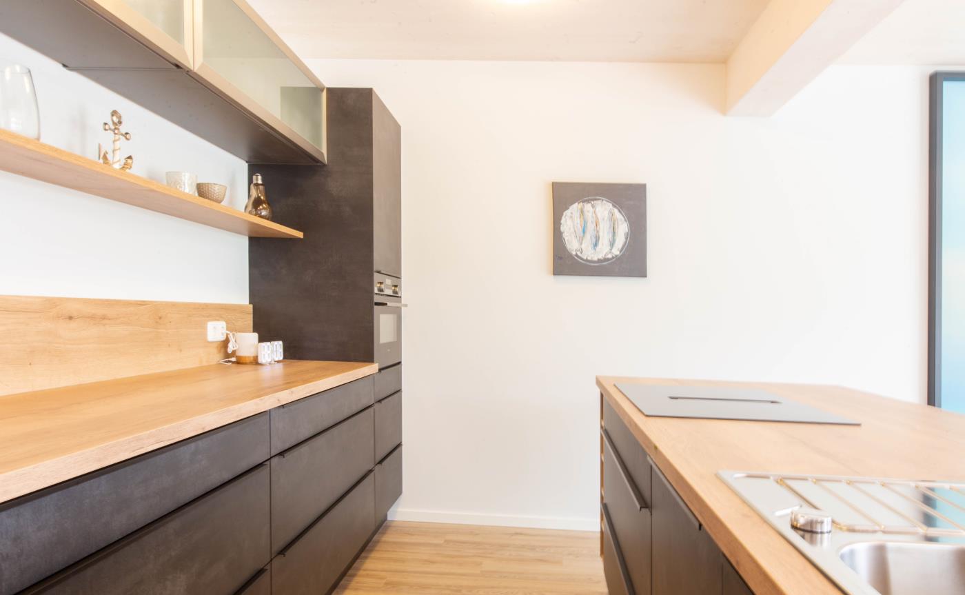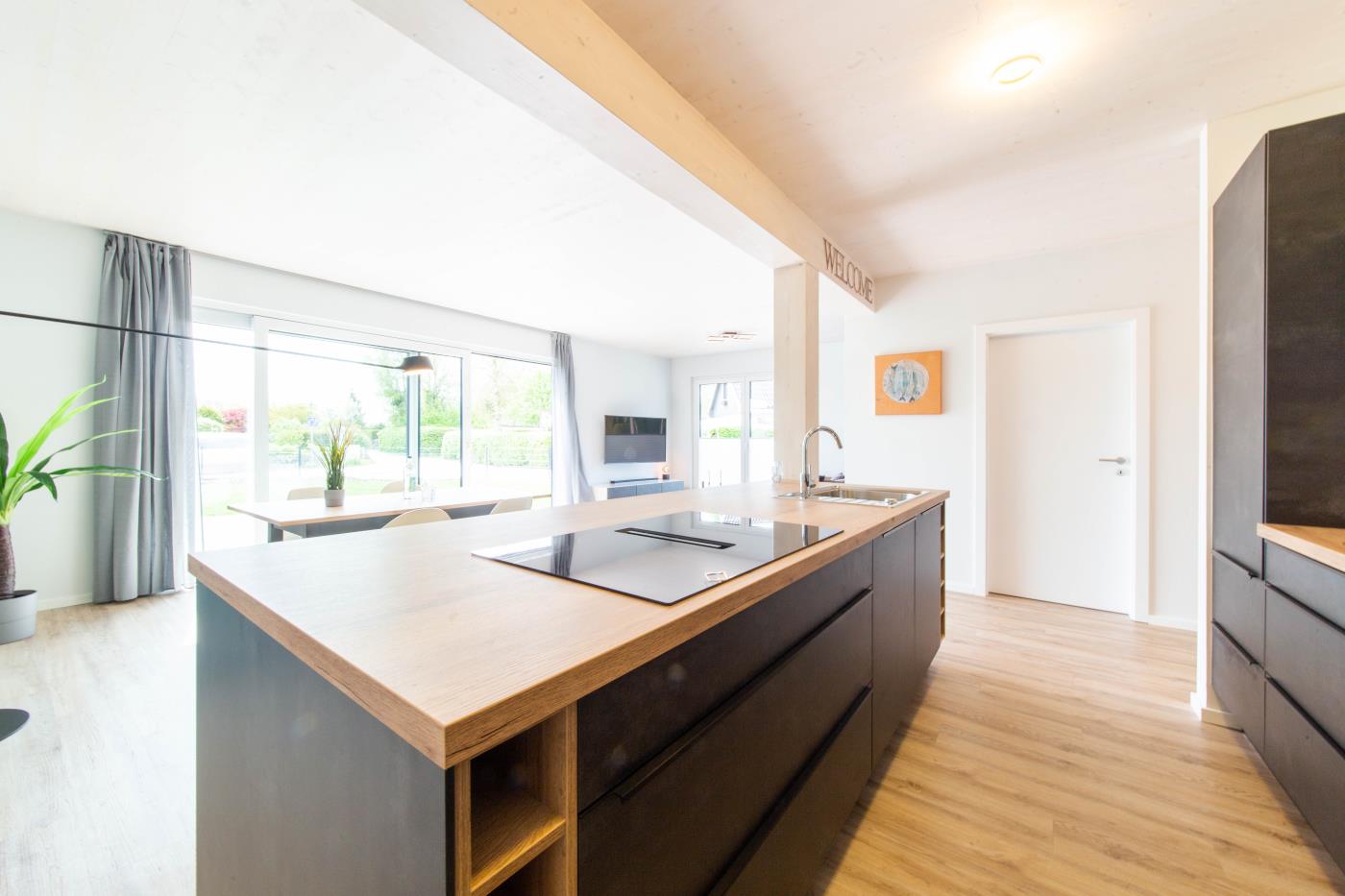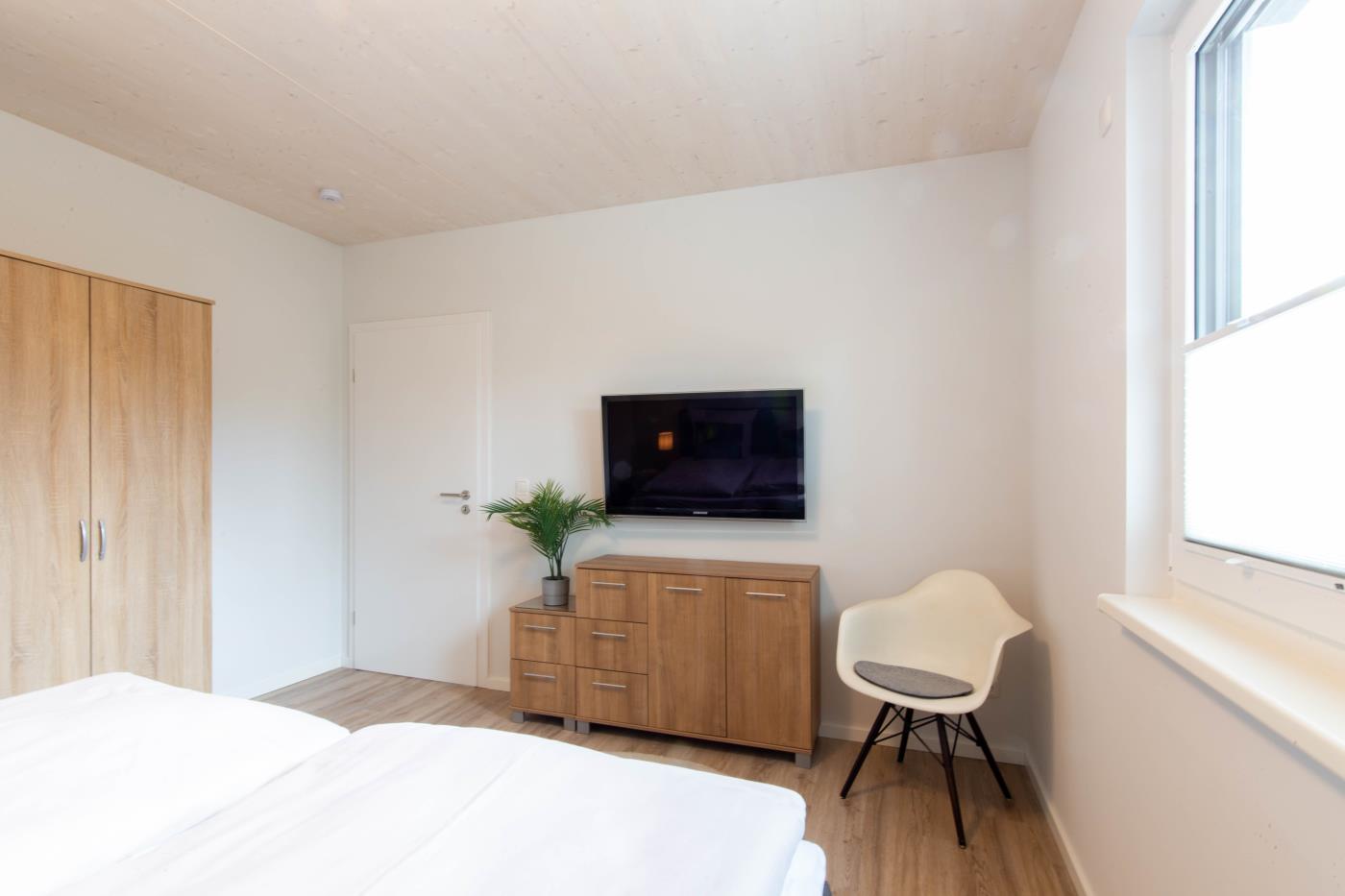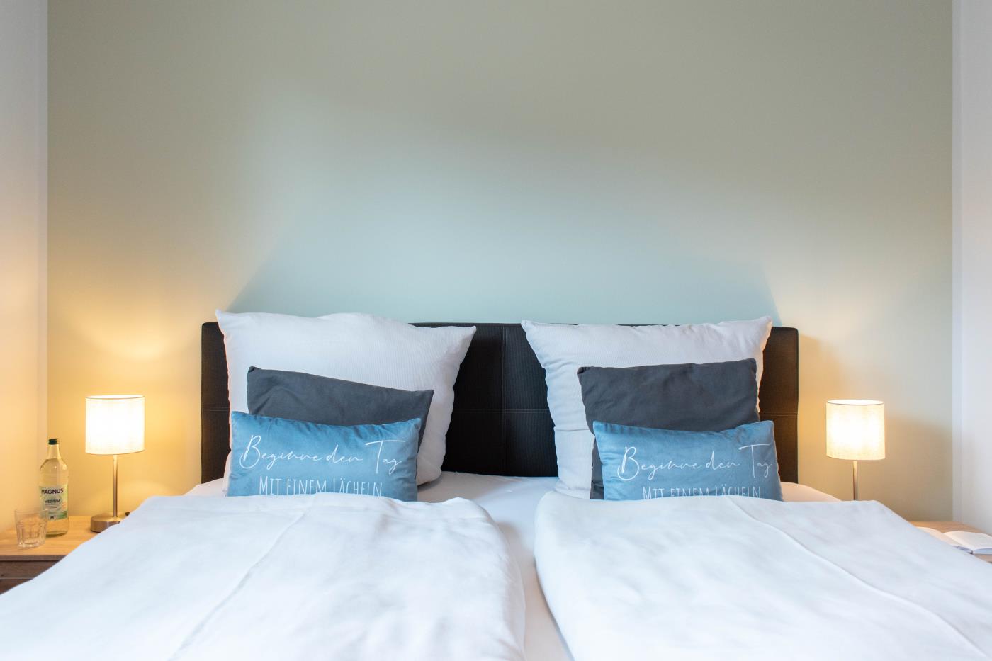 Hier bieten wir Ihnen auf 78 m² mit zwei separaten Schlafzimmern einen Neubau für vier Gäste. Eine bodentiefe Fensterfront im Wohnzimmer sorgt den ganzen Tag für eine helle und freundliche Atmosphäre. Die großzügige Sitzecke lädt zum geselligen Verweilen oder gemütlichen Entspannen ein. Der stilvolle Essbereich bietet viel Platz und ist geschickt in den Raum integriert, am großen Esstisch trifft man sich gerne zu jeder Tageszeit. Die Küche bildet mit der schicken Kochinsel das Herzstück der modernen Ferienwohnung. Die beiden Schlafzimmer sind mit gemütlichen Doppelbetten (1,80er und 1,40er Breite), Flat-TVs, Kommoden und Kleiderschränken ausgestattet. Das große Badezimmer verfügt über eine geräumige Raindance Dusche und einen Handtuchhalter. Sonnige Stunden lassen sich auf der Terrasse und im Garten genießen, das gesamte Haus ist Richtung Süden ausgerichtet.