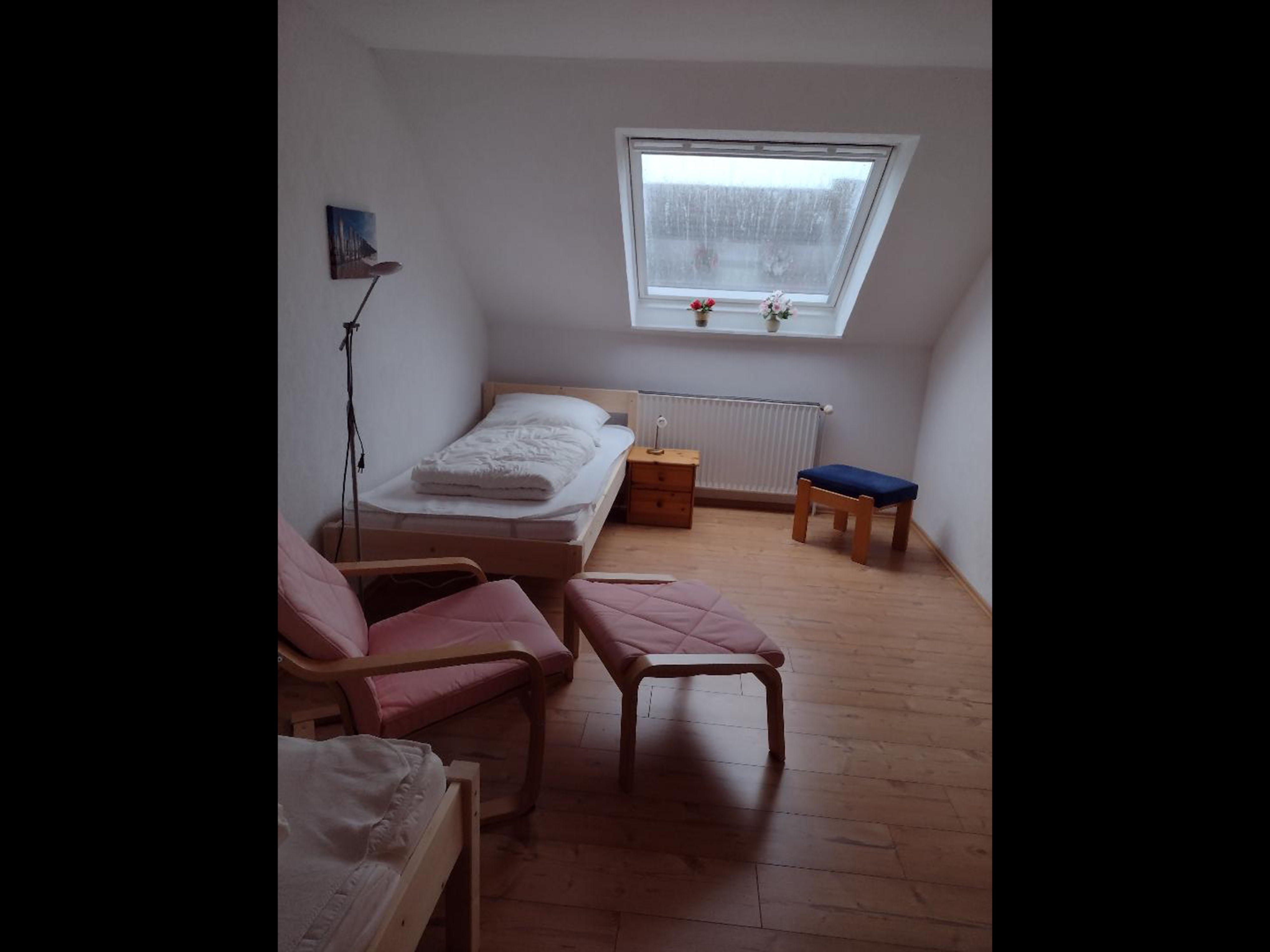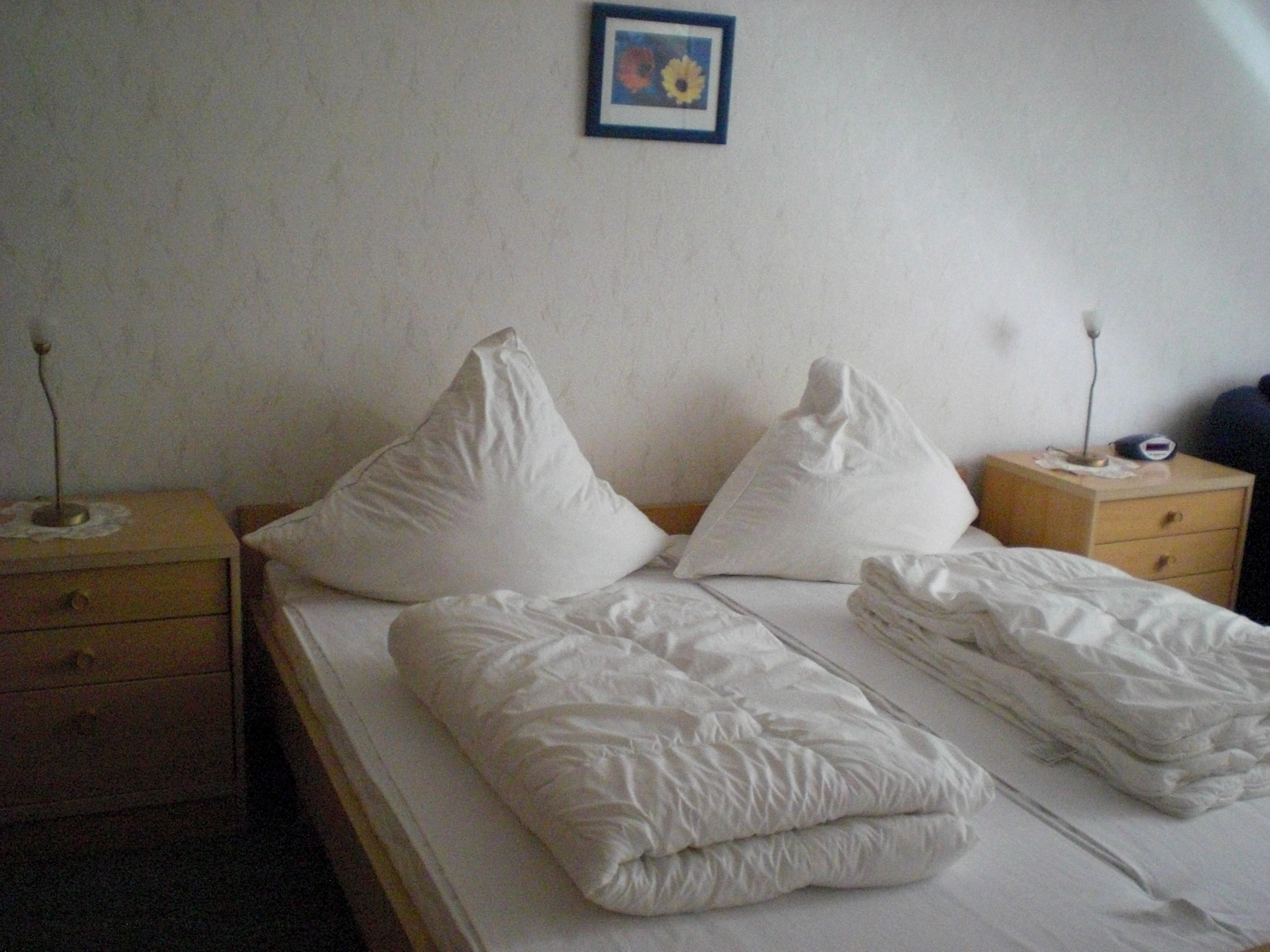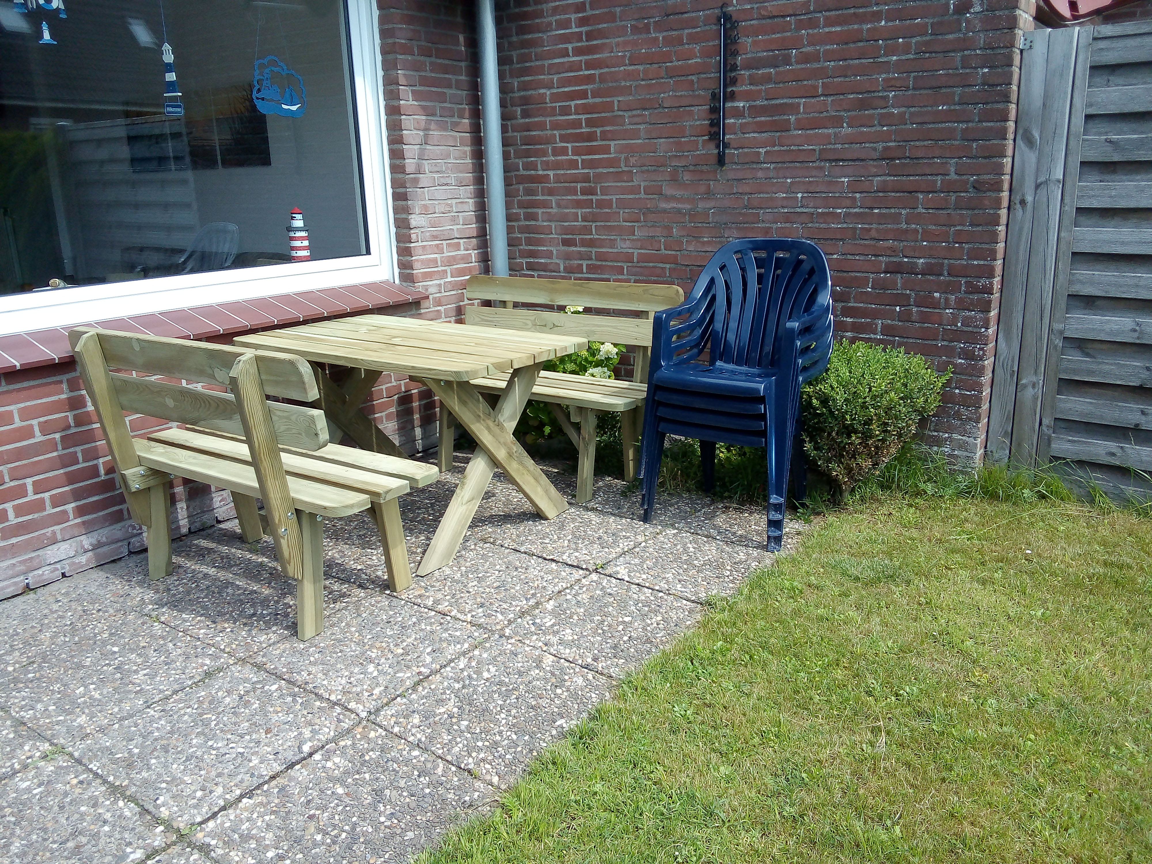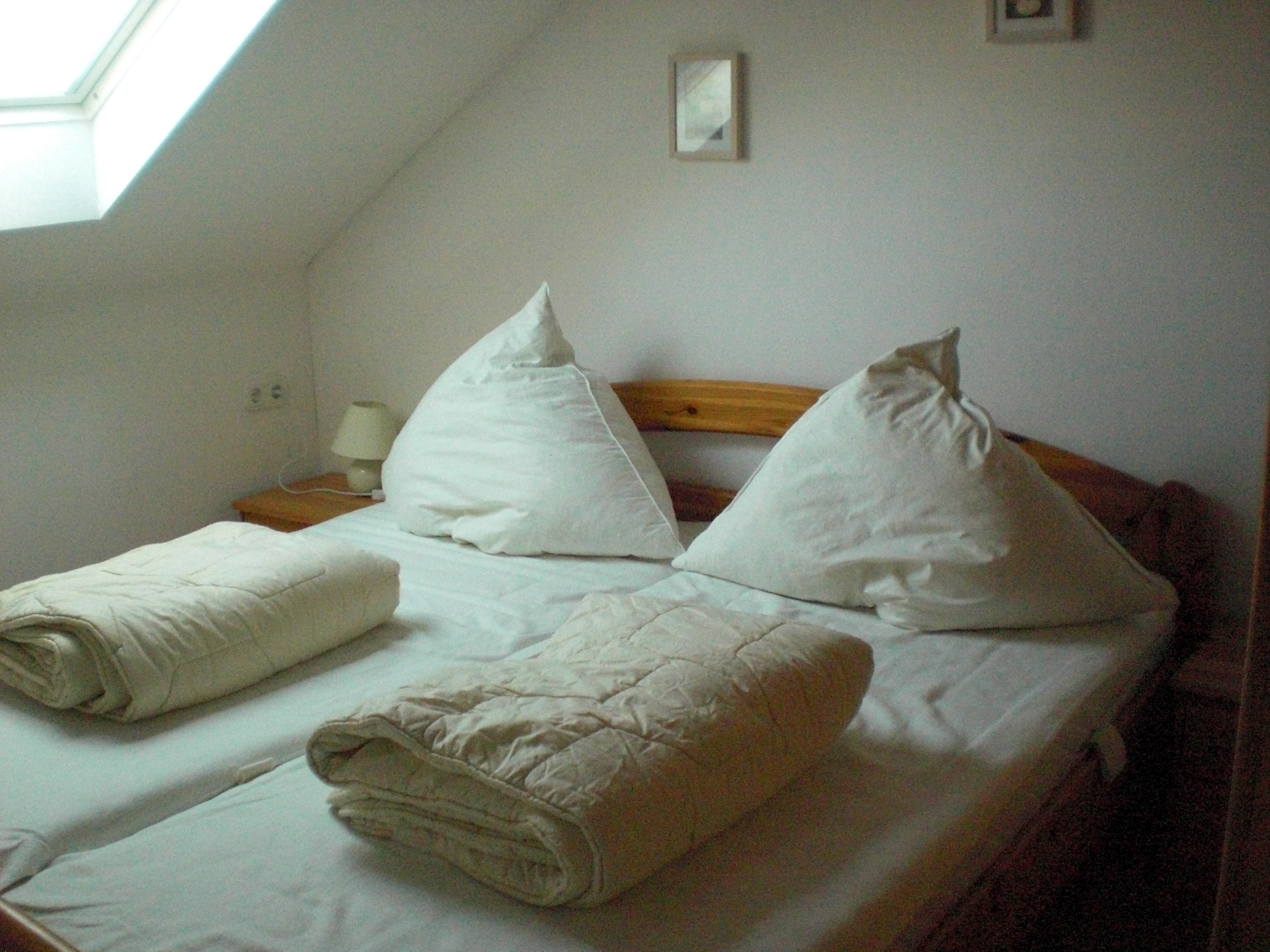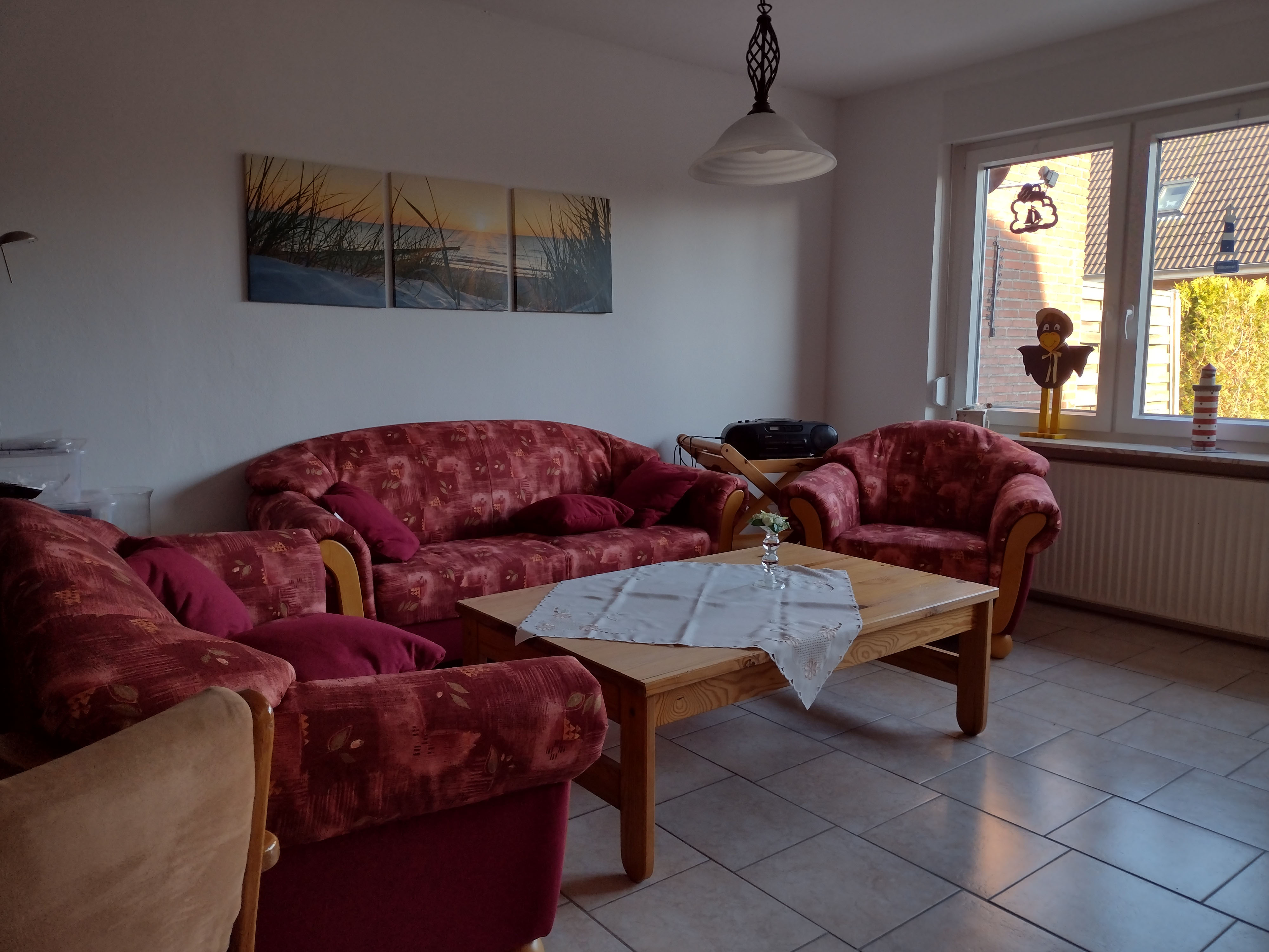 Das Reihenhaus wurde in der 70er Jahren erbaut und ab 2020 aufwendig renoviert. Das Haus ist für bis zu 4 Personen eingerichtet. Zum Haus gehört ein PKW-Einstellplatz. Es handelt sich um ein Nichtraucher Haus. Das gemütlich eingerichtete Wohnzimmer verfügt über einen Fernseher mit Satelliten-Anschluss und ein Radio mit CD-Player. Die Küche ist zum Ess-/Wohnbereich hin offen gestaltet und mit allen erforderlichen Utensilien ausgestattet, u.a. gehören folgende Elektrogeräte dazu: Elektroherd mit Ceranfeld und Dunstabzugshaube Kühlschrank mit Gefrierfach Spülmaschine Kaffeemaschine Eierkocher Wasserkocher Toaster Mikrowelle Handmixer Der Essbereich besteht aus einem großen Tisch mit 6 Stühlen. Das Bad im Erdgeschoss verfügt über eine Dusche, Waschtisch und WC. Im Obergeschoss befinden sich zwei Schlafräume mit einem Doppelbett und mit zwei Einzelbetten. In jedem Schafzimmer ist ein Radiowecker auf einem der Nachtschränkchen. Ein WC mit Waschtisch befindet sich ebenfalls im Dachgeschoss. Das Bad verfügt über Kosmetikspiegel und Haartrockner. Für die Terrasse sind Tisch und 2 Bänke vorhanden. Eine Holzhütte vor dem Haus bietet Platz für Fahrräder. Eine Transportkarre zur Beförderung des Gepäcks vom Auto zum Haus steht ebenfalls in der Hütte zur Verfügung. Handtücher und Bettwäsche müssen mitgebracht werden. WLAN wird kostenlos angeboten. Wäscheständer, Bügelbrett und Bügeleisen vorhanden.