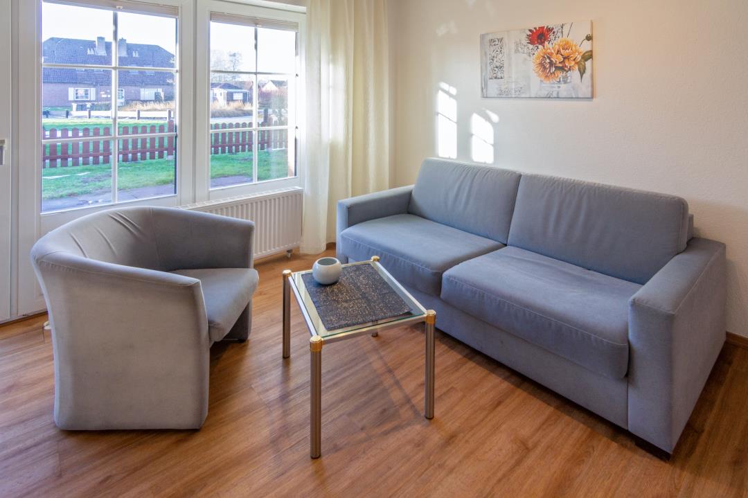 Die gemütliche Ferienwohnung Tina in Norddeich bietet auf rund 48 m² den idealen Rückzugsort für alle, die einen erholsamen Nordseeurlaub in strandnaher Lage verbringen möchten. Die Erdgeschosswohnung überzeugt durch ihren hellen, freundlich eingerichteten Wohn‑ und Essbereich, der durch große Fenster viel Tageslicht erhält und sofort eine warme Urlaubsatmosphäre schafft. Hier befindet sich auch eine hochwertige Schlafcouch, die neben dem separaten Schlafzimmer eine zusätzliche Schlafmöglichkeit bietet. Vom Wohnbereich aus gelangen Gäste direkt auf die sonnige Terrasse mit angrenzendem Garten – ein echtes Highlight dieser Ferienwohnung, das zu entspannten Stunden an der frischen Nordseeluft einlädt.