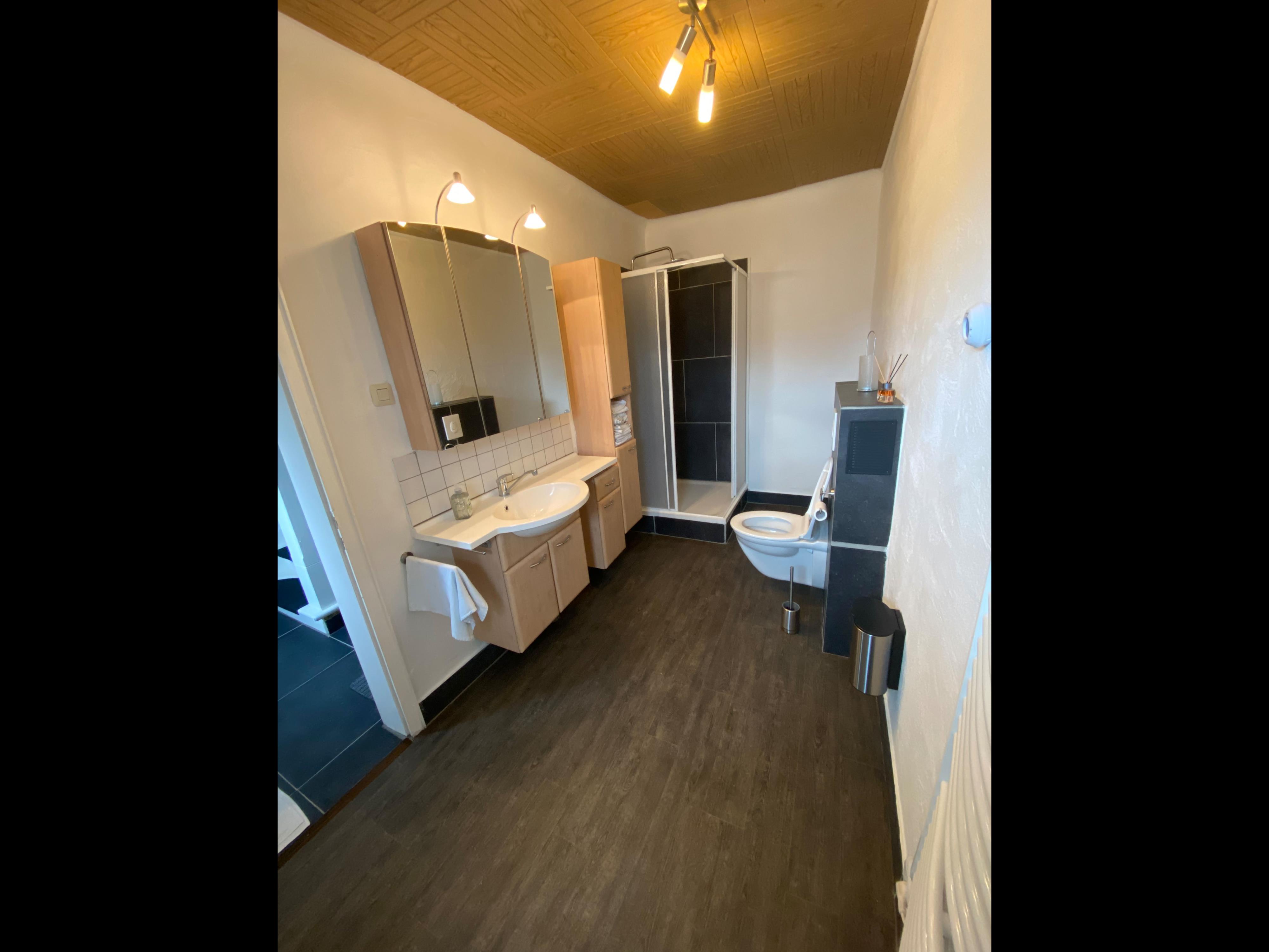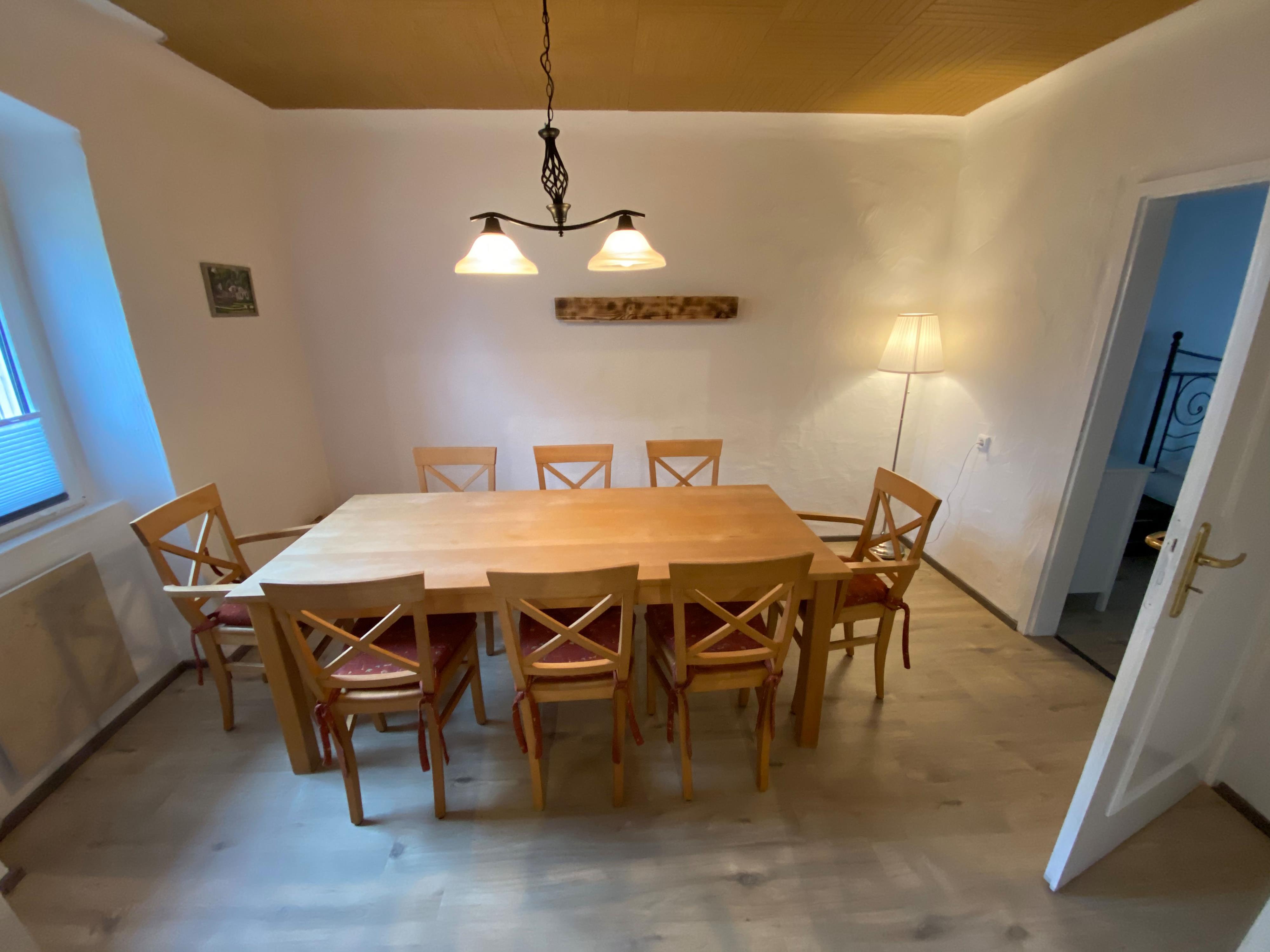 Im 1. OG finden Sie die voll ausgestattete Küche inkl. Kühlschrank, Herd, Backofen, Gefriermöglichkeit und Spülmaschine, sowie das Esszimmer mit großem Esstisch und Stühlen. Ebenfalls das Badezimmer mit Dusche, WC und ein Schlafzimmer mit Doppelbett. Im 2.OG finden Sie drei weitere Schlafzimmer. Ein Schlafzimmer ist nur über ein Durchgangszimmer zu erreichen. Dieses kann z.B. als Familienzimmer genutzt werden. Das Wäschepaket kann für zwölf Euro nach Reservierung dazu gebucht werden.