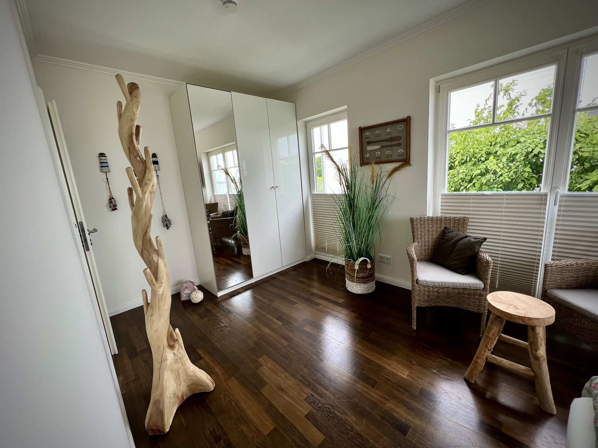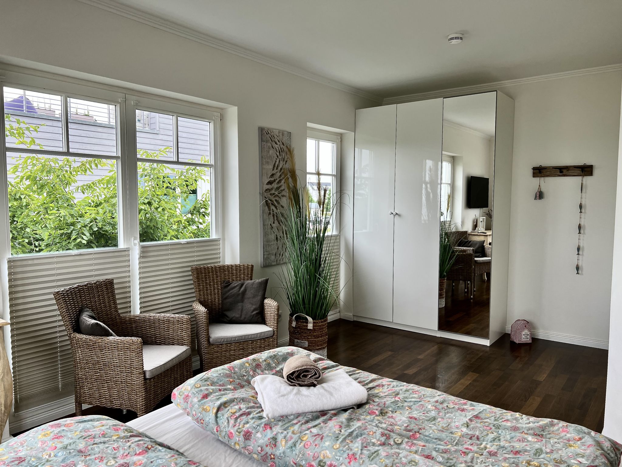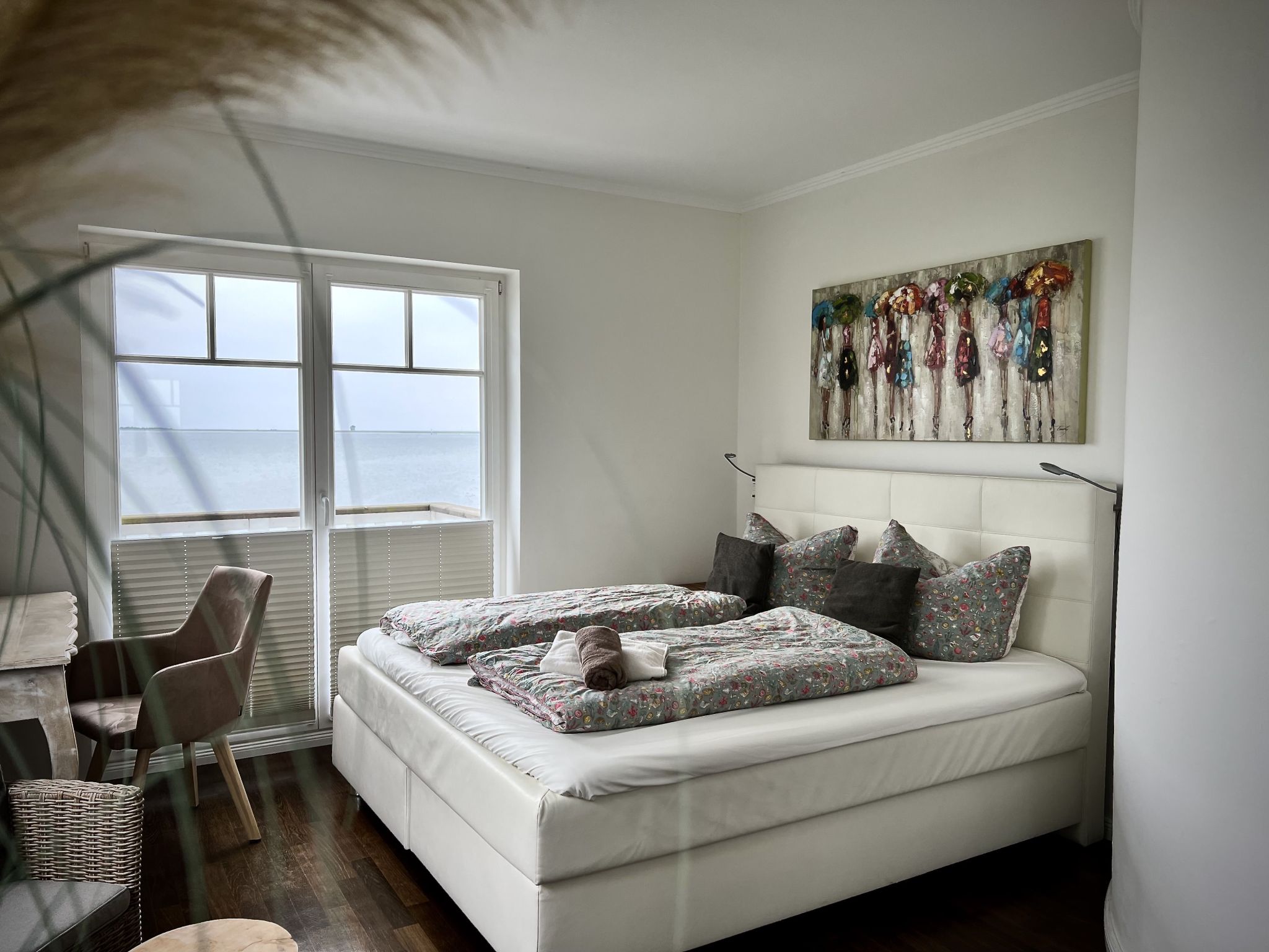 Über eine imposante Wendeltreppe gelangt man in das Obergeschoss. Zwei großzügige Schlafzimmer mit hochwertigen Boxspringbetten für vier Personen, garantieren einen wunderbar entspannten Schlaf und schöne Träume. Doch möchte man eigentlich bei diesem Ausblick schlafen...? Das Beruhigende ist: man wacht mit demselben traumhaften Ausblick wieder auf. Jedes Schlafzimmer punktet insbesondere mit dem direkten Zugang zum Balkon und dem traumhaften Ausblick auf die Schlei, sowie einen kleinen Schreibtisch für diejenigen, die im Urlaub ein wenig Arbeiten müssen. High Speed WLAN über Glasfaser und ein 43 Zoll Smart TV in jedem Schlafzimmer, ist in diesem Ferienobjekt selbstverständlich.