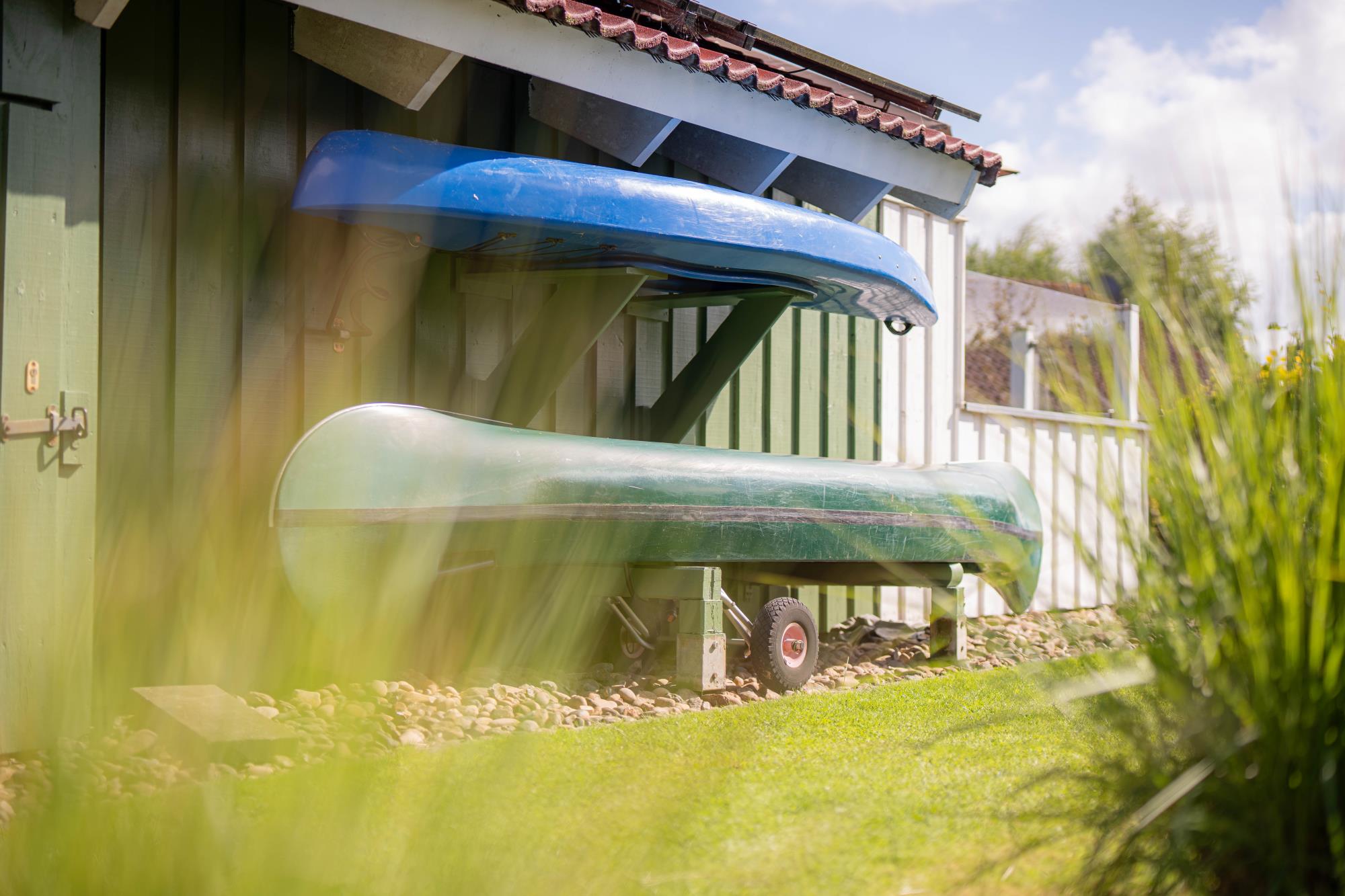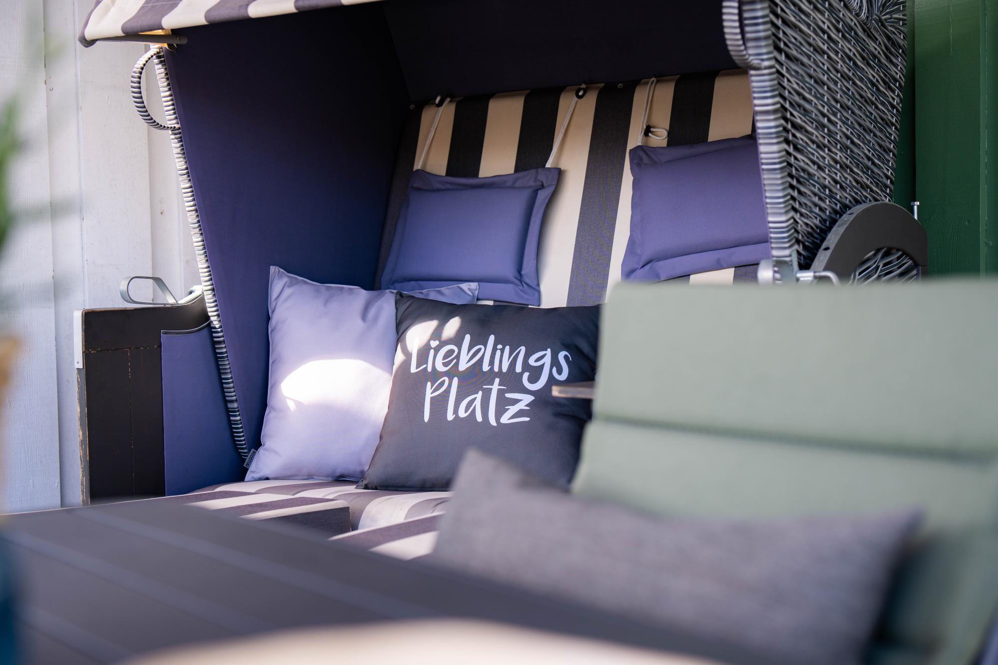 Außenbereich: Gartengrundstück, Südterrasse mit Seeblick, geschlossener Terrassenbereich mit Pforte, Gartenmöbel mit Auflagen, zwei Sonnenliegen mit Auflagen, Sonnenschirm, großer Strandkorb für 2 Personen, Grill, Grillbesteck, Außendusche für Hunde mit Warmwasseranschluss (Frostsicher), Befestigungshaken für Hunde, Kanu mit drei Sitzbänken (max. Belastung 300 kg, Benutzung auf eigene Gefahr), Kajak mit Spritzschutz für eine Person (Benutzung auf eigene Gefahr), Kanutransportwagen, Schwimmwesten (0-15kg, 15-30kg und 30-50kg)