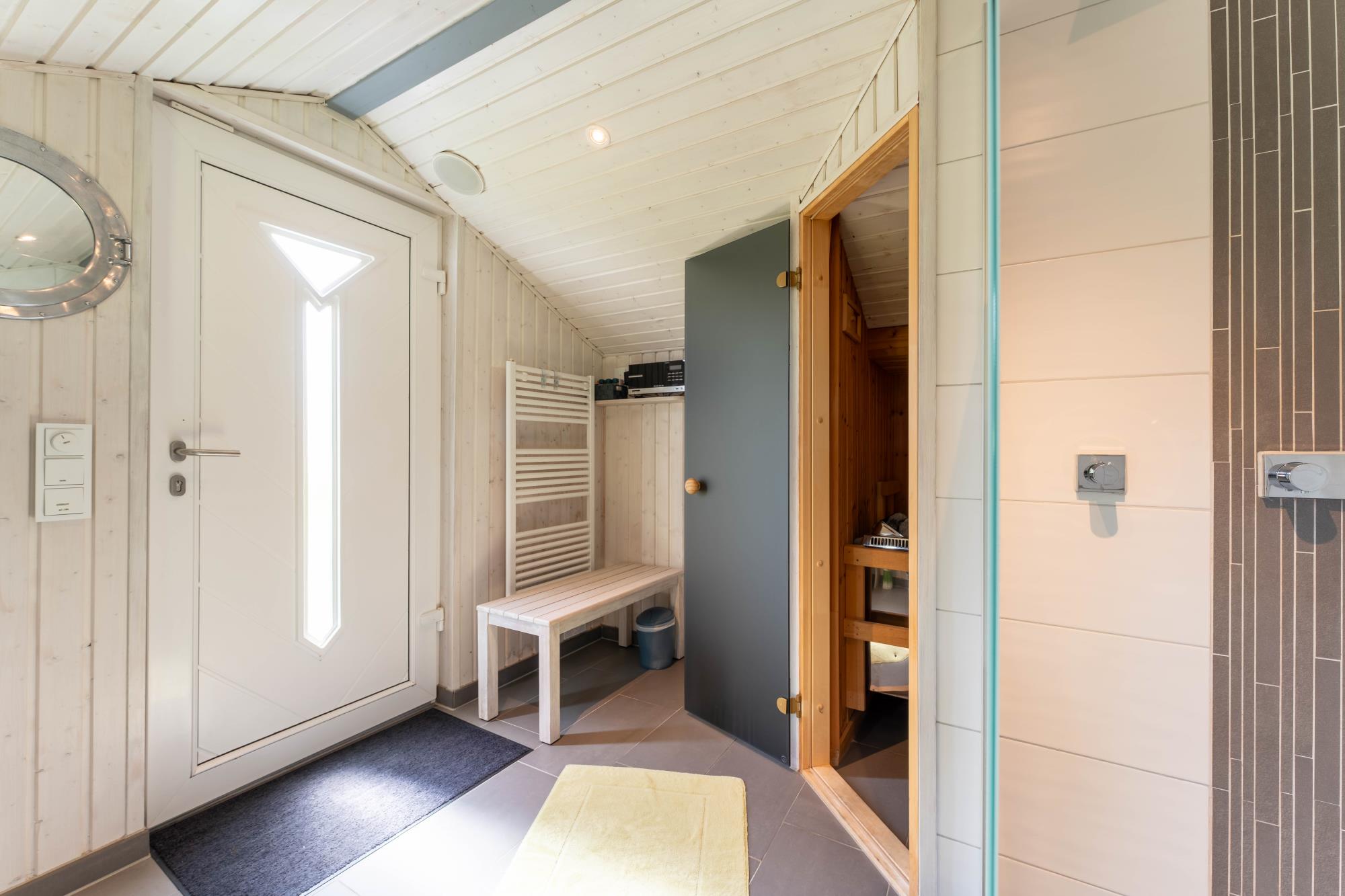 Neben dem Badezimmer im Ferienhaus, wurde Ihnen in einem Anbau der von außen zugänglich ist, ein ganz privater Wellnessbereich mit Sauna geschaffen. Eine Radioanlage die auch in die Sauna geschaltet ist, ermöglicht Ihnen erholsame Saunagänge bei wohltuender Entspannungsmusik. Die großzügige Rainshowerdusche mit Massagebrause und Wasserschwallvorrichtung, machen dieses einmalige Spaerlebnis perfekt.