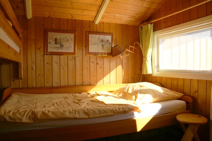 Schlafzimmer: Laminatboden, ein Schlafzimmer mit einem Doppelbett, Fernseher und ein Schlafzimmer mit einem Hochbett und einem Einzelbett, Kinderreisebett