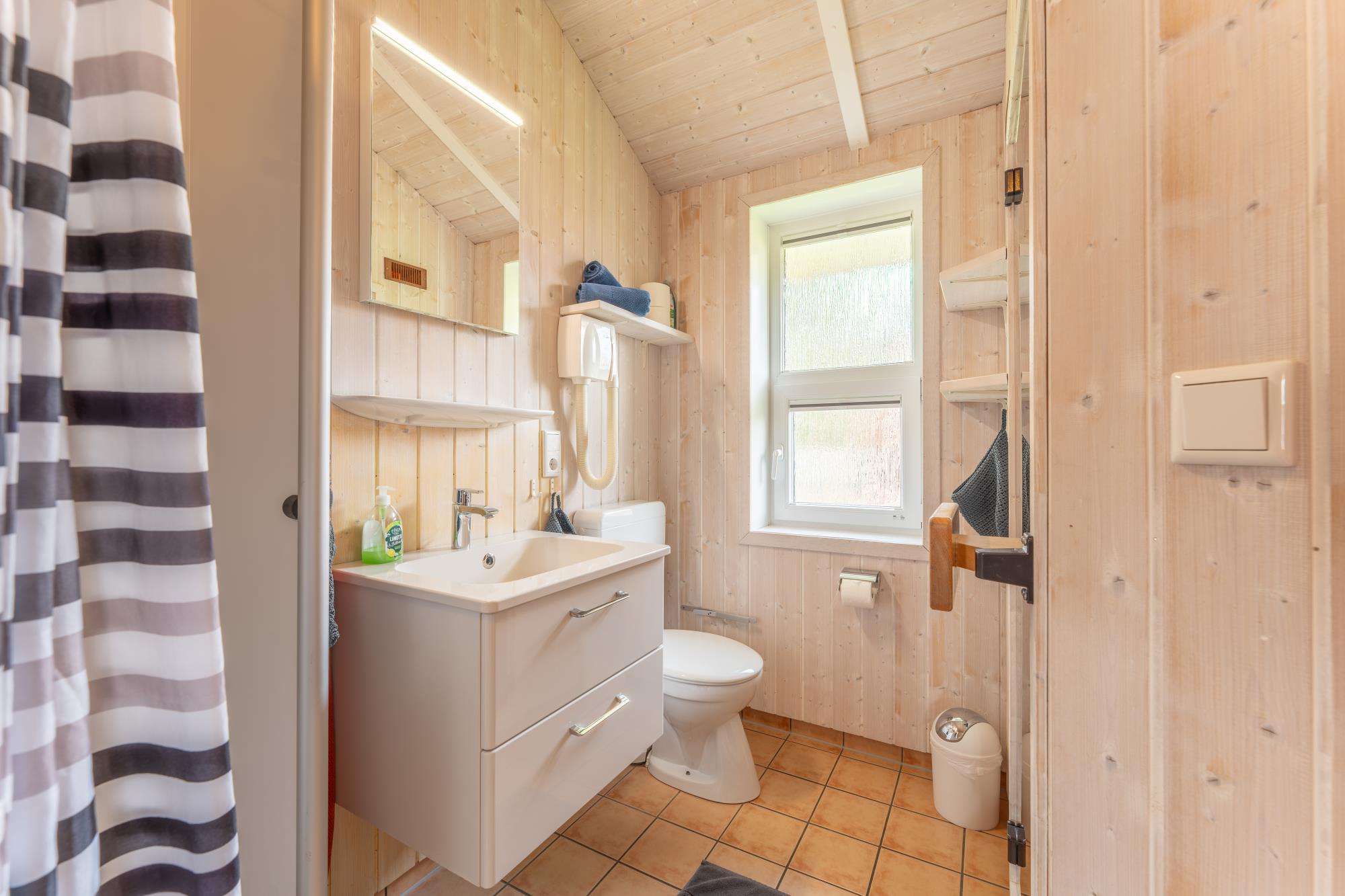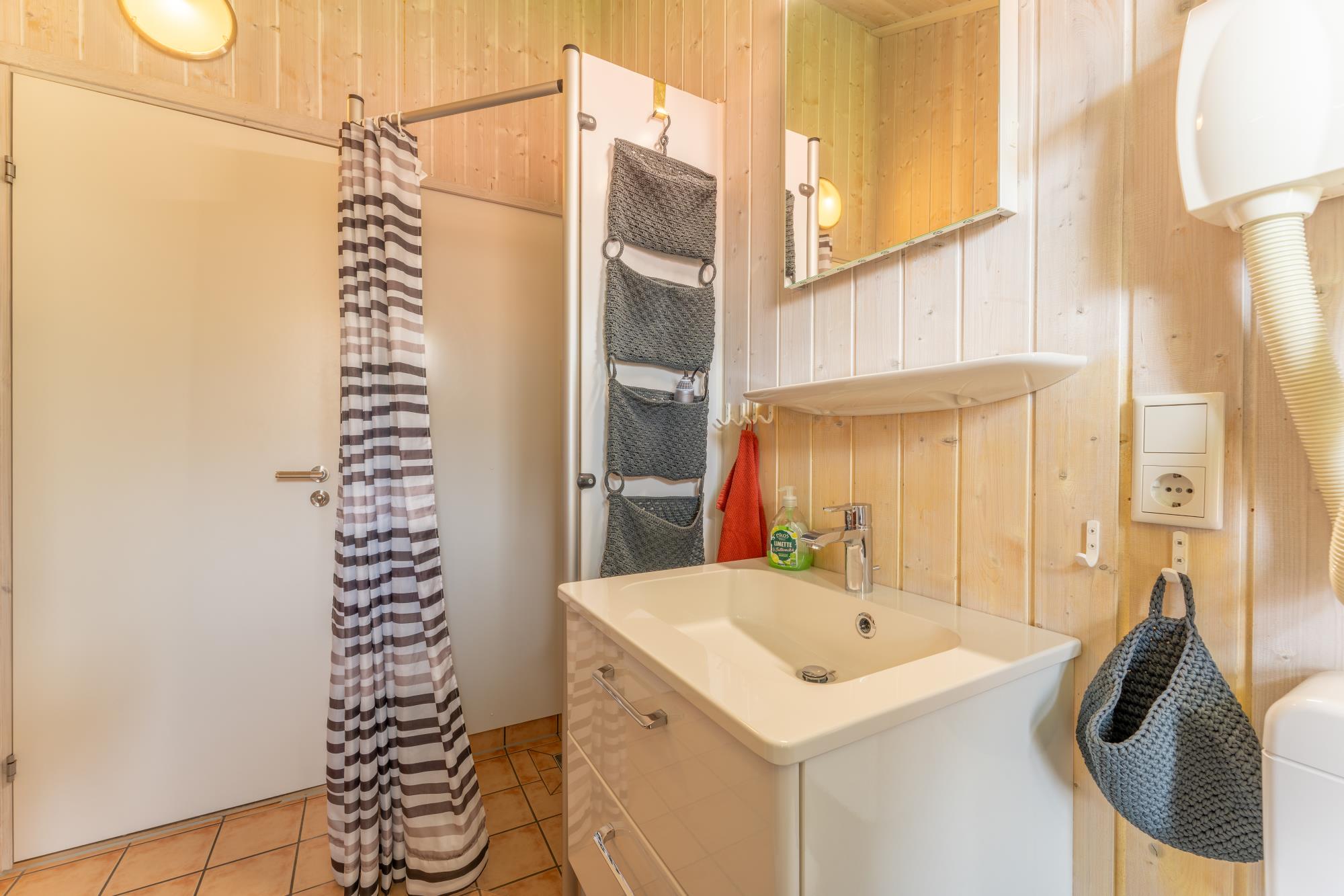 Badezimmer: Fliesen, Fußbodenheizung, Sauna, Dusche, Waschtisch und WC, Fliegengitter