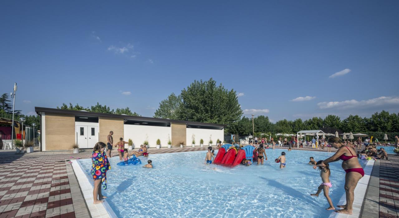 POOLNebst dem Erwachsenenpool gibt es in der Anlage auch einen Kinderpool mit Rutsche, in welchem sich die kleinsten austoben und neue Freundschaften schliessen können. Rund um die Poolanlage stehen den Gästen Sonnenliegen und Sonnenschirme gegen Gebühr zur Verfügung.