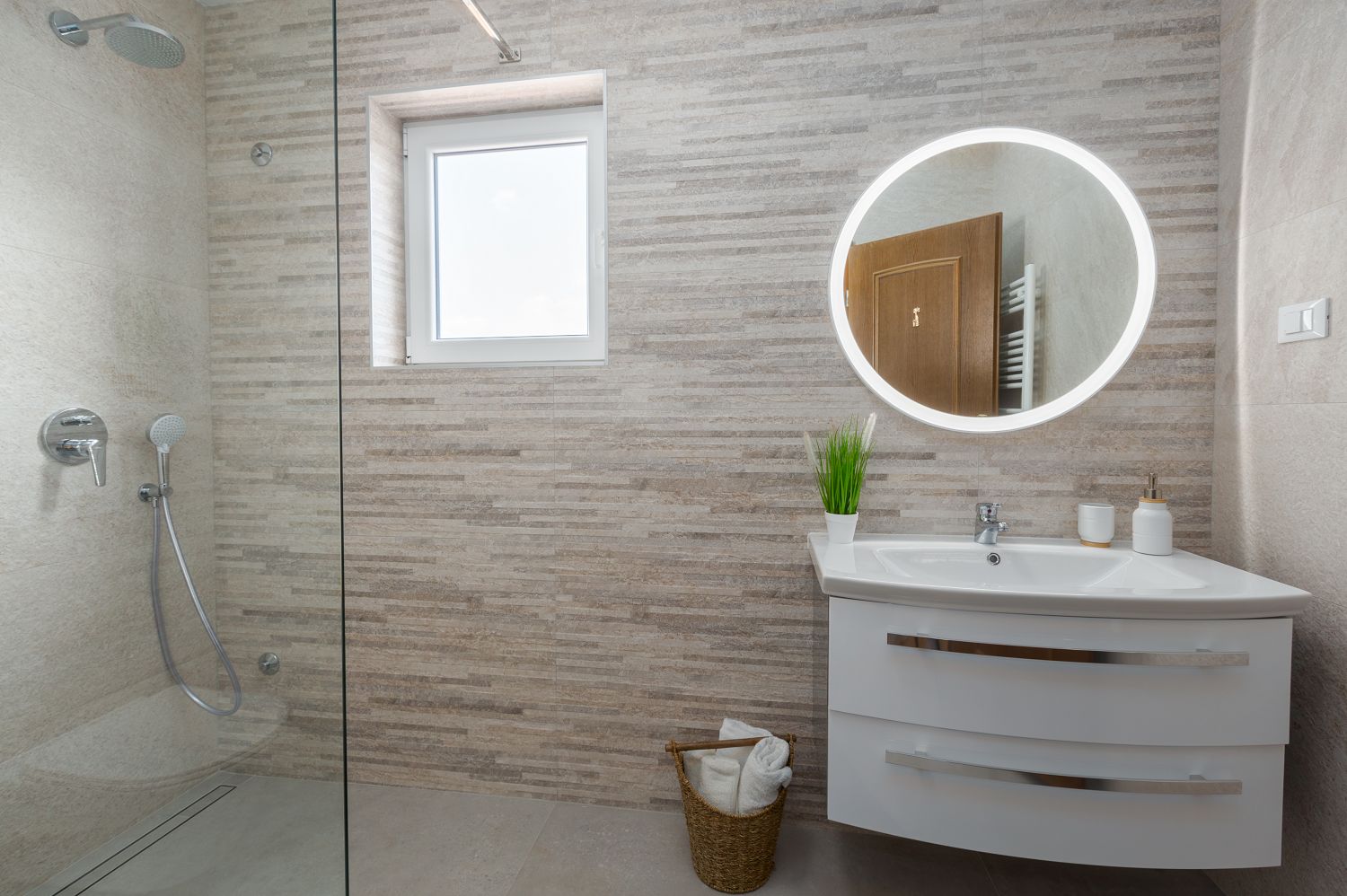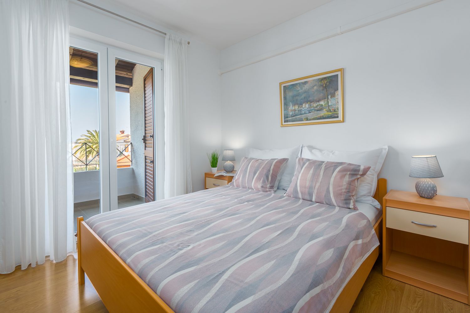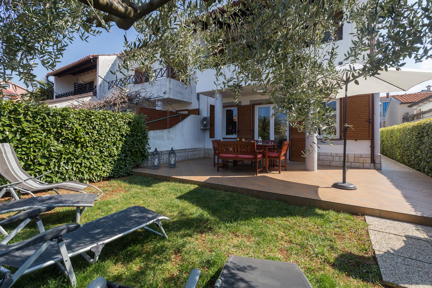 Das Ferienhaus befindet sich im ruhigen Villenviertel Porec Jug, nur 15 Gehminuten vom Strand Brulo und ca. 900 m von der Altstadt Porecs entfernt. Das teilweise renovierte Haus steht auf einem 100 m² großen Grundstück und verfügt über einen schönen Garten. Ein privater Parkplatz ist vor dem Haus vorhanden und der Garten mit Grill und Gartenmöbeln steht zur Alleinnutzung zur Verfügung. Das Ferienhaus bietet auf 110 m² Platz für sechs Personen und ist auf zwei Etagen verteilt. Im Erdgeschoss befindet sich eine komplett ausgestattete Küche, ein Esstisch und ein Wohnzimmer mit Ausgang zur überdachten Terrasse mit Gartenmöbeln sowie ein Bad mit Dusche/WC. Im ersten Stock befinden sich drei Schlafzimmer, davon zwei mit Doppelbett und Balkon sowie eines mit Etagenbetten, und ein Badezimmer mit Dusche und WC. Klimaanlage und WLAN sind vorhanden und im Preis inbegriffen.