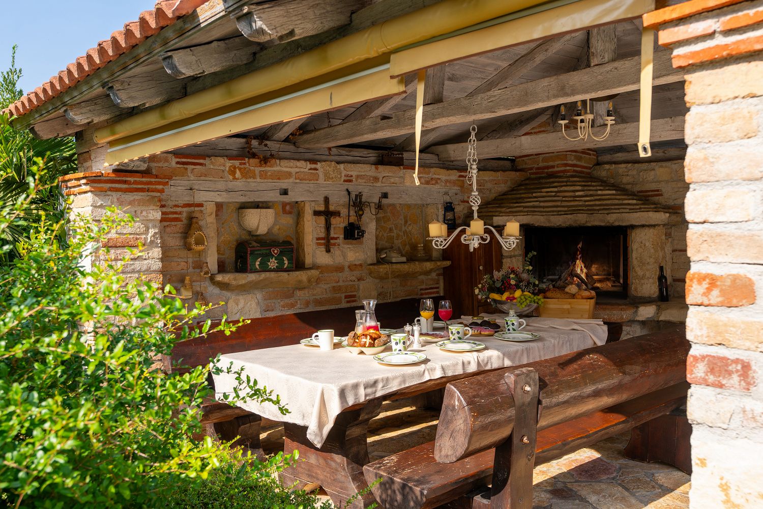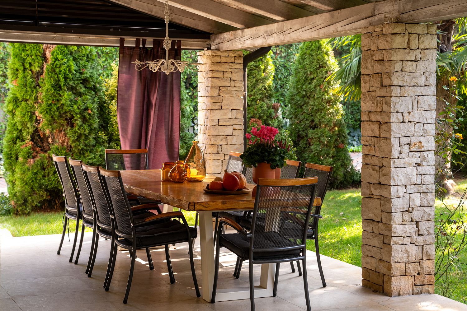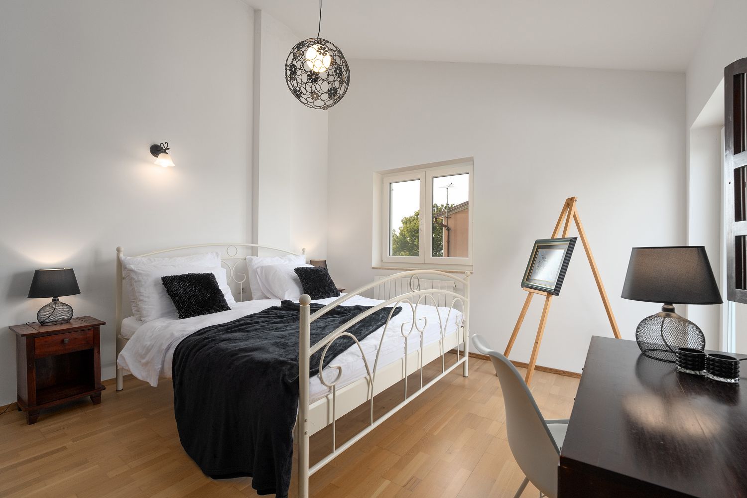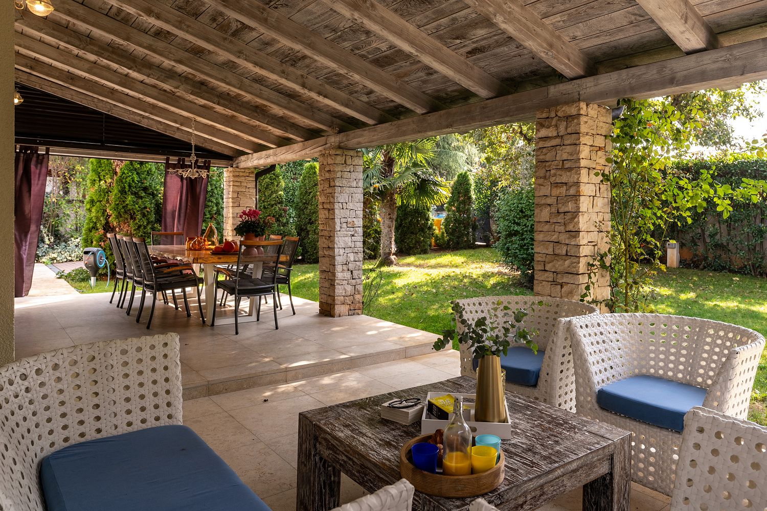Die Villa ist ein wunderschönes, modern ausgestattetes Ferienhaus im Ortsteil Gornji Špadici. Es liegt nur 1.200 Meter vom Meer und fünf Autominuten vom Zentrum von Porec entfernt. Das Haus liegt in ruhiger Lage auf einem komplett eingezäunten, gepflegten 1.200 m² großen Garten und bietet seinen Gästen Folgendes: Einen 36 m² großen Pool, der von Grün, Liegestühlen und Sitzgelegenheiten umgeben ist, eine Sommerküche mit überdachter Terrasse und Grill sowie mehrere Parkplätze im Hof. Die Villa bietet Platz für bis zu 12 Personen und ist ideal für Familien mit Kindern. Sie verfügt über eine Fläche von 350 m² auf drei vollklimatisierten Etagen mit sechs Schlafzimmern und sechs Badezimmern. Im Erdgeschoss befindet sich ein geräumiges Wohnzimmer mit Zugang zu einer überdachten Terrasse mit Gartenmöbeln sowie eine voll ausgestattete Küche mit Esstisch. Im unteren Teil des Erdgeschosses befindet sich ein Schlafzimmer mit eigener Dusche und WC sowie direktem Zugang zum Garten und Pool. Ein weiteres Badezimmer ist ebenfalls vorhanden. Im ersten Stock befinden sich zwei geräumige Schlafzimmer mit Doppelbetten und Zugang zu einem Balkon mit Blick auf den Garten und den Pool sowie ein Badezimmer mit Badewanne im Flur. Im Zwischengeschoss befindet sich ein 25 m² großes Schlafzimmer mit Doppelbett, Satellitenfernsehen und einem eigenen Badezimmer mit Dusche und WC. Im zweiten Stock befinden sich zwei weitere Doppelzimmer mit jeweils eigenem Bad und Zugang zu einem Balkon mit herrlichem Panoramablick auf das Meer und die grüne Umgebung. Haustiere sind willkommen. Jugendgruppen sind nicht gestattet.