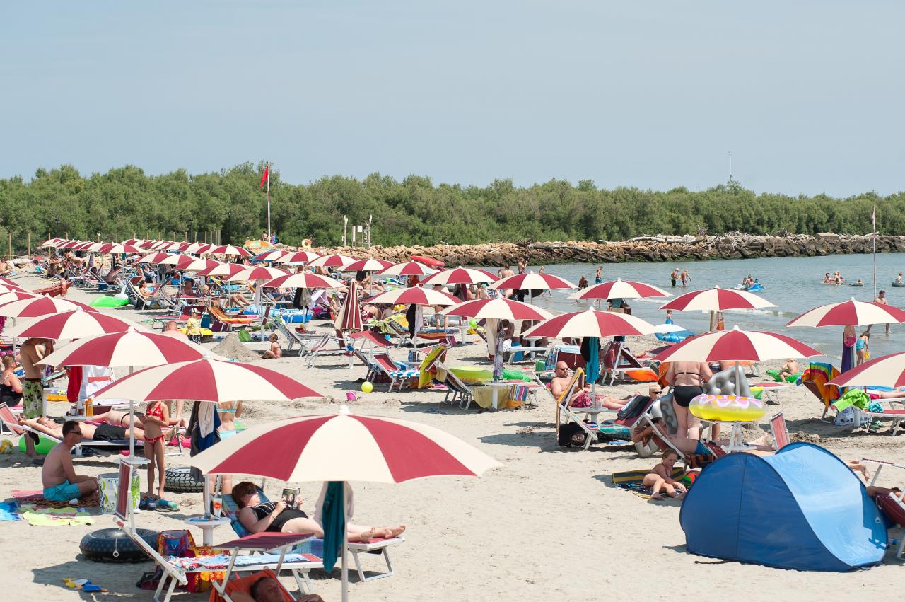 STRANDEndlose Strände zwischen Meer und Lagune. Die Ferienanlage verfügt über einen direkten Zugang zu zwei Stränden mit feinem, goldenem Sand: Der „Scanno Barricata", ein Strand von über 3000 Metern Länge, welchen Sie über eine malerische Brücke erreichen und der Privatstrand der Ferienanlage der „Scanno delle Conchiglie", circa 1000 Meter lang und mit direktem Zugang. Am Privatstrand gibt es Duschen und eine Bar, Sonnenliegen- und schirme können ausgeliehen werden. Ein Bademeister sorgt tagsüber für die Sicherheit der Gäste. Am Strand besteht ausserdem die Möglichkeit Tretboote und Kanus auszuleihen.