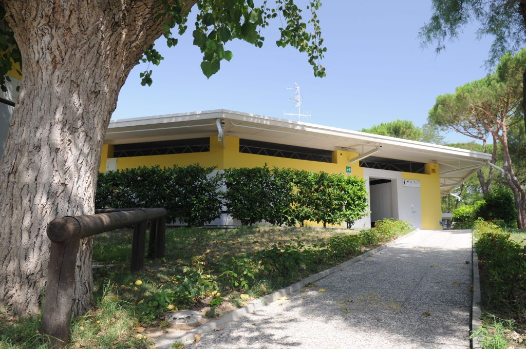 Die Unterkunft befindet sich im Feriendorf Adriano Family Camping Village. Das Feriendorf liegt zwischen den Ortschaften Punta Marina Terme und Lido Adriano, mitten im hundertjährigen Pinienwald von Ravenna. Zum Stadtzentrum von Ravenna (7km) mit seinen byzantinischen Schätzen, gibt es eine schnelle und häufige Busverbindung und einen gemütlichen Fahrradweg. Das Feriendorf ist knapp 250 Meter vom Strand entfernt und zweifelsohne der ideale Ort, um einen Urlaub zu verbringen, der von Meer, Kunst und Gesundheit charakterisiert sein wird! Die einzigartige und grosse Poolanlage ist das Aushängeschild des Feriendorfs. Es gibt dort Unterwassermassagen, Sprudelliegen, einen langsamen Strömungskanal, Nackenduschen, Wasserfontäne und einen grossen Kinderbereich mit Nilpferd-Rutsche, Mini-Regenwald und diversen Wasserspielen. Für die sportlichen Gäste gibt es im Feriendorf einen Bereich mit entsprechenden Anlagen zum Fussballspielen (kleines Feld), für Basketball, Beach Volley, Beach Tennis, Boccia und Bogenschiessen. Für die Liebhaber der Unterhaltung hingegen bietet das Animationsteam ein umfangreiches und spannendes Tages- und Abendprogramm. Für die kleinen Feriengäste steht ein Miniclub zur Verfügung. Zudem ist das Feriendorf nur 14 km von dem fantastischen Vergnügungs- und Wasserpark Mirabilandia/Mirabeach entfernt und auch die bekanntesten Kunststädte und grossartige Ausgrabungsstätten sind nur wenige Kilometer weit entfernt. So wird Ihr Urlaub schnell zu einem spannenden und unvergesslichen Naturerlebnis. Selbstverständlich sind auch Restaurant/Pizzeria, Bar, Lebensmittelgeschäft und Münzwaschautomaten im Feriendorf vorhanden.