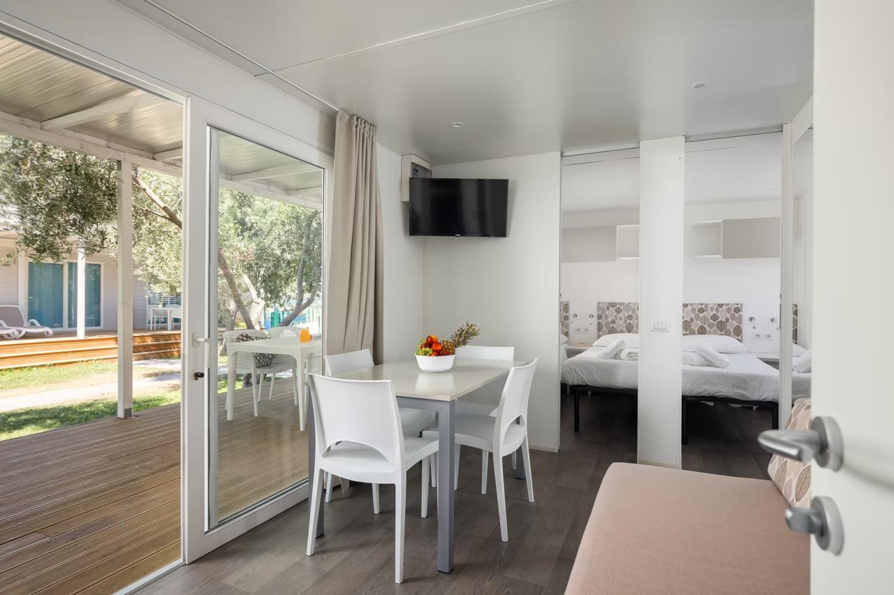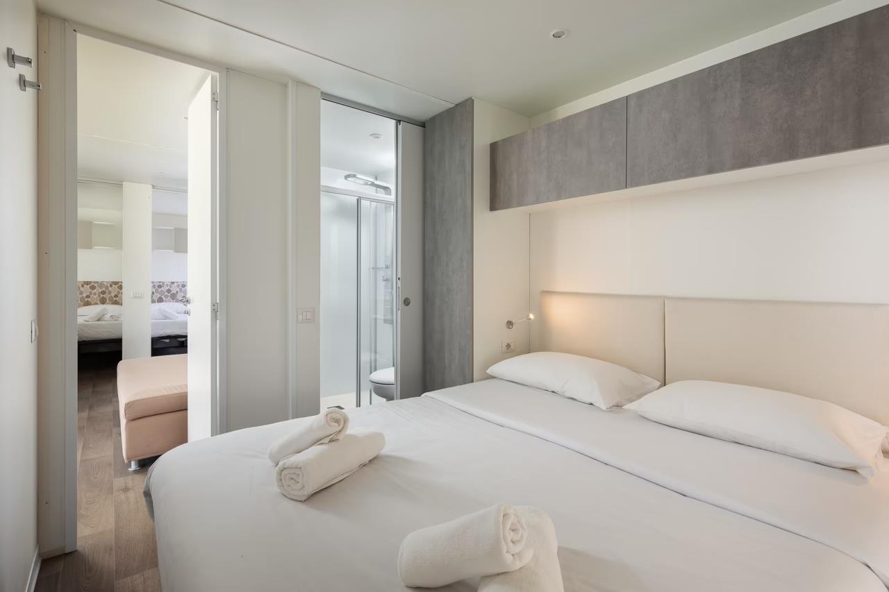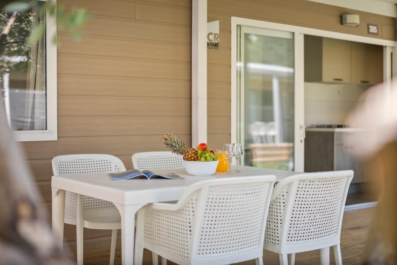 Die Unterkunft Premium bietet Platz für max. 6 Personen und besteht aus einem Elternschlafzimmer mit Doppelbett, sowie zwei weiteren Schlafzimmern mit jeweils 2 Einzelbetten. Im Wohnzimmer gibt es einen SAT-TV. Die gut eingerichtete Küche befindet sich im Wohnbereich und verfügt über Geschirr, Besteck und Pfannen, eine Filterkaffeemaschine, sowie Kühlschrank mit Eisfach. Die beiden Badezimmer verfügen je über eine Dusche, sowie Waschbecken und WC. Der gedeckte Sitzplatz, mit Tisch und Stühlen sowie zwei Liegen, lädt zum gemütlichen Entspannen ein. Fahrzeit ab ital. Grenze ca. 6.5h. Hinweis Wenn Sie mehr als eine Unterkunft benötigen, ist dies bei uns in der Regel möglich, da wir über mehrere Objekte des gleichen Haustyps verfügen.