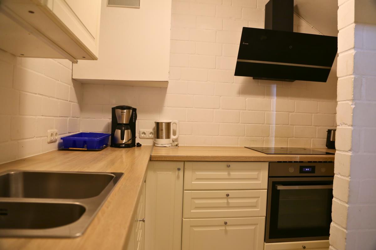 Voll ausgestattete Gemeinschaftsküche: Die großzügige Küche (ca. 18 m²) mit großem Esstisch lädt zum gemeinsamen Kochen und Essen ein. Ausgestattet mit Herd, Geschirrspüler und allem Nötigen – ideal für Selbstversorger.