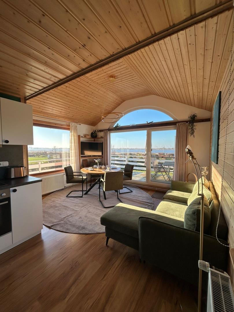 Herzlich willkommen in unserem kleinen roten Hoch-Haus an der Weser. Unser auf Stelzen gebauten Ferienhaus verfügt über ein Schlafzimmer mit Doppelbett (200 cm x 200cm) und großen Kleiderschrank. Ein kleiner separater Balkon um den Sonnenaufgang zu genießen gehört ebenfalls zum Schlafzimmer. Ein weiteres Schlafzimmer verfügt über ein Etagenbett (90 cm x 200 cm) Das Badezimmer mit Tageslicht verfügt über eine Dusche, Waschtisch, WC, eine Waschmaschine und einen Trockner. Die neue und moderne, offene Küche ist komplett ausgestattet inkl. Herd, Backofen, Kühlschrank mit Gefriermöglichkeit, Kaffeemaschine, Wasserkocher und Spülmaschine. Der angrenzende Wohn-Essbereich verfügt über einen Esstisch mit 4 Stühlen, einem Sofa, TV und tollem Ausblick auf die vorbeifahrenden Schiffe. Nutzen Sie bei schönem Wetter gerne den großzügigen Balkon inkl. windgeschützten Bereich. Der Balkon ist mit einer Sitzgruppe mit 4 Stühlen und Tisch, sowie Sonnenschirm ausgestattet. Der Hafen von Brake ist in Sichtweite, ebenso die Fähre Sandstedt. Die Weser fließt in knapp 50 Meter Entfernung. Die Bettwäsche und Handtücher kann pro Person dazu gebucht werden. Wir freuen uns auf Ihre Reservierung.
