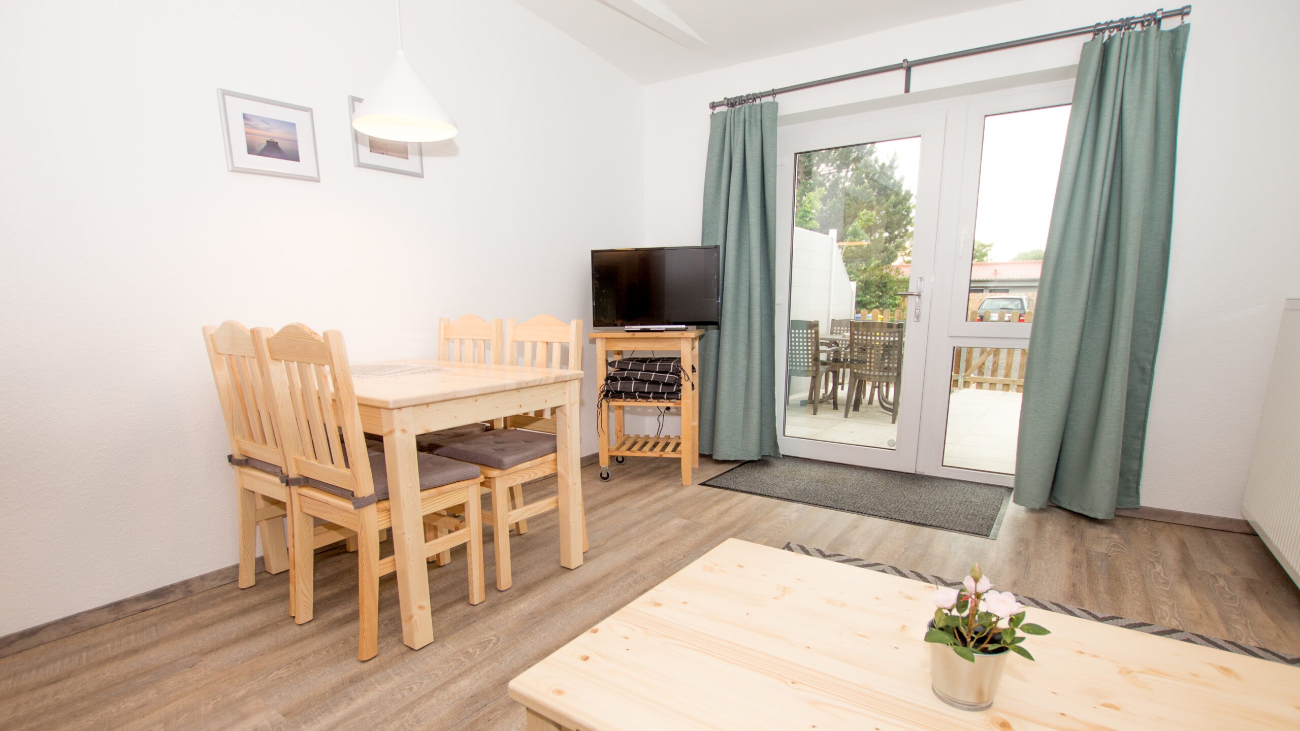 Das Reihenhaus im Landhausstil ist mit einem gemütlichen Wohnraum mit Fernseher, Sofa und einer gut eingerichteten Wohnküche mit Essecke ausgestattet. Ebenfalls verfügt es über ein Badezimmer mit Dusche/WC und allergikerfreundlichem Fußboden in allen Räumen. Die Schlafzimmer beherbergen bequeme Betten für geruhsame Nächte.  Ihnen steht außerdem eine schöne Terrasse für laue Sommerabende zur Verfügung.