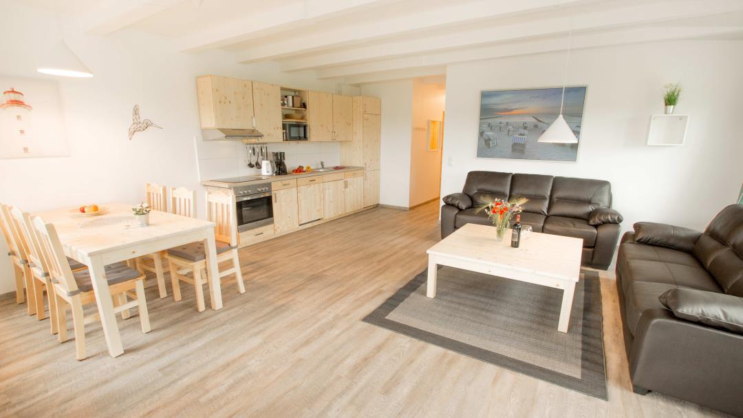 Das Reihenhaus im Landhausstil ist mit einem gemütlichen Wohnraum mit Fernseher, Sofa und einer gut eingerichteten Wohnküche mit Essecke ausgestattet. Ebenfalls verfügt es über zwei Badezimmer mit Dusche/WC und allergikerfreundlichem Fußboden in allen Räumen. Die Schlafzimmer beherbergen bequeme Betten für geruhsame Nächte.  Ihnen steht außerdem eine schöne Terrasse für laue Sommerabende zur Verfügung.