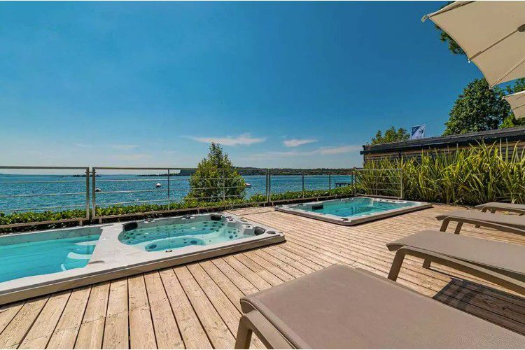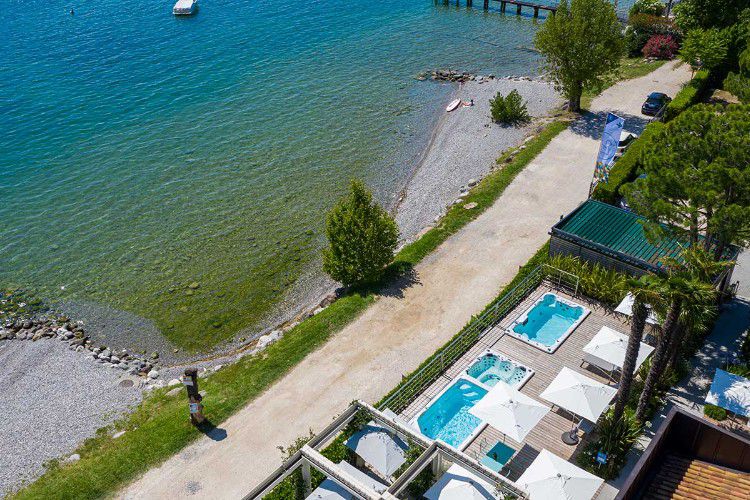 Direkt am Ufer des Gardasees in San Felice del Benaco, mit herrlichem Blick auf die Berge von Manerba und die Insel Garda gelegen, erwartet Sie diese wunderschöne, kleine Anlage mit allen Annehmlichkeiten, die Sie für einen gelungenen Urlaub benötigen. Ruhe, Natur und Unterhaltung werden hier in vollkommenem Gleichgewicht gehalten. Die Ferienanlage bietet Ihnen folgende Einrichtungen: stilvoll eingerichtete Unterkünfte umgeben von grüner Natur, eine moderne Sonnenterrasse mit Sonnenliegen- und Schirmen, sowie zwei Pools mit Massagedrüsen (garantiert von Ende Mai bis Ende September ungefähr) und direkten Blick auf den See, ein Beach Cafè und einen Fitnessbereich, ebenfalls mit direktem Seeblick. Für die kleinen Gäste gibt es einen kleinen Kinderspielbereich. Eine eigene App der Anlage ermöglicht Ihnen mit einem Klick einen Lieferservice für Restaurant, Pizzeria und Supermarkt. Der Gardasee eignet sich ausserdem hervorragend für zahlreiche Wassersportarten. Golfbegeisterte finden in der Umgebung tolle Golfplätze.
