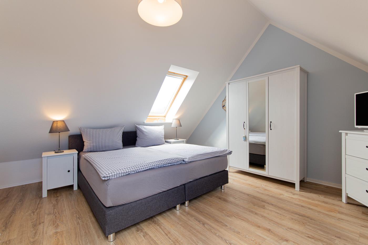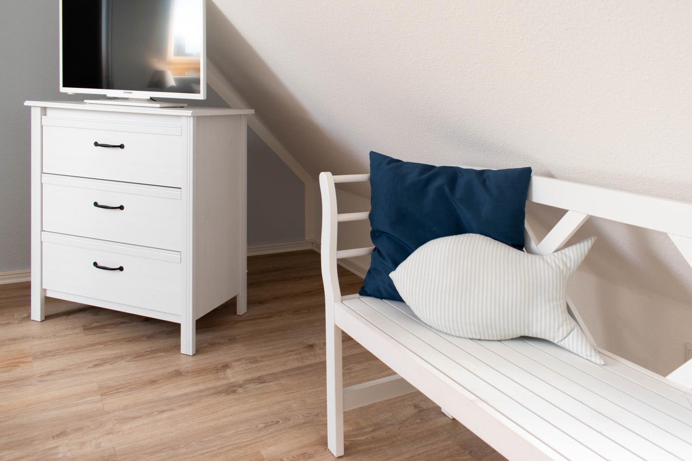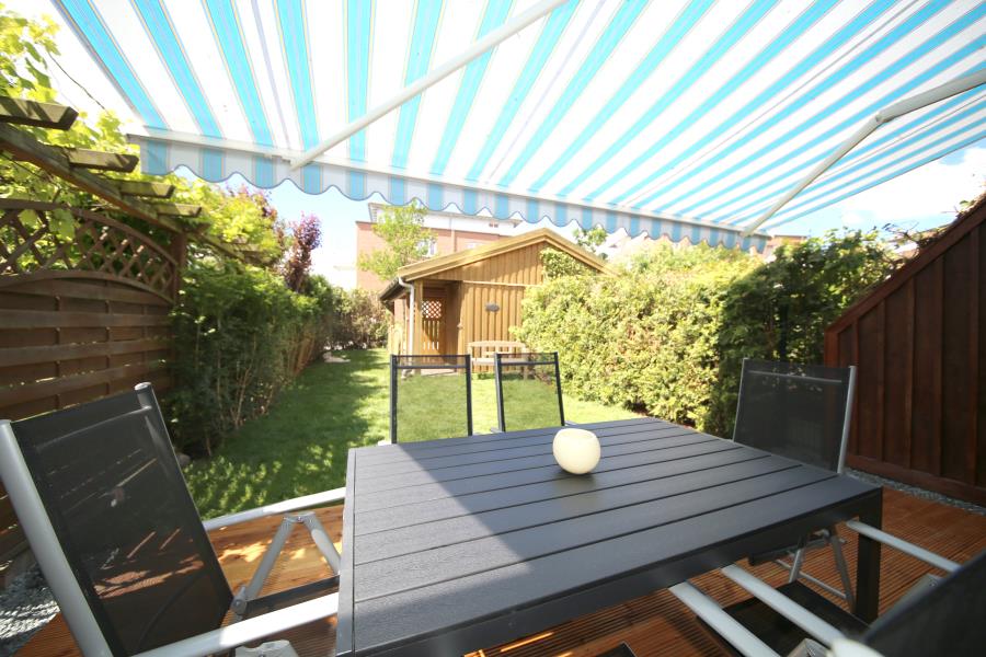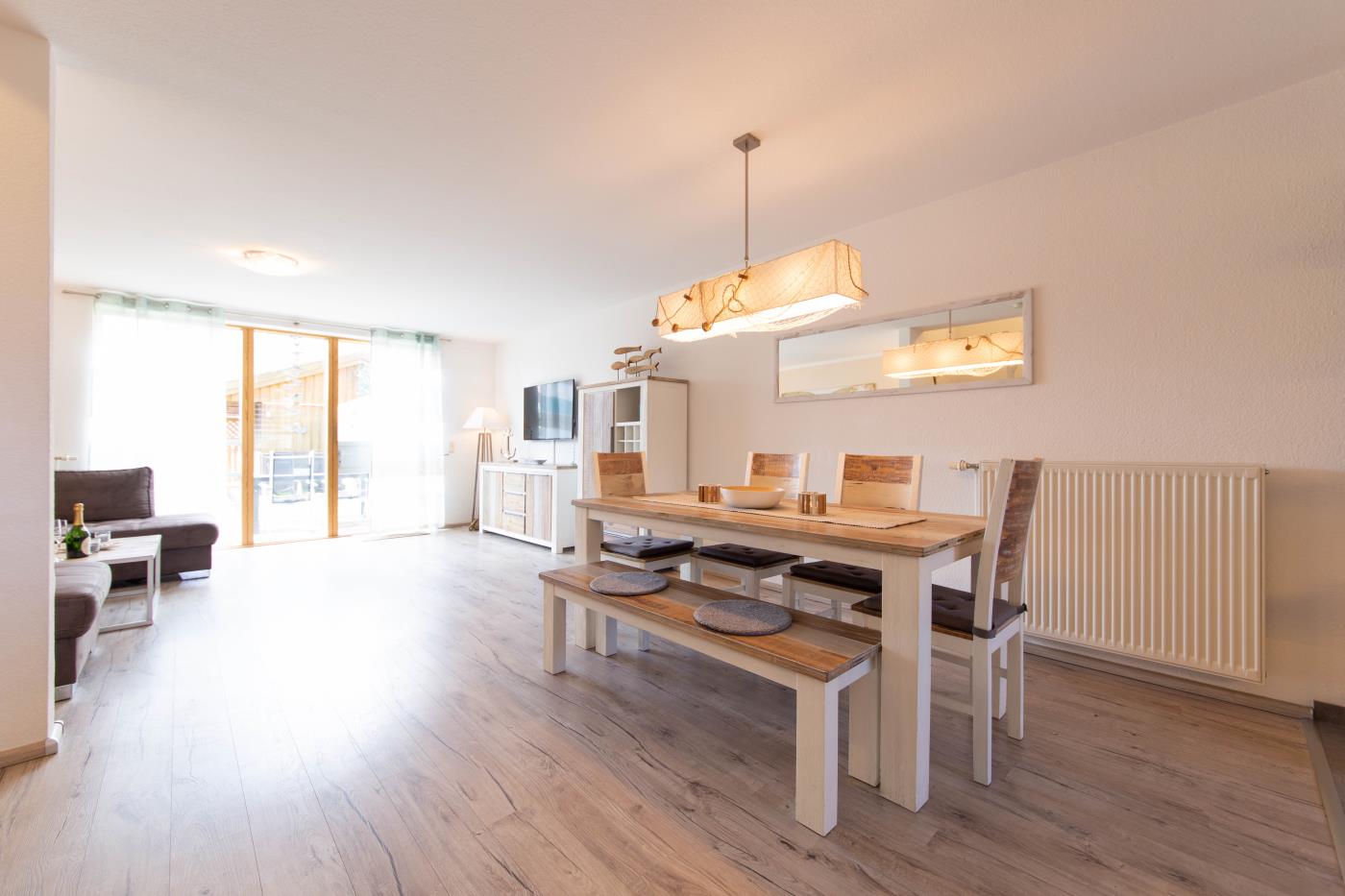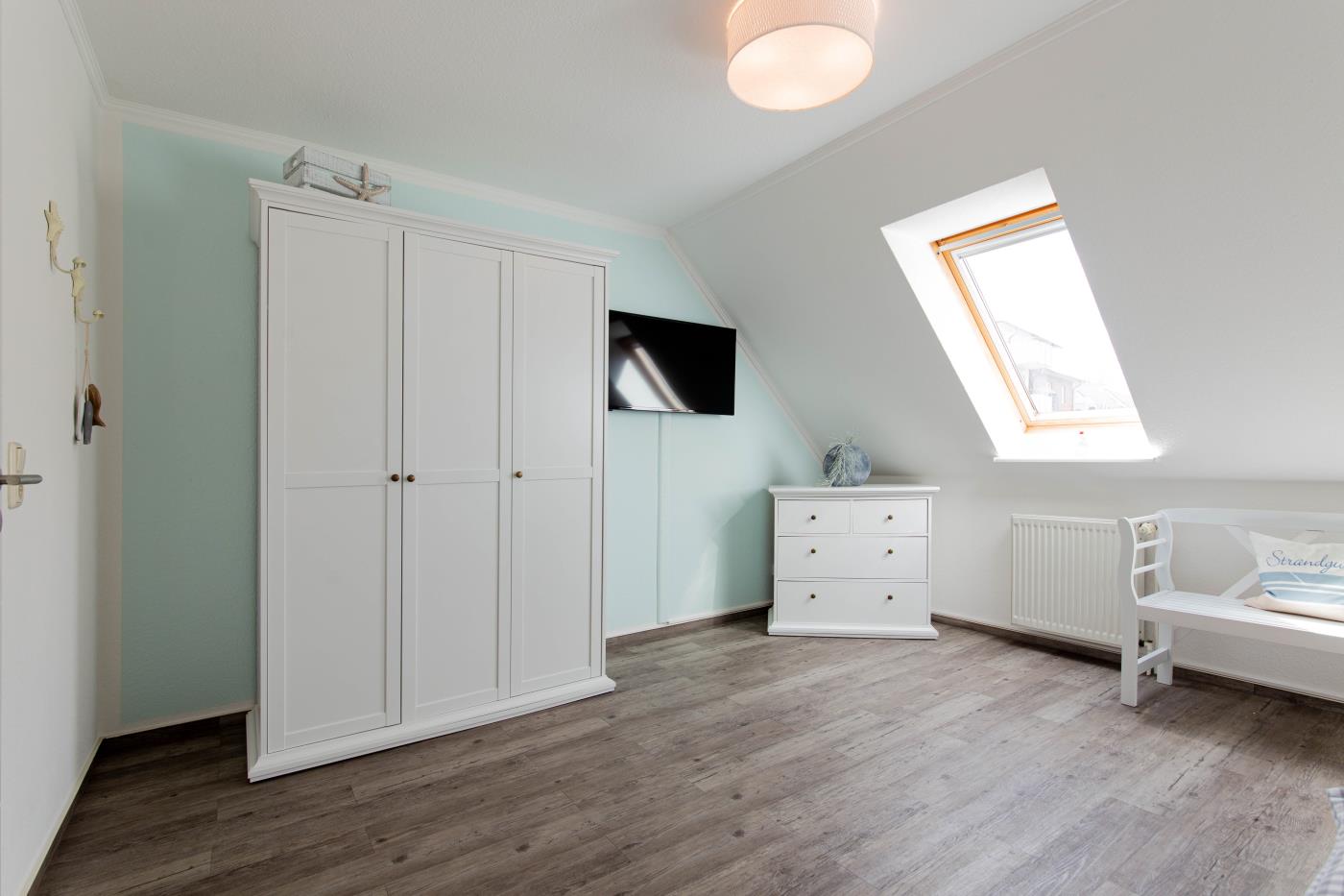 Das Ferienhaus bietet Ihnen auf viereinhalb Zimmern viel Raum zum Erholen. Im Erdgeschoss befindet sich das Wohnzimmer mit offener Küche. Von hier aus haben Sie Zugang auf die Holzterrasse. Auf der Terrasse befinden sich Sitzmöbel für sechs Personen. Schutz vor der Sonne bietet hier eine Markise. Durch eine Abtrennung zu den Nachbargrundstücken finden Sie auf der Terrasse Ihren eigenen privaten Rückzugsort vor. Der Gartenbereich ist komplett eingezäunt, so dass sich ihr Hund frei bewegen kann. Außerdem befindet sich ein Gäste-WC mit Dusche auf dieser Ebene. Im ersten Geschoss befinden sich zwei geräumige Schlafzimmer, beide mit Boxspringbetten (1,80m2,00m) ausgestattet. Ein weiteres Bad mit Badewanne und Dusche komplettiert das erste Geschoss. Weiter geht es in das zweite Geschoss. Hier befindet sich ein weiteres Schlafzimmer. Auch dieses ist mit einem gemütlichen Boxspringbett (1,80m2,00m) ausgestattet. In den Schlafzimmern befinden sich an allen Fenstern Verdunklungsrollos. Eine Waschmaschine steht Ihnen ebenfalls zur Verfügung.