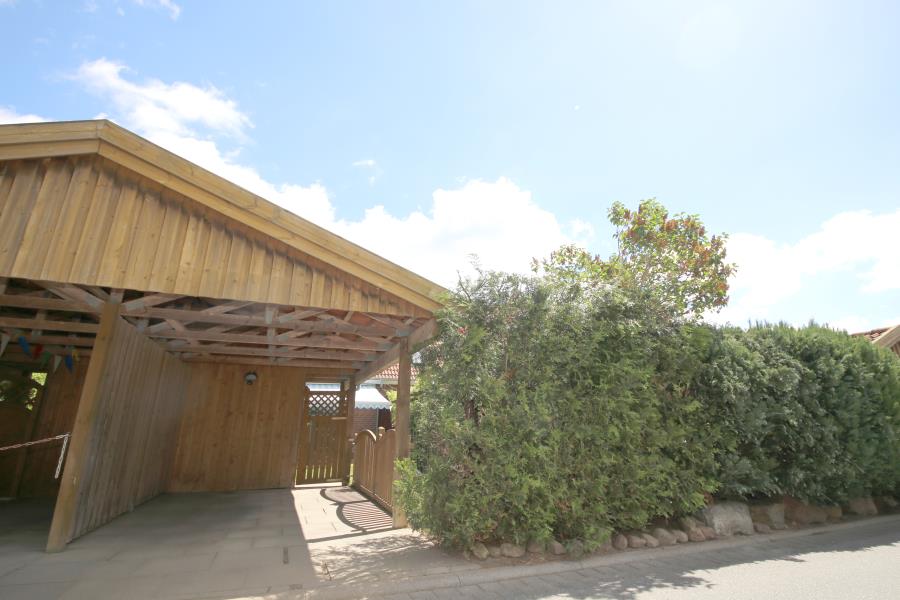 Ihr Auto können Sie sicher in dem Carportstellplatz (Höhe 1,95m) unterstellen. Der Zugang zum Haus ist über die Terrasse möglich. Außerdem befindet sich hier ein Nebenraum, wo Sie Ihre Fahrräder verwahren können.