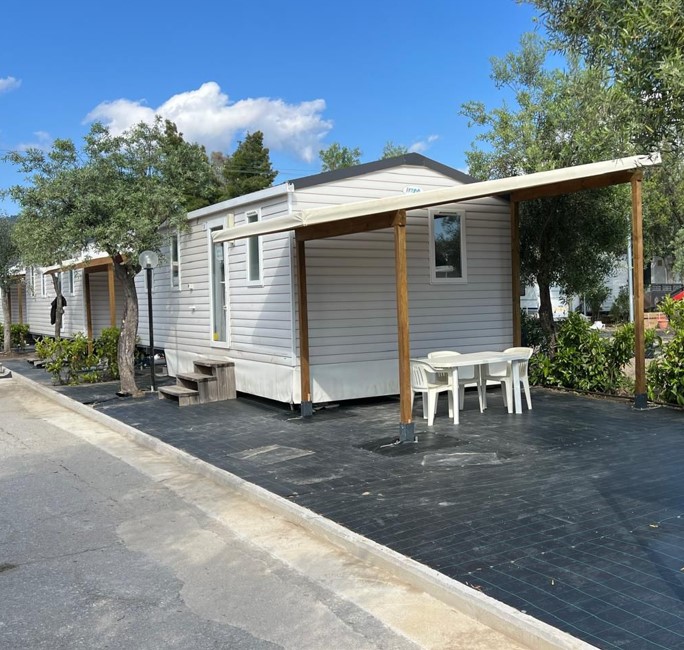 Das komfortable Mobilehome Happy Premium bietet Platz für max. 7 Personen. Die Unterkunft besteht aus insgesamt drei Schlafzimmern, eines mit Doppelbett und zwei Schlafzimmer mit jeweils zwei Einzelbetten. Die Sitzbank im Wohnbereich kann bei Bedarf in einen weiteren Schlafplatz umfunktioniert werden. Die Küchenzeile befindet sich ebenfalls im Wohnbereich und verfügt über einen 4-Flammen-Gasherd, Geschirr, Besteck, Töpfe, Mikrowelle, Kaffeemaschine und einen Kühlschrank mit kleinem Gefrierfach. Das Badezimmer ist mit einem WC, einer Dusche und einem Waschbecken ausgestattet (in einigen Mobilehomes befindet sich das WC in einem separaten Raum). Moskitonetze sind in den Wohn- und Schlafbereichen vorhanden. Die hölzerne Pergola im Aussenbereichist mit Tisch und Stühlen ausgestattet. Bitte beachten Sie, dass nur Familien (Eltern mit ihren eigenen Kindern) zugelassen sind, andere Verwandte jedoch nicht. Hinweis: Wenn Sie mehr als eine Unterkunft benötigen, ist dies bei uns in der Regel möglich, da wir über mehrere Objekte des gleichen Haustyps verfügen.
