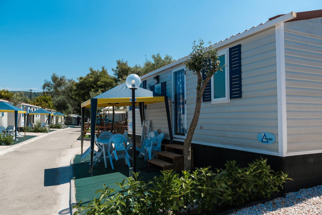 Das Mobilehome Happy Easy bietet Platz für max. 6 Personen (davon mind. 1 Kind unter 12 Jahren). Die Unterkunft besteht aus einem Schlafzimmer mit Doppelbett und einem Schlafzimmer mit zwei Einzelbetten und einem Hochbett für ein Kind unter 12 Jahren. Die Sitzbank im Wohnbereich kann bei Bedarf in einen weiteren Schlafplatz umfunktioniert werden. Die Küchenzeile befindet sich ebenfalls im Wohnbereich und verfügt über einen 4-Flammen-Gasherd, Geschirr, Besteck, Töpfen und einen Kühlschrank mit kleinem Gefrierfach. Das Badezimmer ist mit einem WC, einer Dusche und einem Waschbecken ausgestattet. Der halbüberdachte Aussenbereich ist mit Tisch und Stühlen, sowie zwei Liegen oder Liegestühlen ausgestattet. Bitte beachten Sie, dass nur Familien (Eltern mit ihren eigenen Kindern) zugelassen sind, andere Verwandte jedoch nicht. Hinweis: Wenn Sie mehr als eine Unterkunft benötigen, ist dies bei uns in der Regel möglich, da wir über mehrere Objekte des gleichen Haustyps verfügen.
