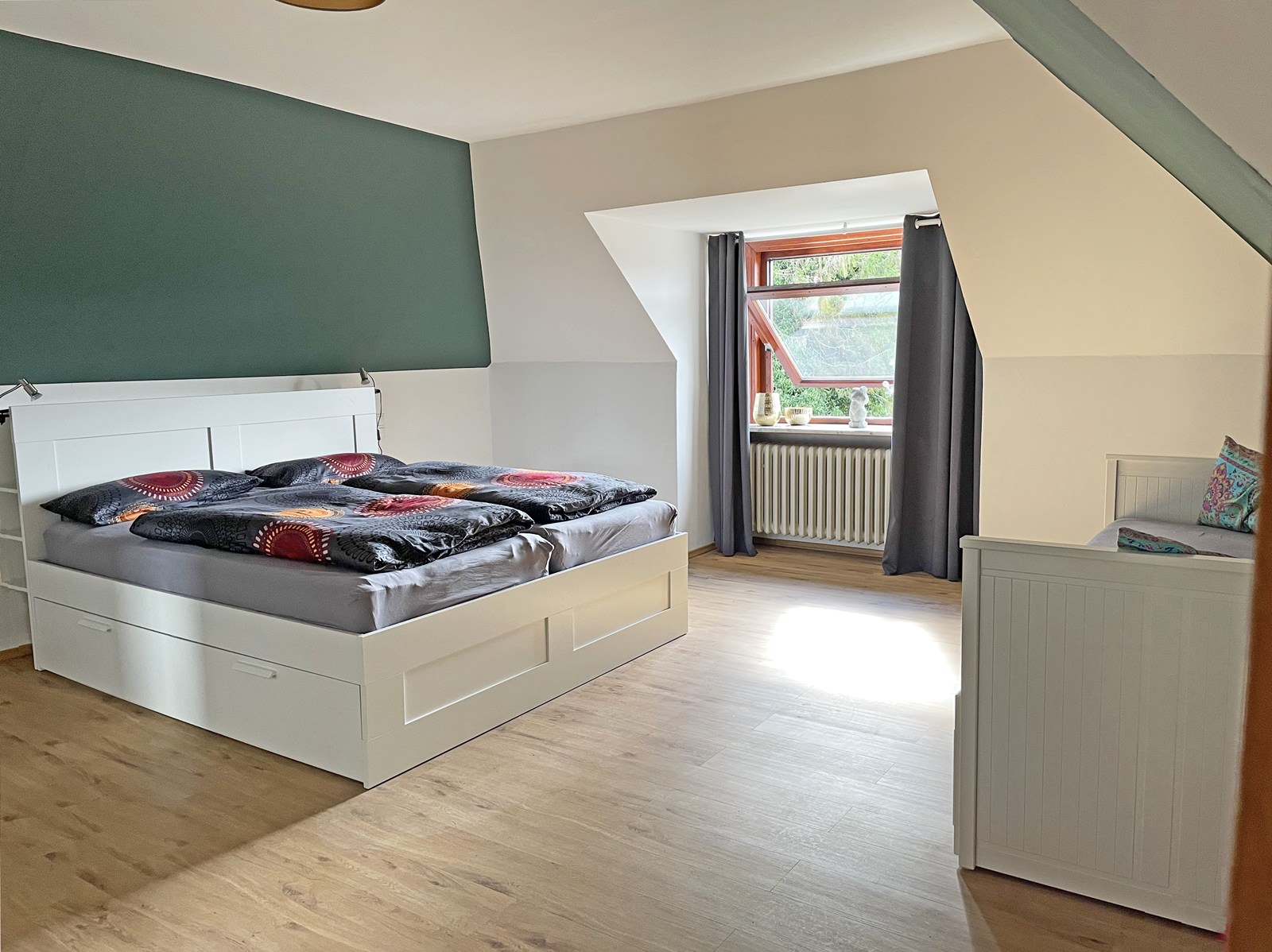 Vor dem Haus befinden sich zwei PKW-Stellplätze, einer direkt vor dem Haus am Schuppen, ein zweiter befindet sich nur ein paar Meter vom Haus entfernt. Wenn Sie die Region mit Ihren eigenen Fahrrädern erkunden möchten, können Sie diese im abschließbaren Schuppen sicher verwahren. Zur zusätzlichen Ausstattung gehört auch ein Baby-Reisebett und Hochstuhl, welches auf Anfrage gern kostenfrei bereitgestellt werden kann.
