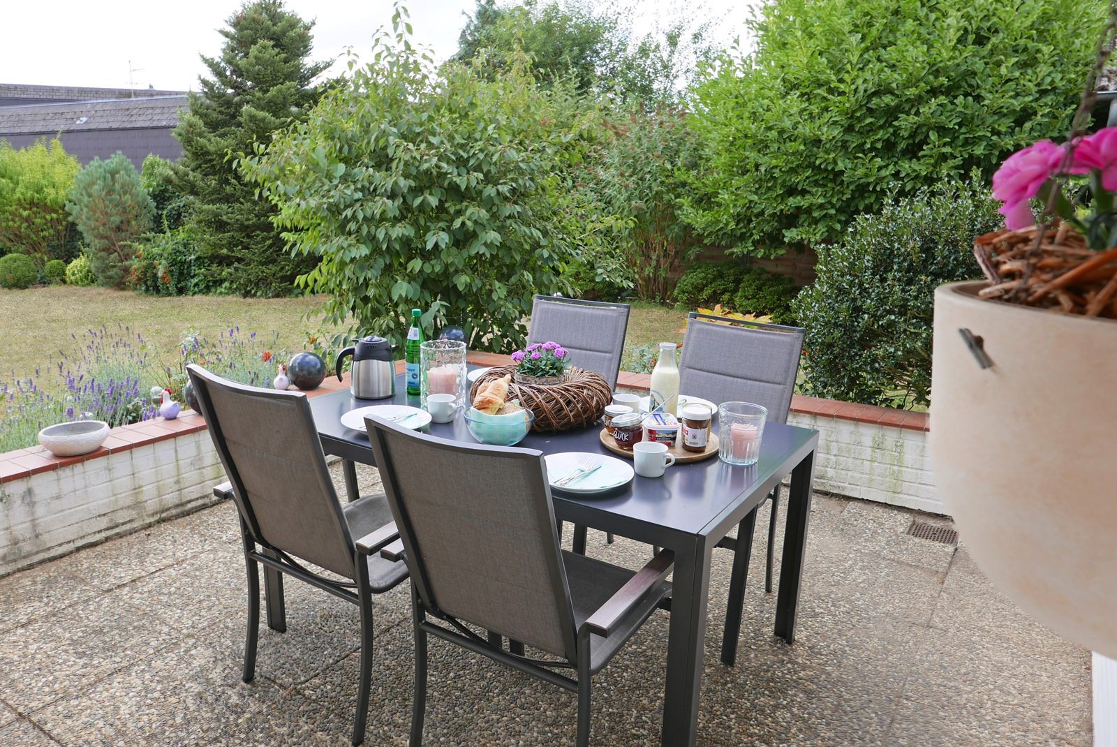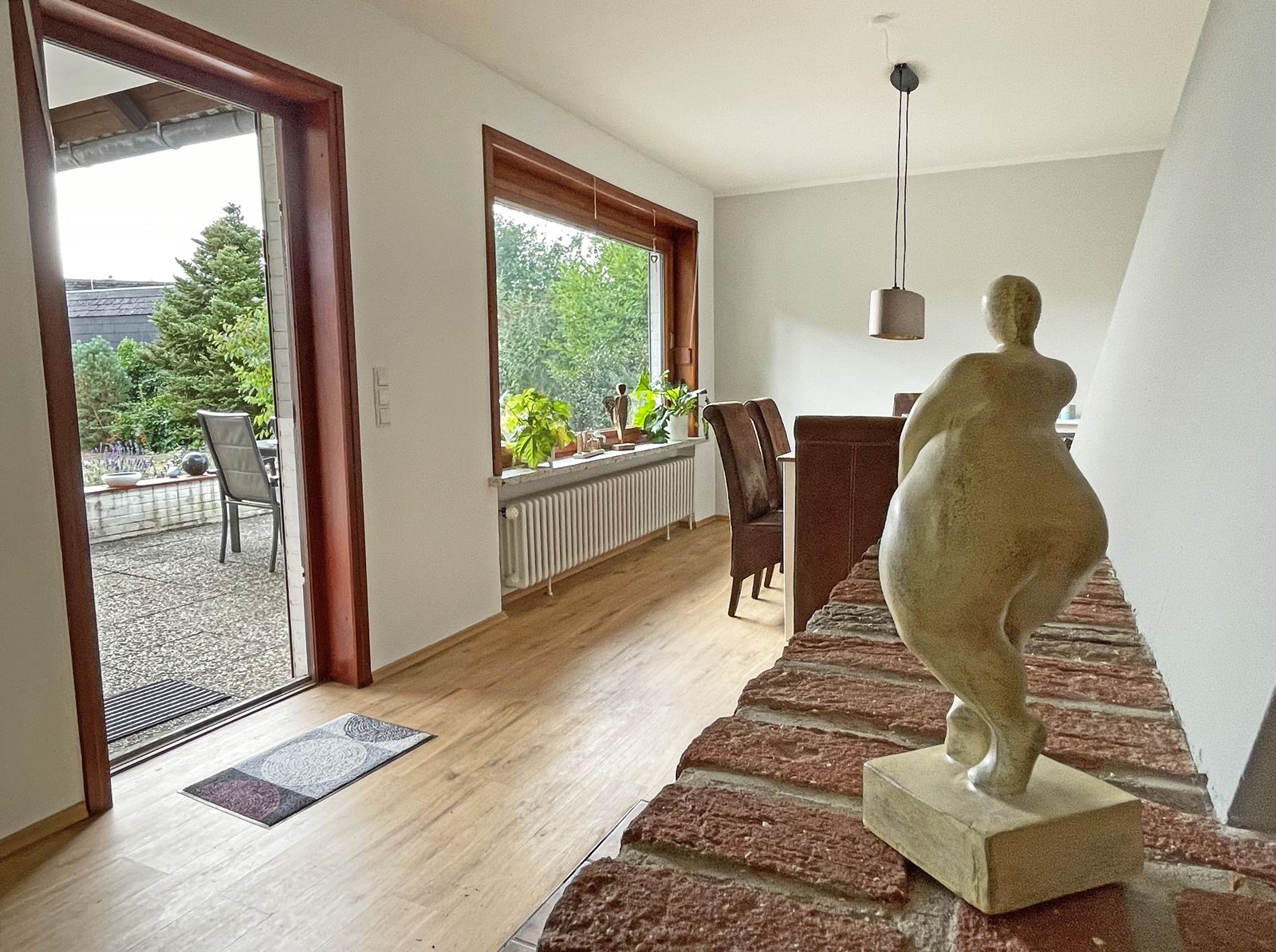Nach einem ereignisreichen Tag in der vielfältigen Angelner Region bietet der Außenbereich tolle Möglichkeiten zum Entspannen: Auf der 25m² großen Terrasse mit Markise können Sie den Abend bei einem leckeren Barbeque mit dem Holzkohlegrill ausklingen lassen... lassen Sie einfach mal wieder die Seele baumeln! Der große, gepflegte Garten ist außerdem komplett eingezäunt, sodass auch Ihr Vierbeiner sich pudelwohl fühlen wird. Über die Terrasse gelangen Sie direkt in den offenen Wohn- und Essbereich, der durch die großen Fensterfronten mit viel Helligkeit versorgt wird und Ihnen einen tollen Blick in den grünen Garten beschert. Der Terrassen- und Gartenbereich ist abgetrennt von den Fest-Mietern im UG.