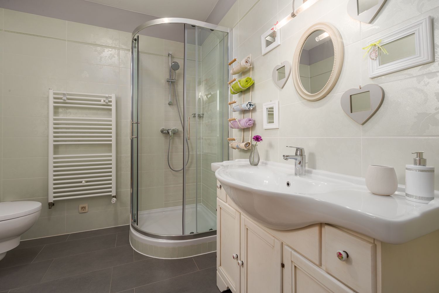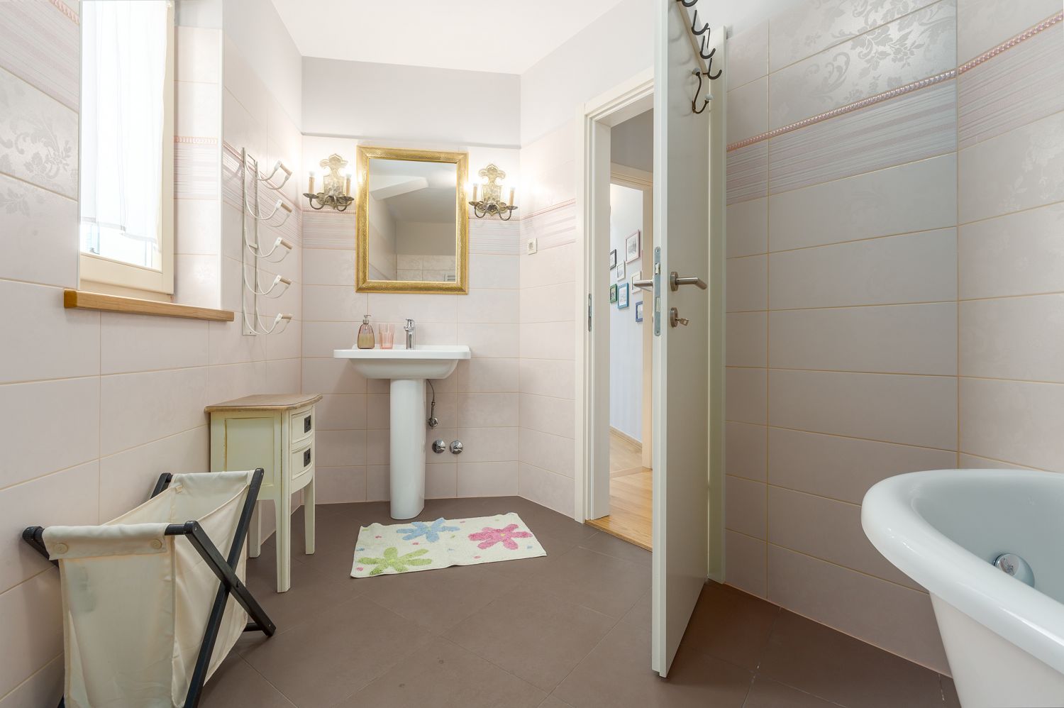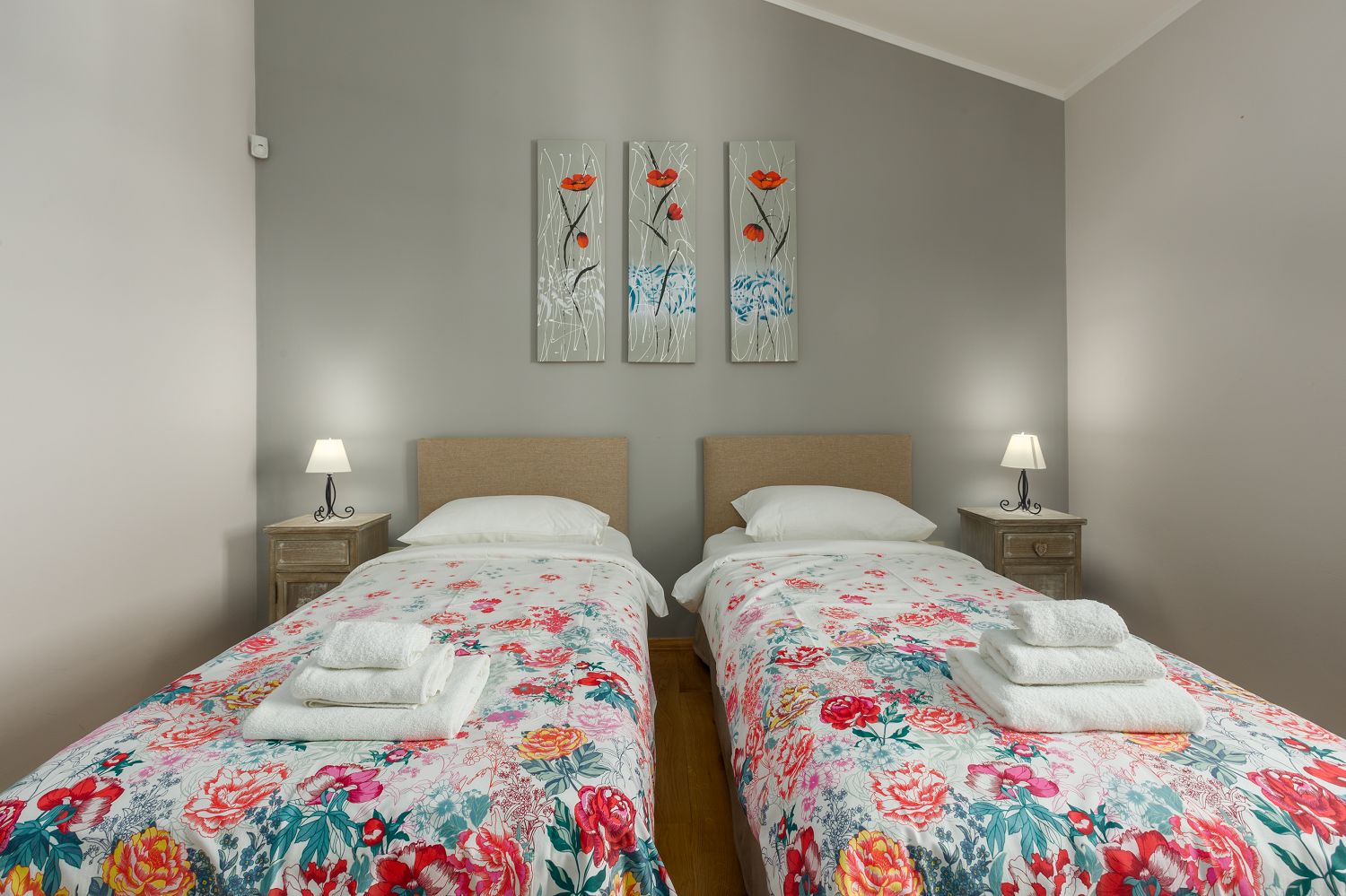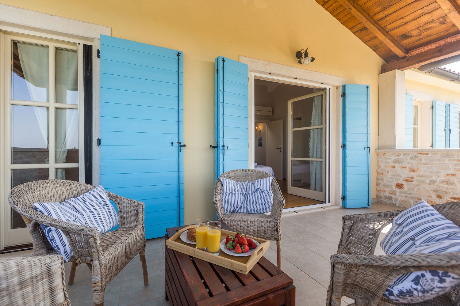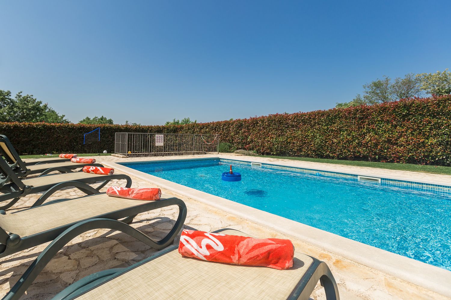 Diese Villa liegt im Dorf Heraki im grünen Binnenland Istriens, ca. 15 km von Porec und den Stränden entfernt. Das nächste Restaurant und Lebensmittelgeschäft befindet sich im 2 km entfernten Ort Sveti Lovrec. Auf dem 1500 m² großen Grundstück mit gepflegtem Rasen befinden sich mehrere aromatische Mittelmeerpflanzen wie Lavendel oder Rosmarin. In den wärmeren Jahreszeiten blühen hier zahlreiche Blumen. Den Gästen der Villa stehen ein privater, 66 m² großer Pool, vier Parkplätze, ein Poolhaus mit Sommerküche, Dusche/WC, Grillkamin, Sonnenliegen und ein Tisch mit Stühlen zur Verfügung. Die im Jahr 2014 erbaute Villa bietet ihren Gästen dank der hochwertigen Ausstattung einen bemerkenswerten Komfort. Auf Anfrage kann der Pool beheizt werden, sodass auch in den nicht zu heißen Monaten vor oder nach der Saison ein erfrischendes Bad möglich ist. Das komplett umzäunte Grundstück bietet viel Platz für Ihre vierbeinigen Freunde. Die Villa mit einer Fläche von 260 m² + Poolhaus kann bis zu 9 Personen beherbergen und eignet sich ideal für Familien oder Gruppen von Freunden. Im Erdgeschoss gibt es ein geräumiges, klimatisiertes Wohnzimmer mit Sitzecke, Kamin und Esstisch mit Ausgang zur überdachten Terrasse, eine separate, voll ausgestattete Küche, ein Schlafzimmer mit Doppelbett, Dusche/WC und ein separates WC. Auf der Etage befinden sich drei weitere Schlafzimmer mit eigenen Badezimmern, ein Kinderzimmer sowie ein Balkon mit Privatsphäre und traumhaftem Ausblick.