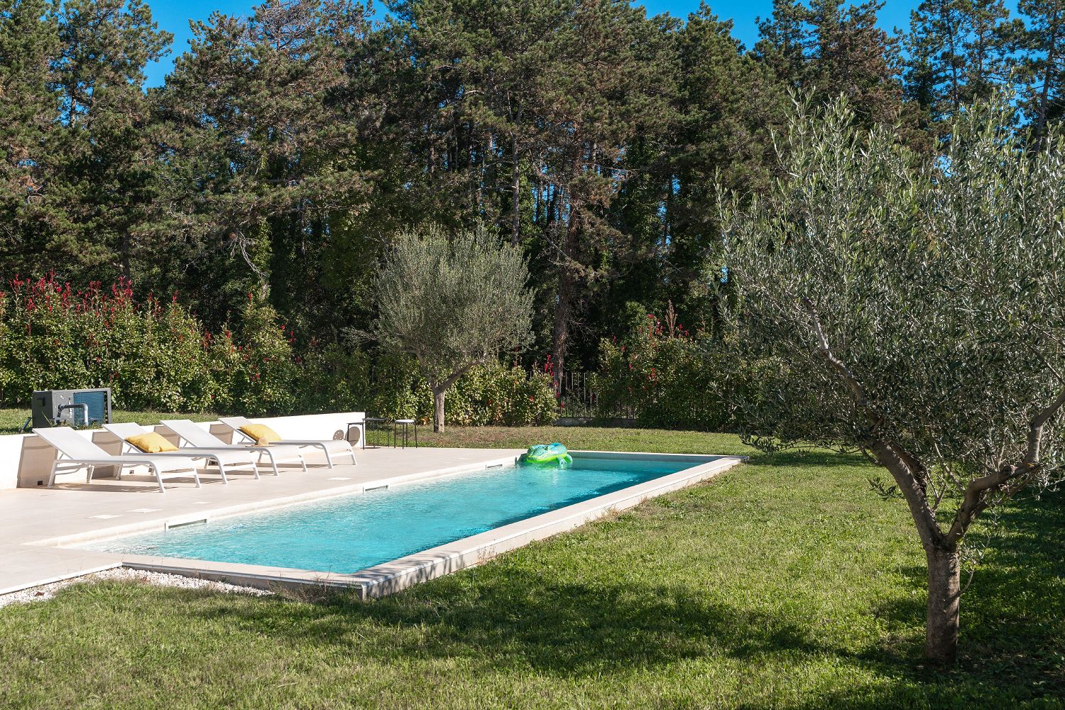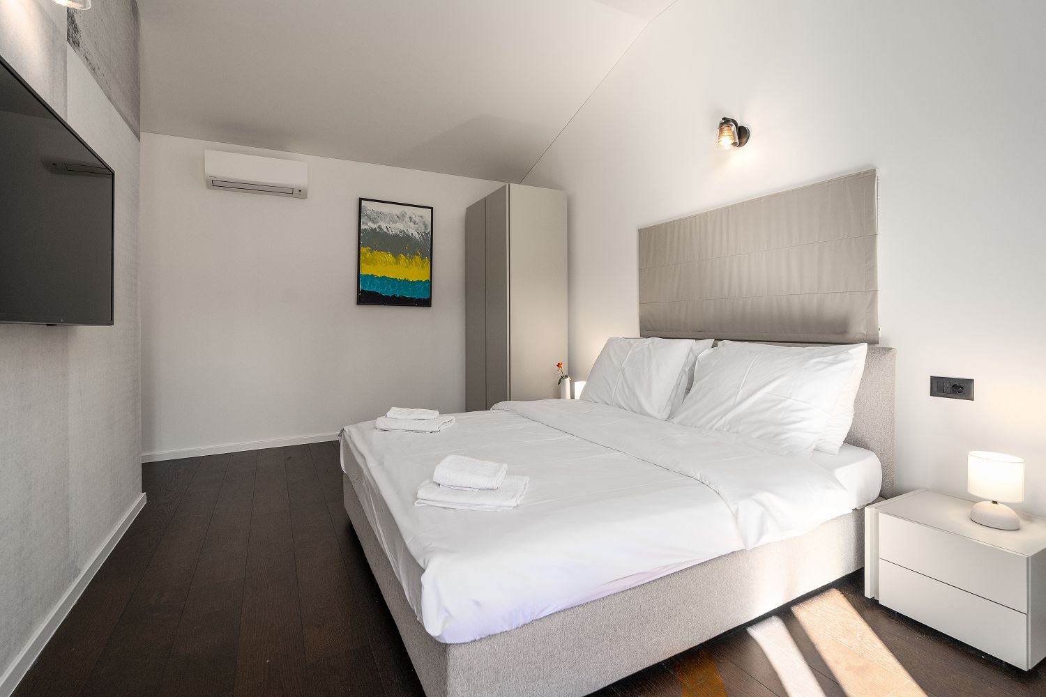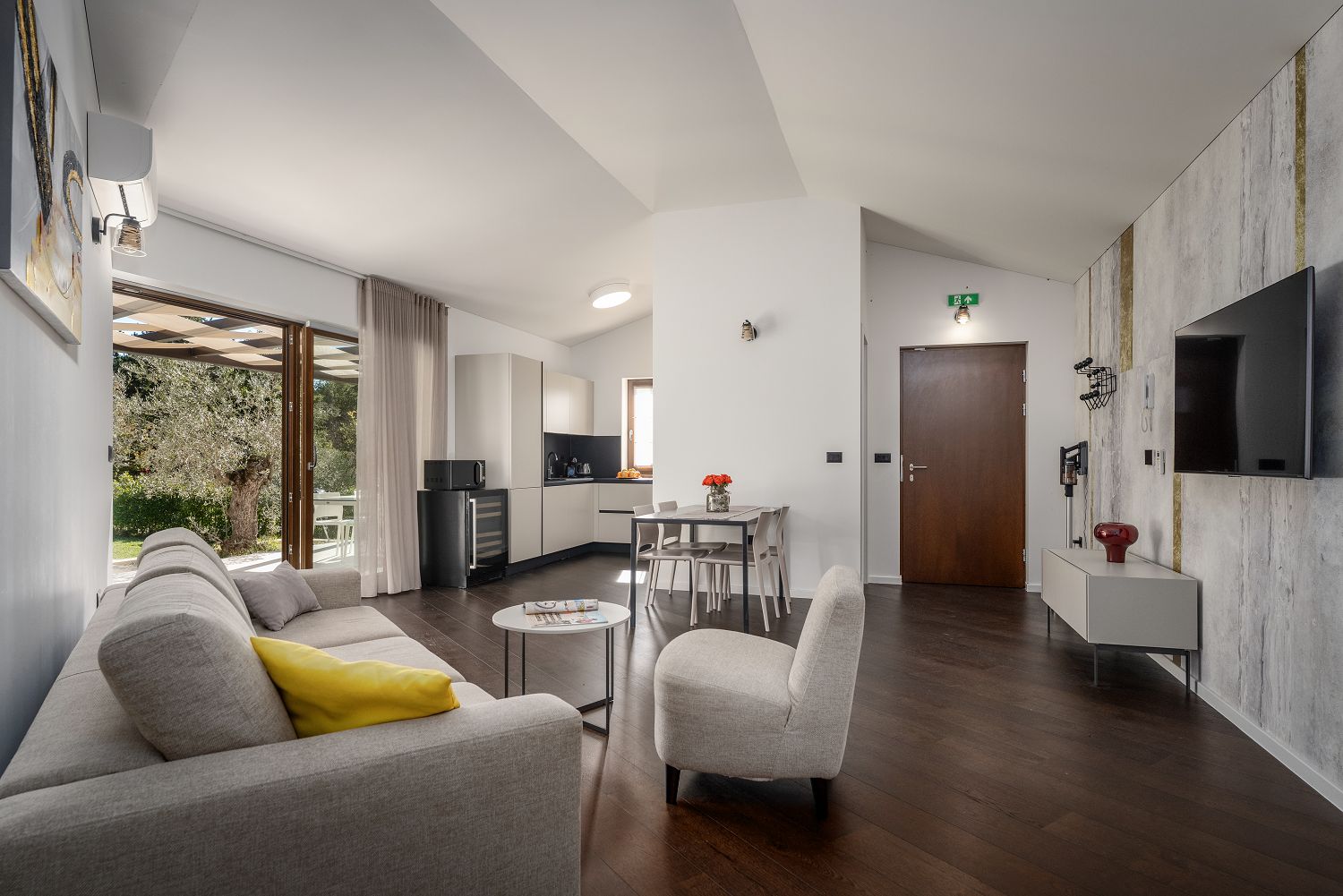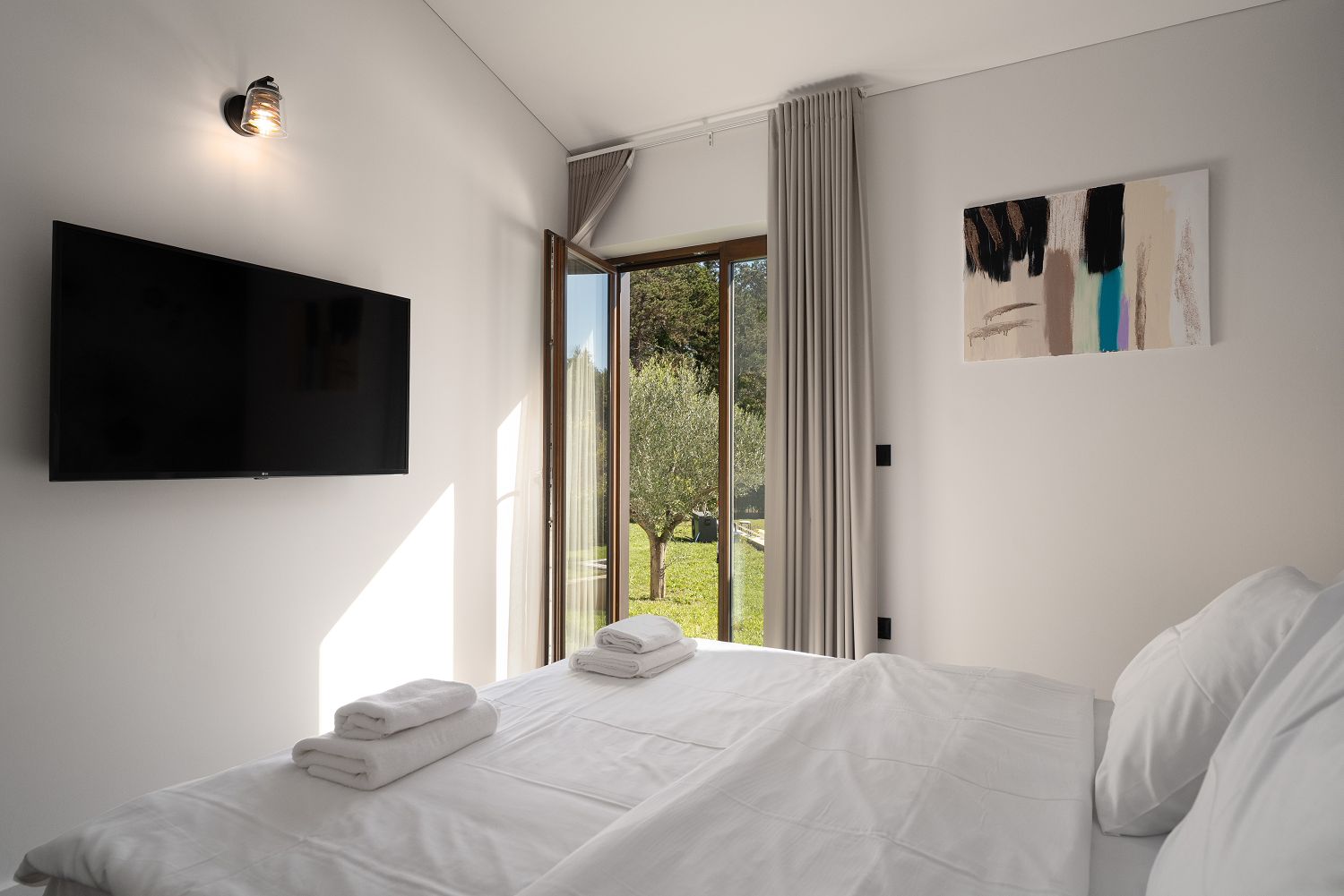 Die Villa liegt im Dorf Majkusi im grünen Landesinneren Istriens, ca. 17 km von Porec und den Stränden entfernt. Das nächste Restaurant und Geschäft befindet sich im 5 km entfernten Baderna. In der Nähe gibt es zahlreiche Sehenswürdigkeiten in Porec, Novigrad, Motovun und Pazin. Das Haus liegt am Waldrand auf einem 784 m² großen, eingezäunten Grundstück und bietet den Gästen folgende Außenausstattung: einen 40 m² großen Pool, Liegestühle, einen gepflegten Rasen, eine überdachte Terrasse am Pool mit Grill sowie zwei Parkplätze. Auf Anfrage kann der Pool beheizt werden, sodass auch in den nicht zu heißen Monaten vor oder nach der Saison ein erfrischendes Bad möglich ist. Die Villa für vier Personen ist ein modernes, neu erbautes Ferienhaus mit einer Wohnfläche von 110 m², die sich alle im Erdgeschoss befinden. Diese wunderschöne Villa verbindet eine rustikale Steinfassade mit einem modernen Interieur in neutralen Farben und mit stilvollen Details. Sie verfügt über ein geräumiges Wohnzimmer mit Zugang zum Außenbereich, einen Esstisch und eine voll ausgestattete Küche, die sich alle in einem Raum befinden, zwei Schlafzimmer, jeweils mit Bad und Ausgang zum Pool, sowie ein separates WC. Das gesamte Haus ist klimatisiert und verfügt über ein starkes Starlink-WLAN. Wenn Sie einen besonderen Urlaub verbringen möchten, an den Sie sich gerne erinnern werden, ist diese Villa die richtige Wahl für Sie. Jugendgruppen sind nicht gestattet.