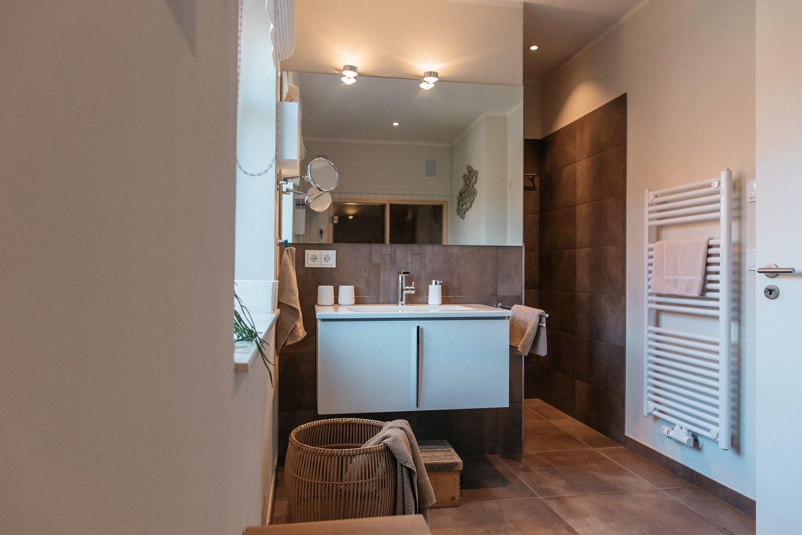 Eine tolle Ferienunterkunft mit großzügigen Räumen und umfangreicher Ausstattung. Besonders schön fanden wir das Badezimmer.