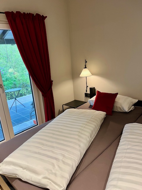 Das freistehende Haus "Villa Collina" liegt ca. 250 Meter von der Liegewiese entfernt, wie der Name verrät auf dem "Hügel". Es gibt einen großen eigenen Garten mit Seezugang, 2 Terrassen, davon eine überdacht. Eine offene Küche mit Wohnzimmer und Essbereich, 2 separate Schlafzimmer, mit Doppelbett und einmal 2 Einzelbetten, sowie ein kleines Duschbad. E-Ladestation ist vorhanden (inkl.), ebenso eine Spül- & Waschmaschine. Genießen Sie ihre Zeit in der "Villa Collina"!