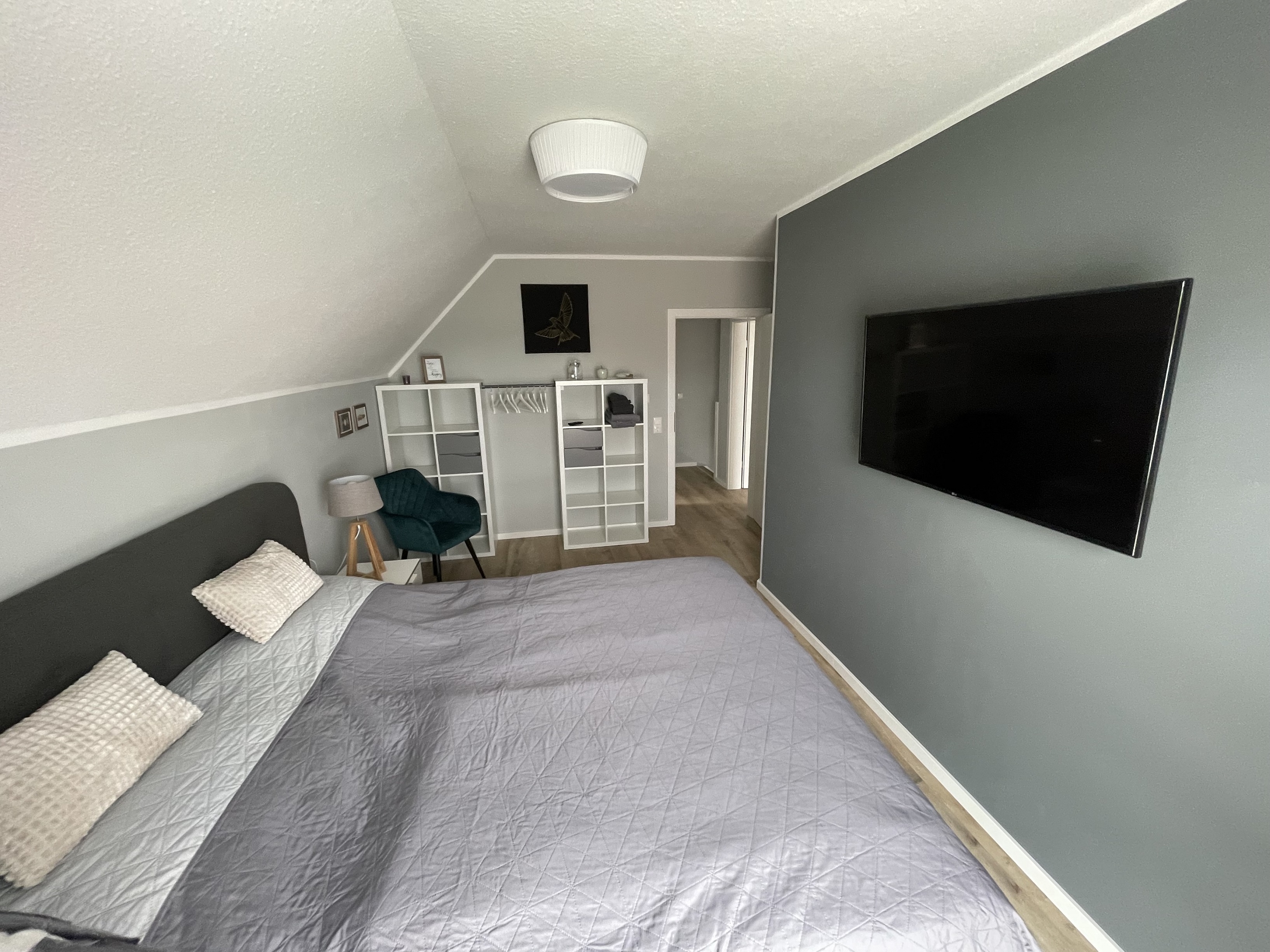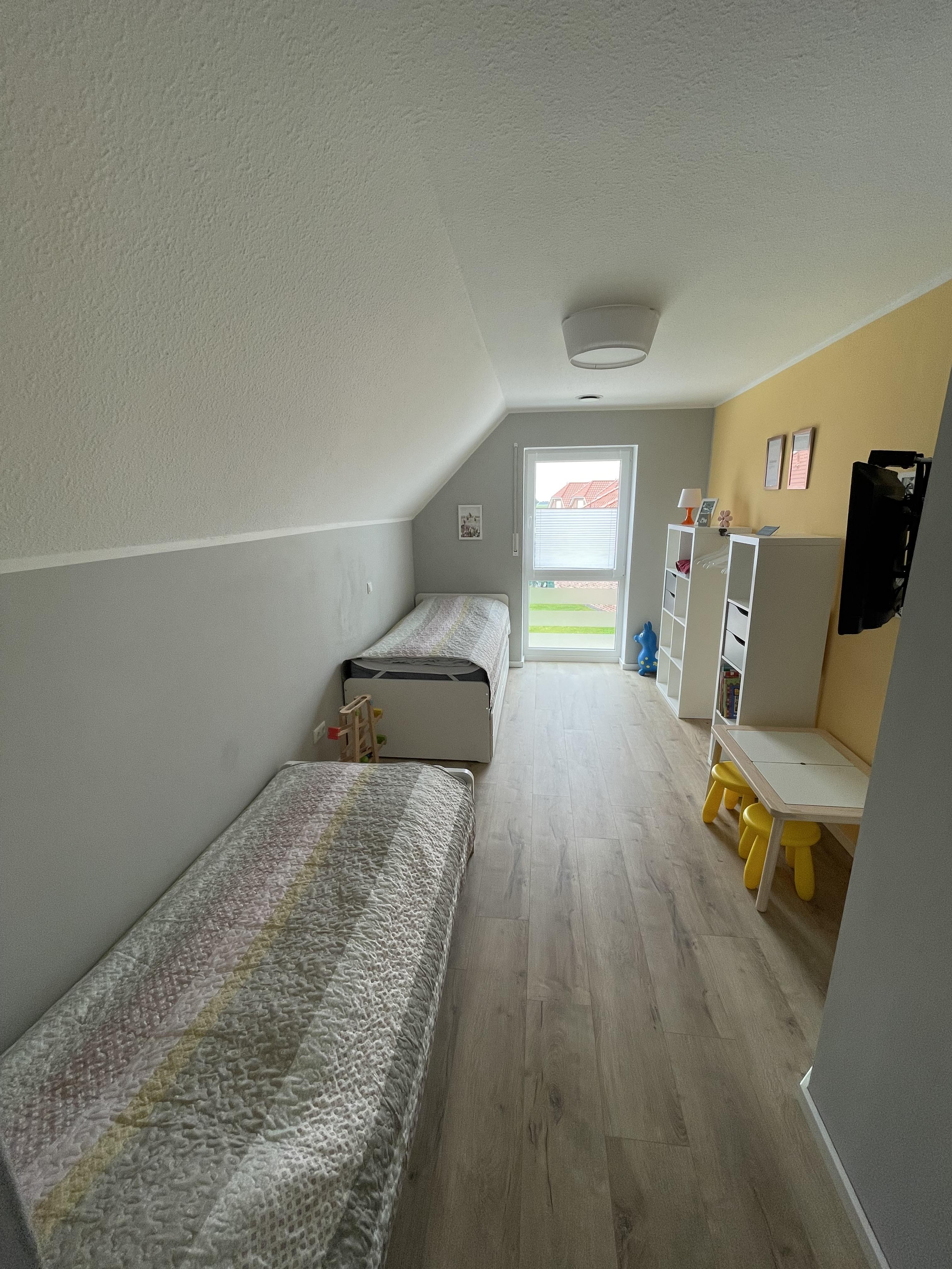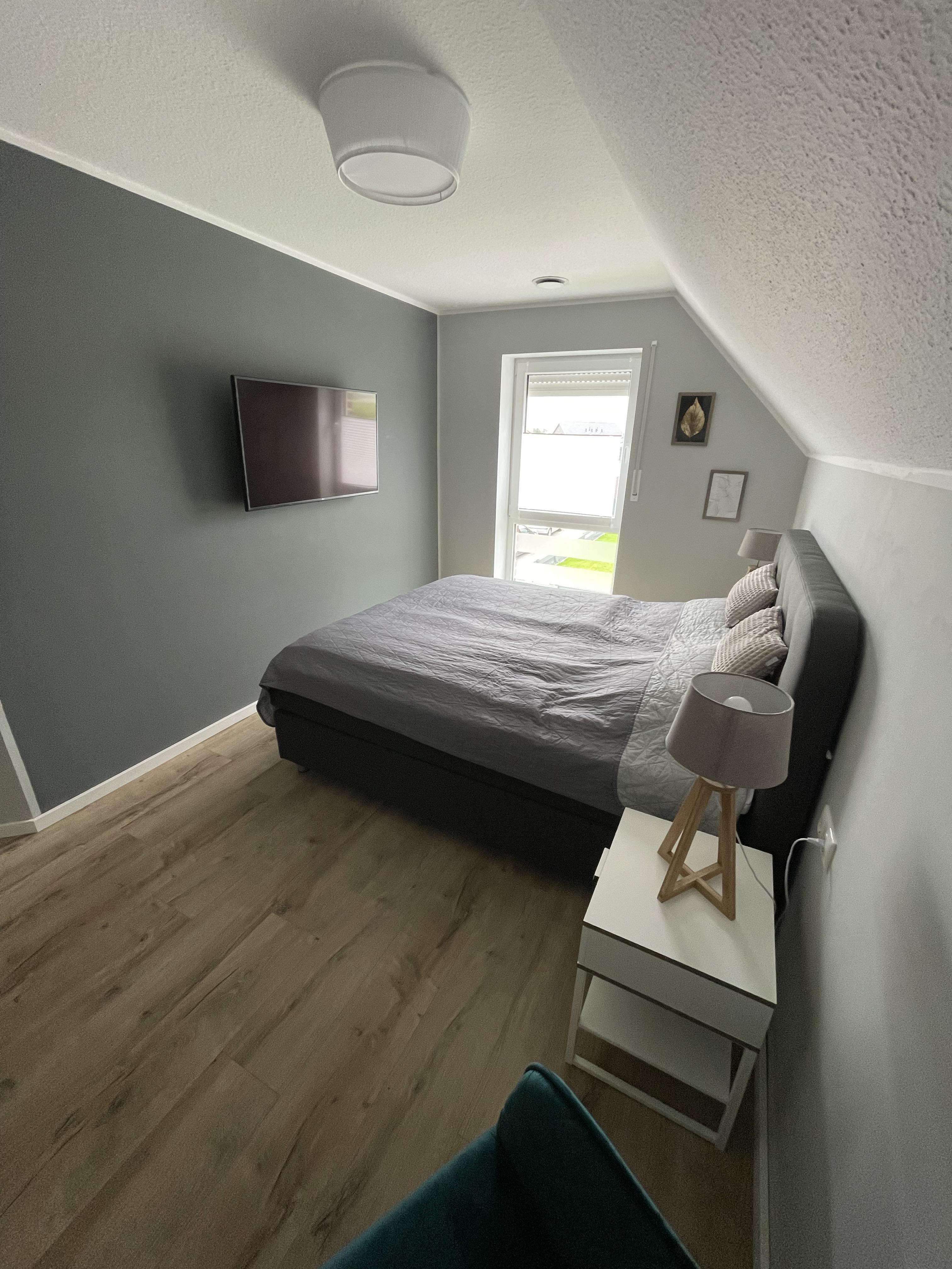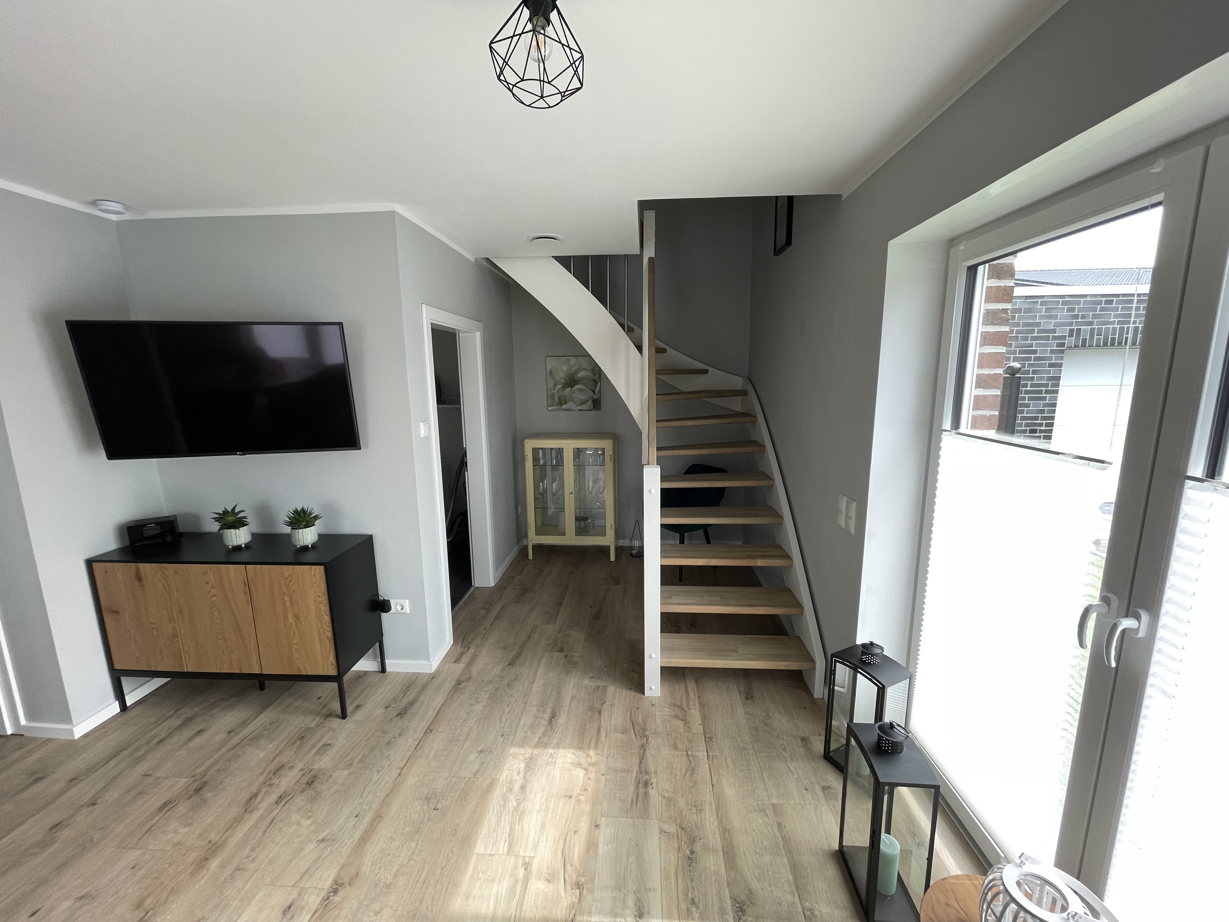 Im Erdgeschoss betreten Sie das Haus über einen kleinen Flur und gelangen direkt in den offen gestalteten Wohn- und Essbereich. Ebenfalls auf dieser Etage befinden sich ein Gäste-WC sowie ein praktischer Hauswirtschaftsraum (HWR). Das Obergeschoss bietet zwei gemütliche Schlafzimmer, beide mit Smart-TV ausgestattet, sowie ein modernes Badezimmer mit Dusche. Im gesamten Haus sorgt eine Fußbodenheizung für wohlige Wärme, während eine automatische Lüftungsanlage für ein angenehmes Raumklima sorgt. Ein Glasfaseranschluss garantiert zudem schnelles Internet – ideal auch für Homeoffice oder Streaming. Im Außenbereich erwartet Sie eine möblierte Terrasse mit Sonnenschirm, auf der Sie den Tag entspannt ausklingen lassen können. Ein Gerätehaus bietet sicheren Platz für Ihre Fahrräder oder Sportausrüstung.