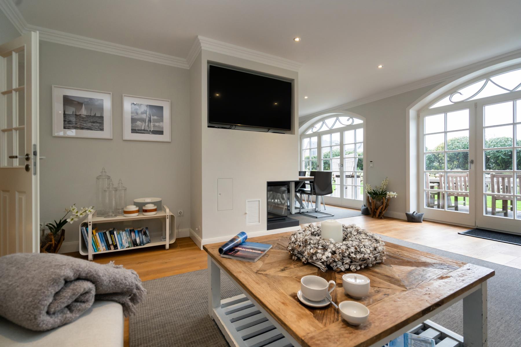 Die Villa Hengist ist Luxus pur - ein Traum unter Reet, der Sie mit seinem Mix aus klassischen Holzeinbauten, ausgesuchten Möbeln, modernem Raumkonzept und edlen Stoffen ganz bestimmt begeistern wird! Die große Terrasse in Südwestausrichtung, der wunderschön angelegte 500m² Garten eingefasst von Rhododendren und Hortensien, an einem langen Friesenwall runden das Urlaubsgefühl ab.