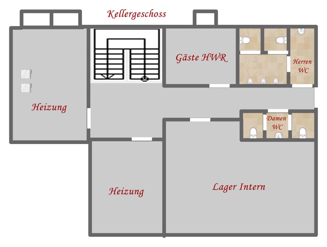 Das Badezimmer zu Zimmer 1-4 ist behindertenfreundlich ausgestattet. Es gibt ein unterfahrbares Waschbecken und einen Haltegriff an der Toilette.