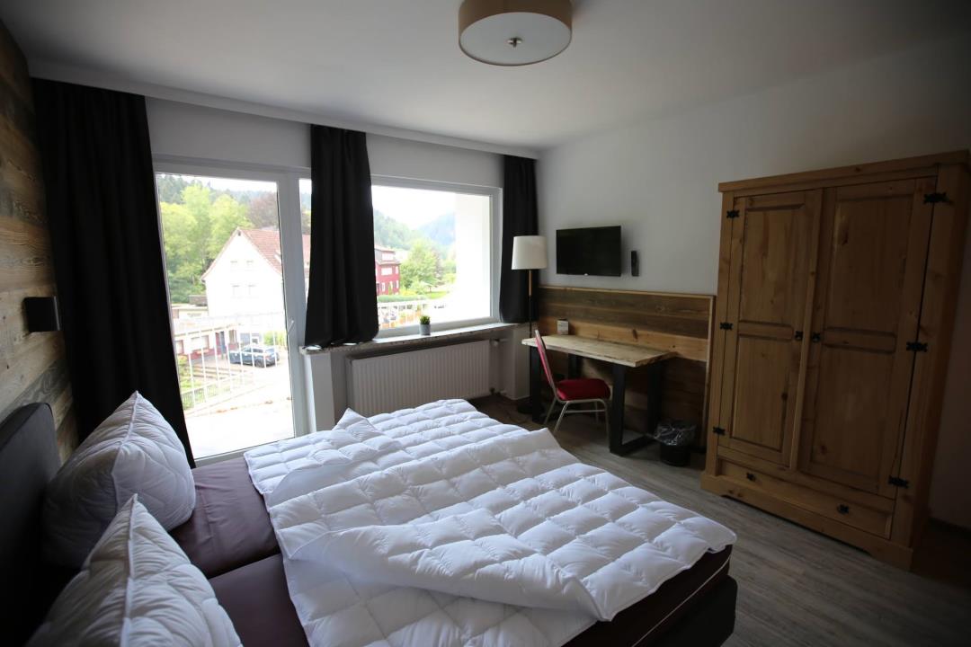Alle Möbel und Einrichtungen in den Schlafzimmern sind komplett ausgetauscht, in komfortable Hotelbetten und geräumige Kleiderschränke. Sowie Nachtschränken und einem kleinen Schreibtisch in den größeren Räumen. Alle Zimmer haben TV.